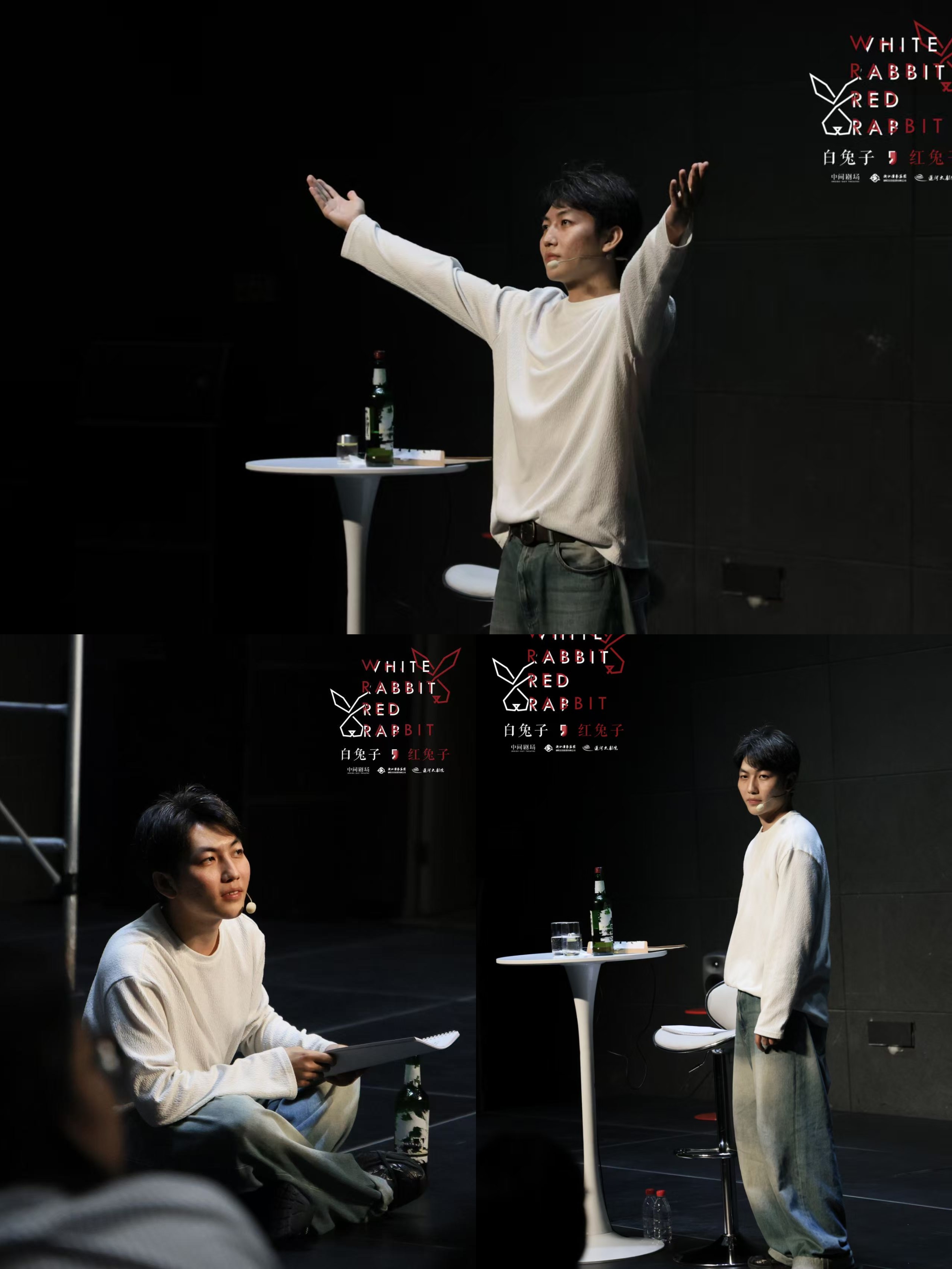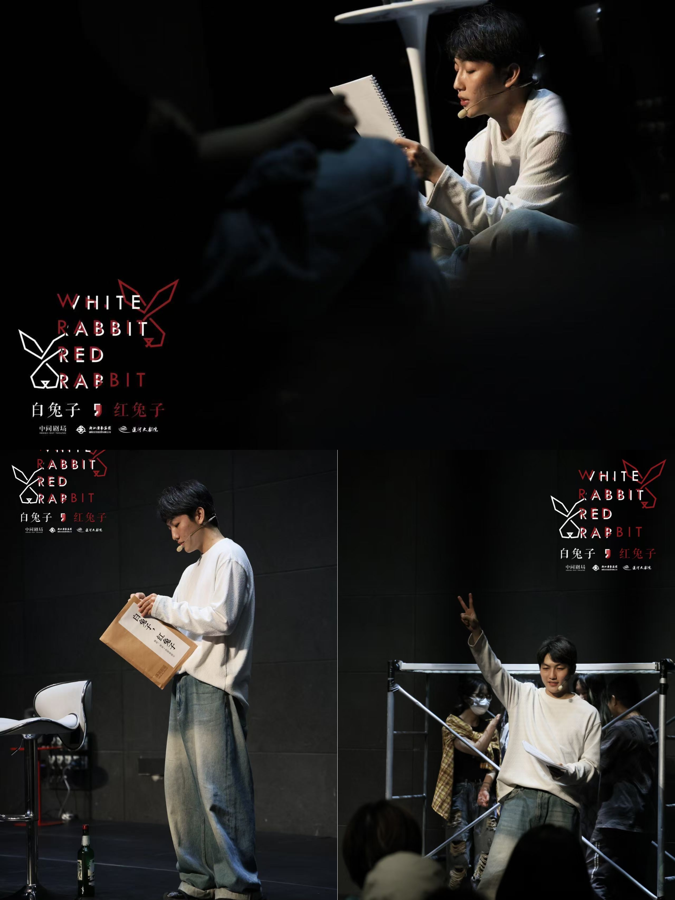 终于明白南星的实验戏剧《红兔子白兔子》,为何能长演不衰了! 剧作者通过小心的文字游戏,预判演出的流程,也在隐喻中逐步试探人性,品尝创作的自由,表达对人生的态度。 而演员选择在远程的窥视和操纵下,基于过往的认知和舞台,基于自己的理解,带来不同态度和形式的处理。什么是可以被允许的,什么是必须被干涉的,什么是值得被鼓励的,并不重要。 观众秉持不同个性,触发不同心绪的讨论,助力它脱离剧本,成为现实生活的一面镜子。一刷好奇剧本的隐喻,N刷为不同演员的表达。 周六,舞者马晓龙选择了按照剧本去完成阐述,略显轻快的表达,更像是合力完成南星的游戏。他输出的观点,或者说分享的口号,更像是人生态度的演绎。 周日,舞者张振国则接住了这个实验,他不愿进入剧作者的圈套,试图争取演出的主导权。足够细腻的他,预见了被作者捉弄,却不缺勇气和个性。 既然是一期一会,一生一次的冒险,不妨好玩一点,温暖一点,深刻一点,又有什么不对呢? 张振国确实不配合游戏规则,但足够尊重舞台,尊重自己的选择。他会再三解释自己蹲在地上读剧本的原因,给等待互动的观众搬椅子,去争取放音乐拿酒杯的机会,给小哥拿真萝卜的机会,会努力放下情绪,让抢萝卜的游戏体验更有趣,怎么不算用心良苦呢。 只是张振国选择了不按常理出牌,拒绝被规训,拒绝上价值。他不想伤害自己,选择了打破常规,选择了让大家体验和觉察等待的情绪,收集爱和和平的实验。 扔下脚本,用自己的方式,表达红兔子的态度,处理得很高级,也就曲高和寡。当然勇敢者注定难逃被绞杀,被恶意包裹的命运。 演出结束,和最早发出异议的人交换了意见。我坦诚以待,“我分析了你的动机,或者是自带包袱的托儿,或者是有备而来的反抗者,或者是想哗众取宠的刺头,或者是别有用心的对家黑粉,或者为了异议而反抗的热血青年”。 剧友开怀大笑,淳朴得像一个天真的少年,“这就是你的恶意了,我随身带着萝卜真的就是为了应援五月天的演唱会”。有趣的是,他表达的异议确实是他的心里话,他上台参加互动时,也真的享受其中。 剧评总是顾不得太多,我不认为此为剧透,或者有意冒犯谁。若影响了某人的观剧体验,欢迎友好讨论,杠精自觉远离。这也是我创作所有剧评的态度,如果你会心一笑,感谢此刻的共鸣。 毕竟像我这般对初体验和包袱有要求的人,并不会去刷其他人的剧透,更不会被负面的report带着跑。