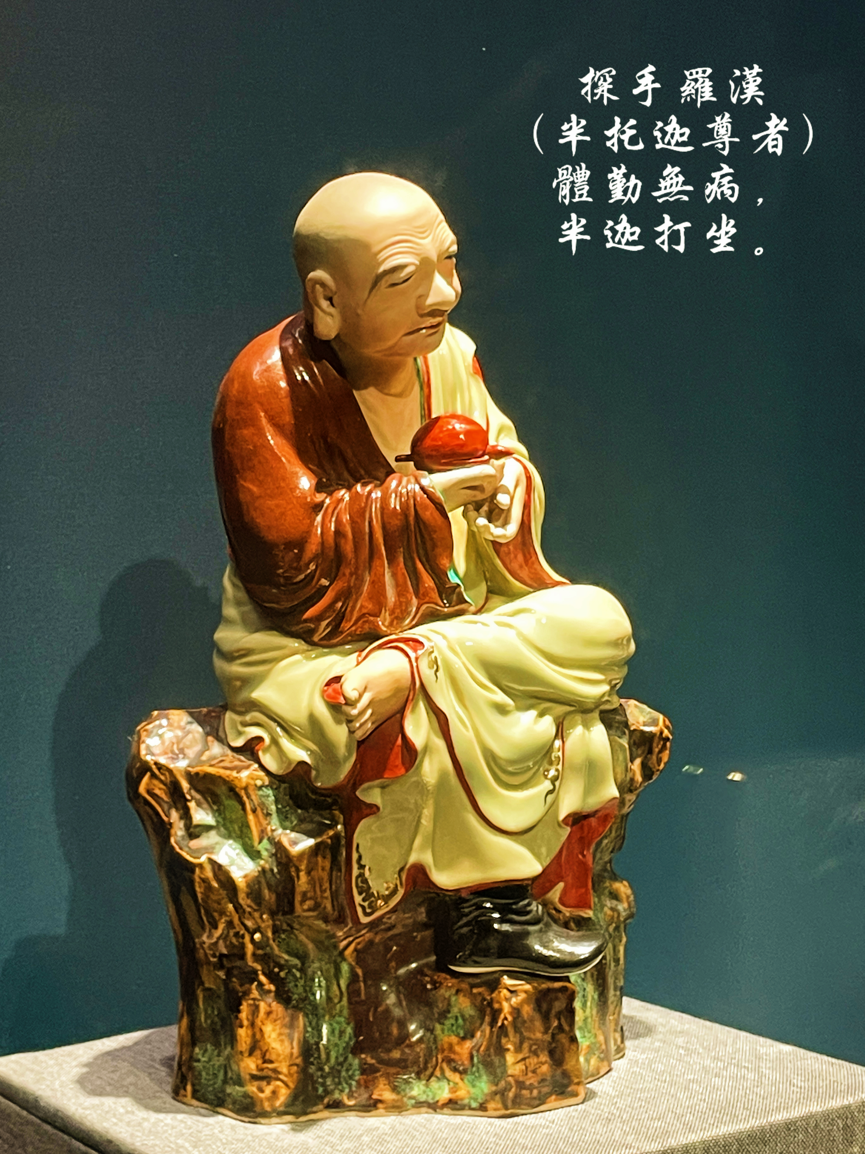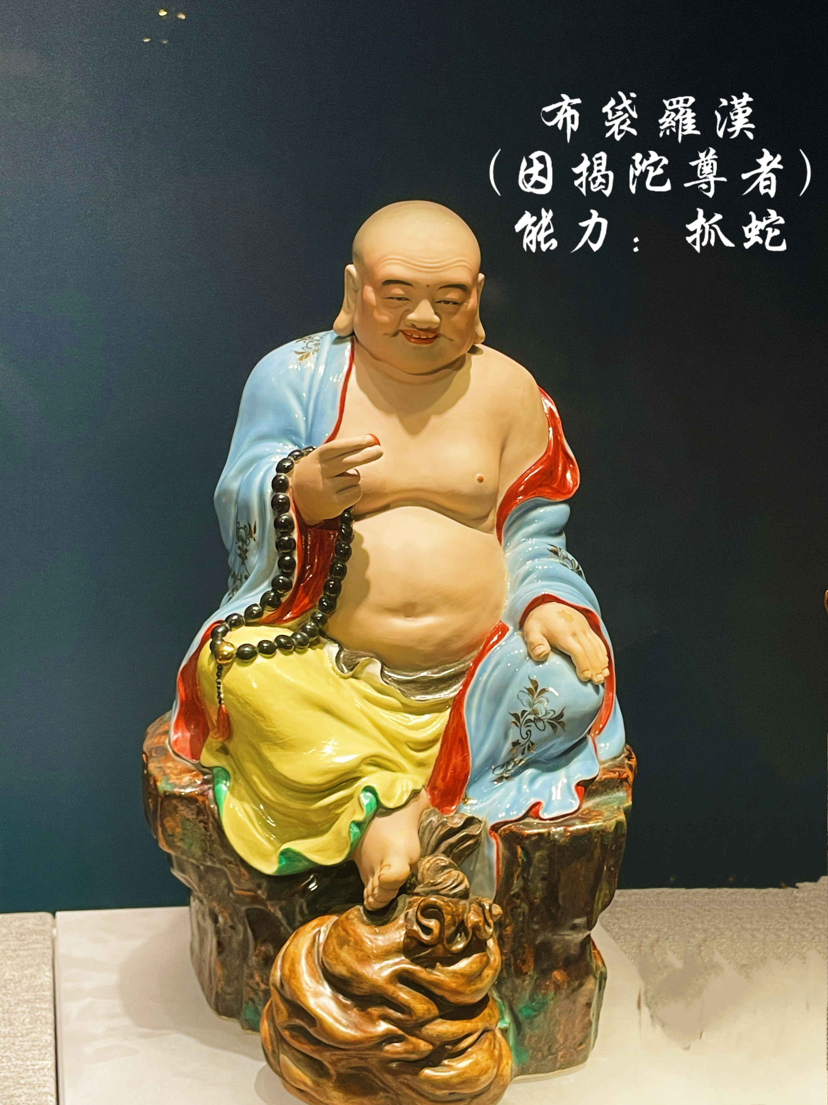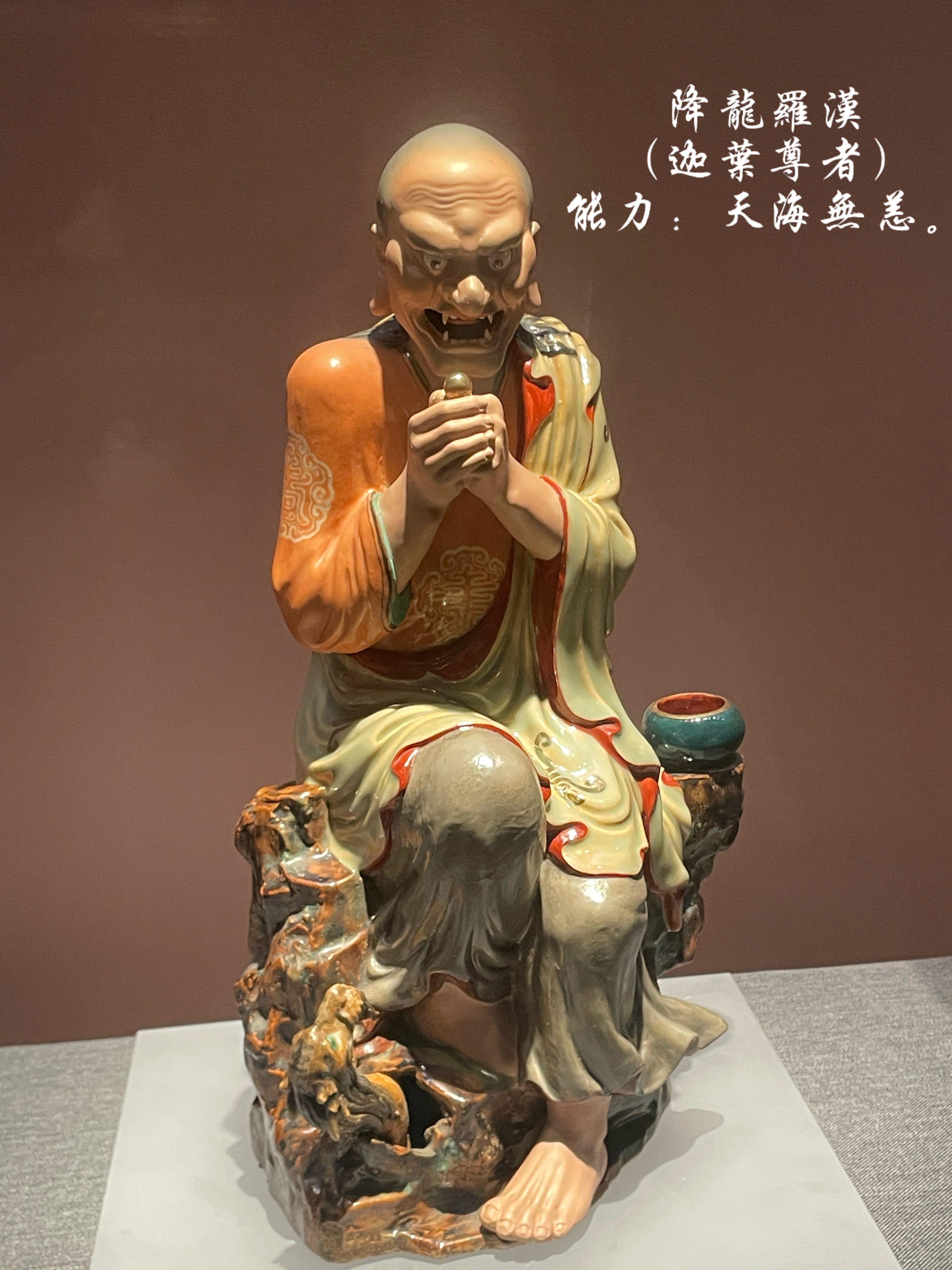 曾龙升与他创作的十八罗汉 景德镇中国博物馆展出的现代著名陶瓷大师曾龙升早年创作的的《十八罗汉》栩栩如生,表情丰富精彩,深受人们亲睐。 曾龙升,字龙生,江西省丰城县人,生于1901年,卒于1964年,民国时期至建国初期的雕塑名家。曾拜游长子为师,曾氏出生于木刻之家,其父及几位兄长均从事木刻、油漆工作,因受家庭影响,他从小就爱上了立体雕刻这门艺术。14岁时由叔父带到景德镇,在制瓷作坊学习陶瓷雕塑。由于他学习勤奋,技术进步很快。后以瓷雕技艺闻名,被誉为“陶瓷曾”创始人,与天津“泥人张”、石湾“陶塑刘”并称中国雕塑界三大流派代表。(二) 下图:探手罗汉、沉思罗汉、挖耳罗汉、布袋罗汉、芭蕉罗汉、长眉罗汉、看门罗汉、降龙罗汉、伏虎罗汉