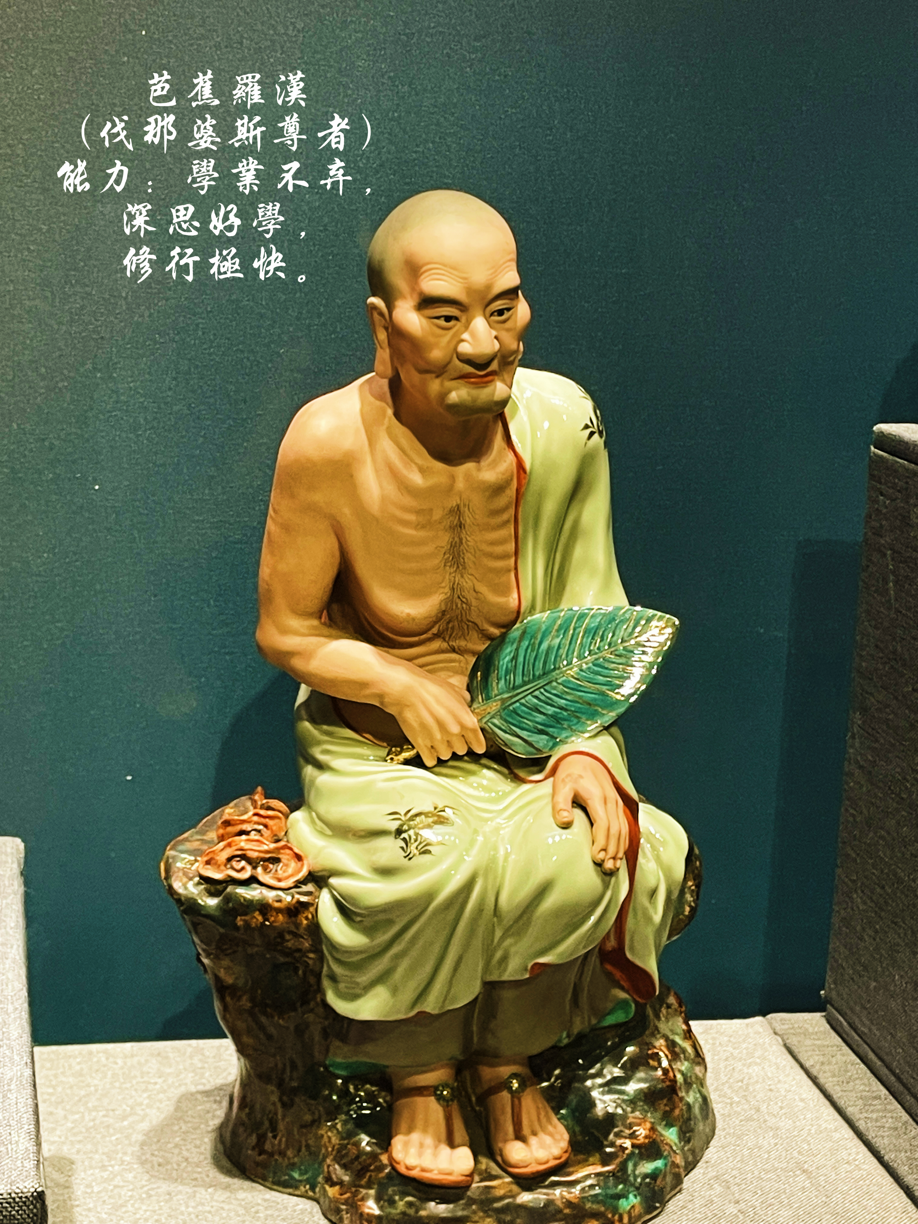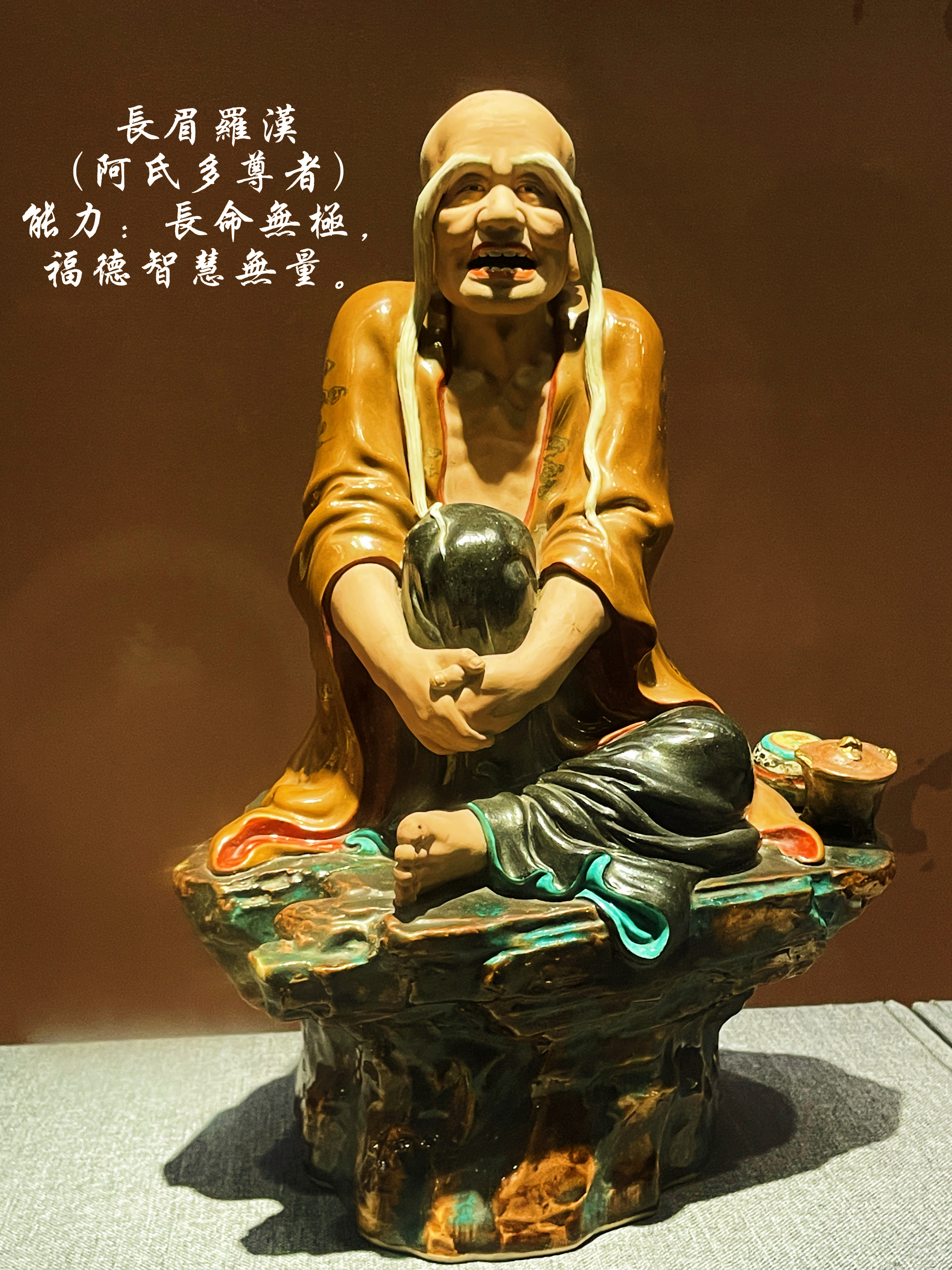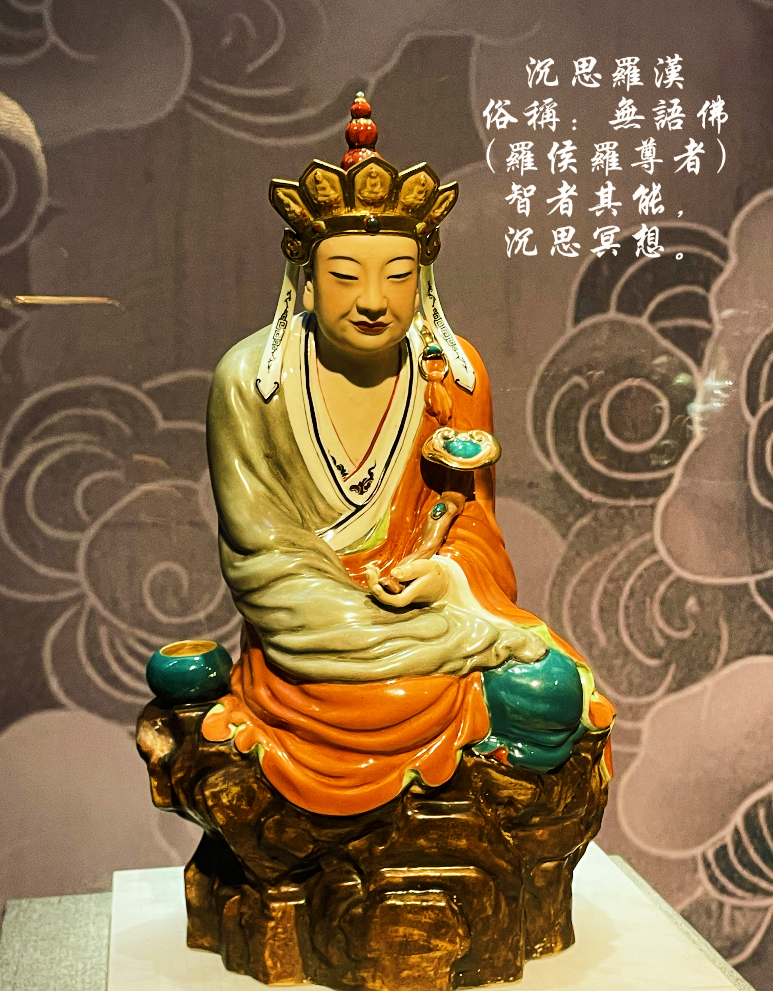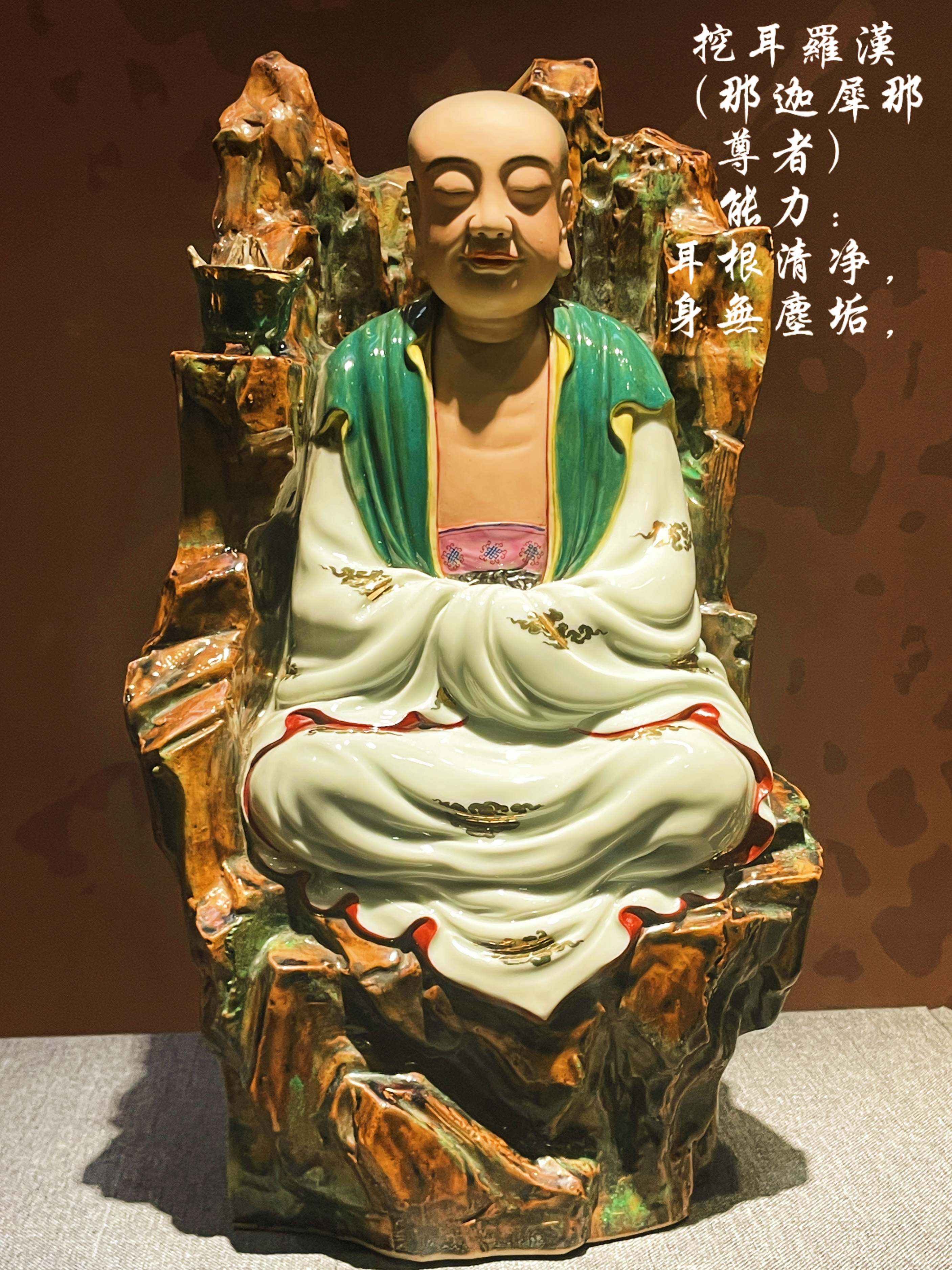 曾龙升与他创作的十八罗汉 景德镇中国博物馆展出的现代著名陶瓷大师曾龙升早年创作的的《十八罗汉》栩栩如生,表情丰富精彩,深受人们亲睐。 曾龙升,字龙生,江西省丰城县人,生于1901年,卒于1964年,民国时期至建国初期的雕塑名家。曾拜游长子为师,曾氏出生于木刻之家,其父及几位兄长均从事木刻、油漆工作,因受家庭影响,他从小就爱上了立体雕刻这门艺术。14岁时由叔父带到景德镇,在制瓷作坊学习陶瓷雕塑。由于他学习勤奋,技术进步很快。后以瓷雕技艺闻名,被誉为“陶瓷曾”创始人,与天津“泥人张”、石湾“陶塑刘”并称中国雕塑界三大流派代表。(二) 下图:探手罗汉、沉思罗汉、挖耳罗汉、布袋罗汉、芭蕉罗汉、长眉罗汉、看门罗汉、降龙罗汉、伏虎罗汉