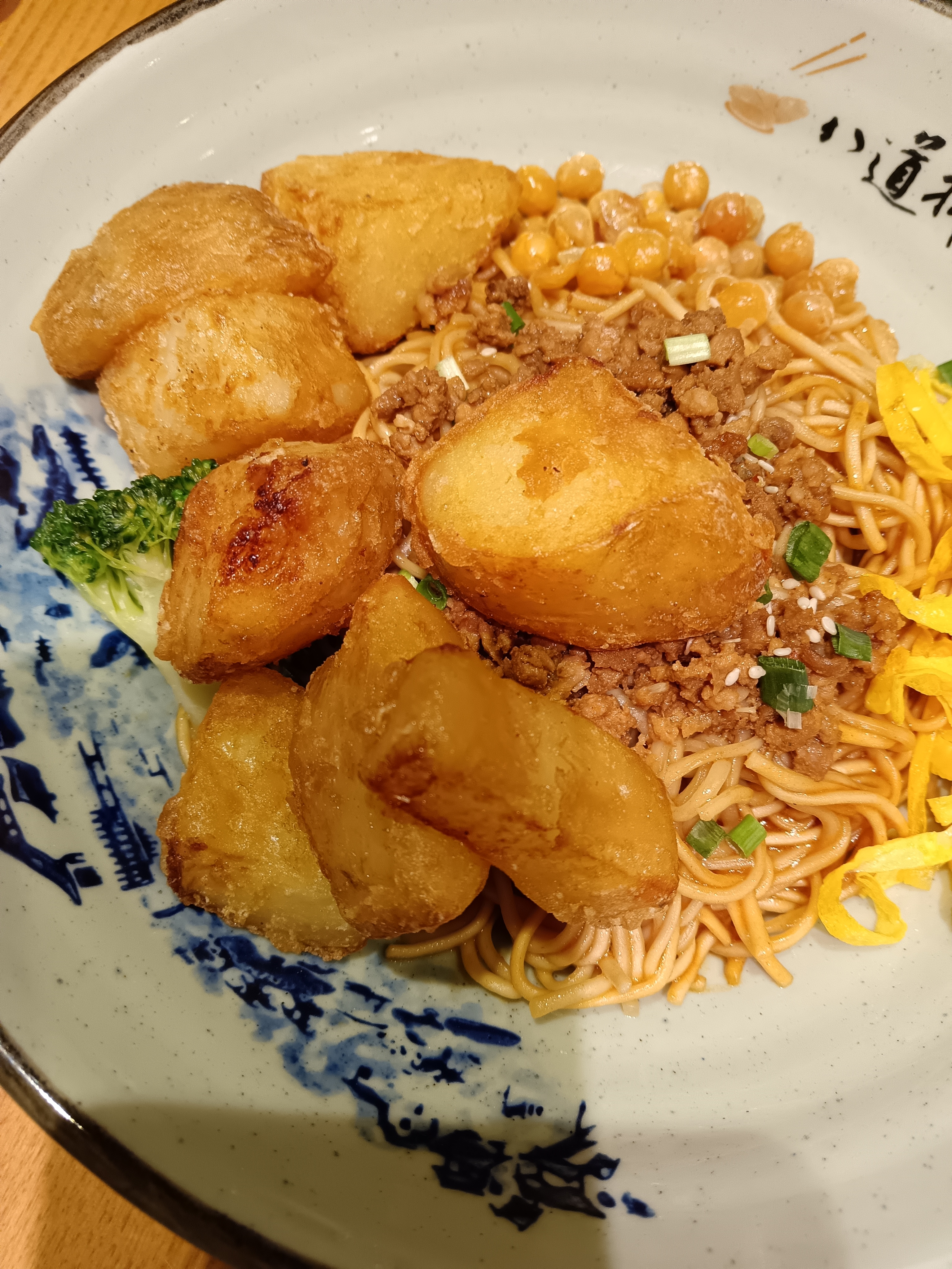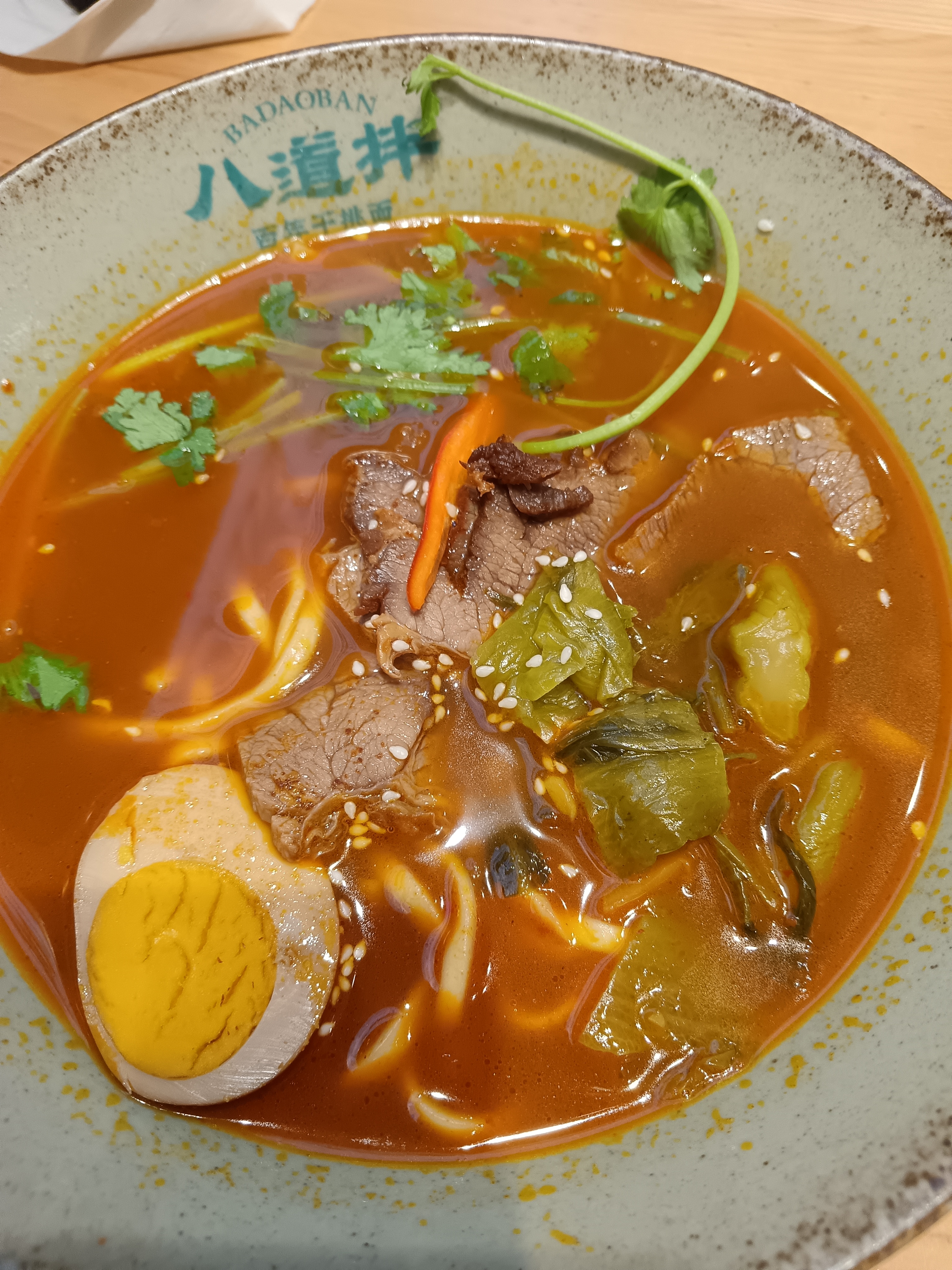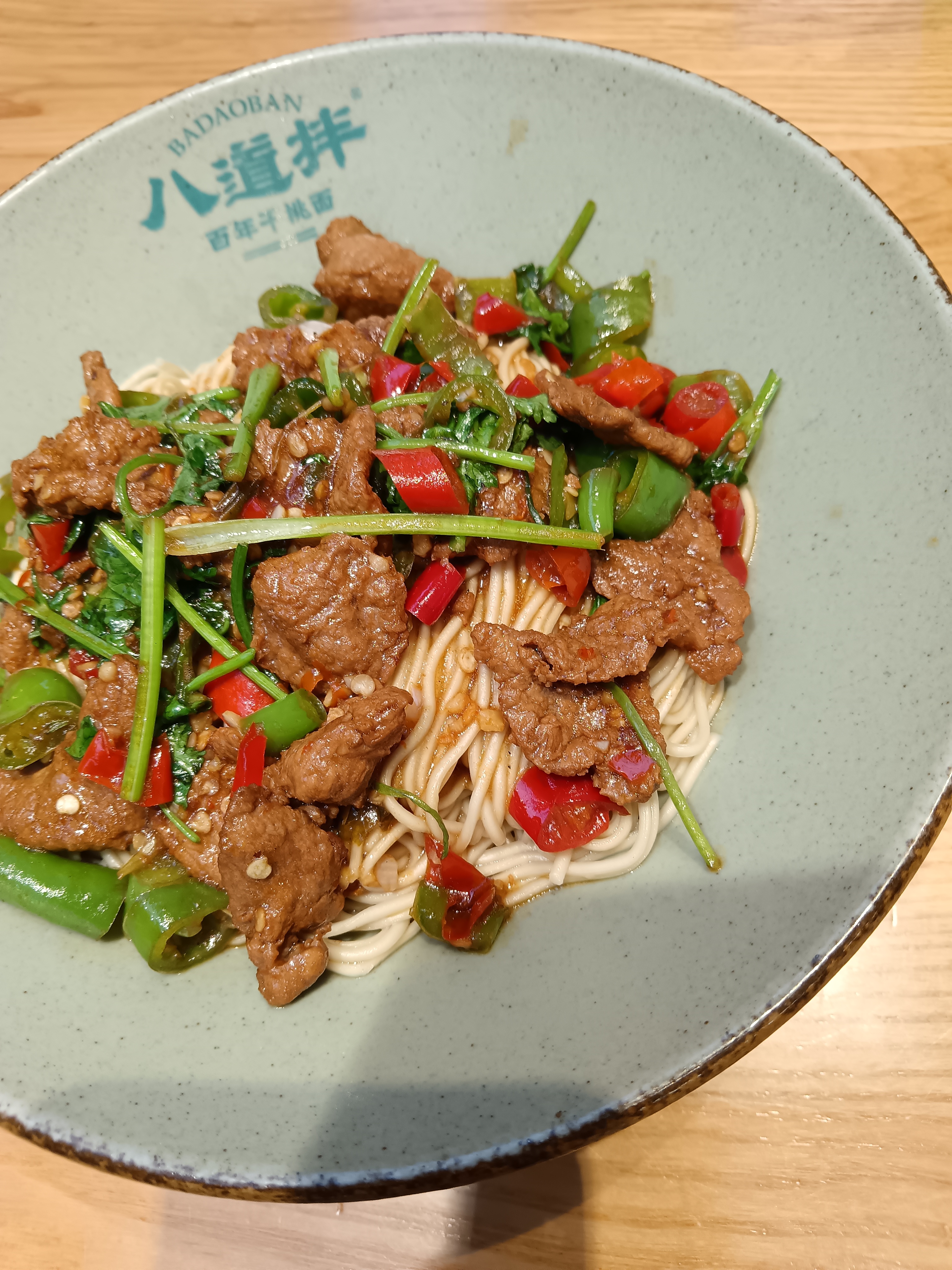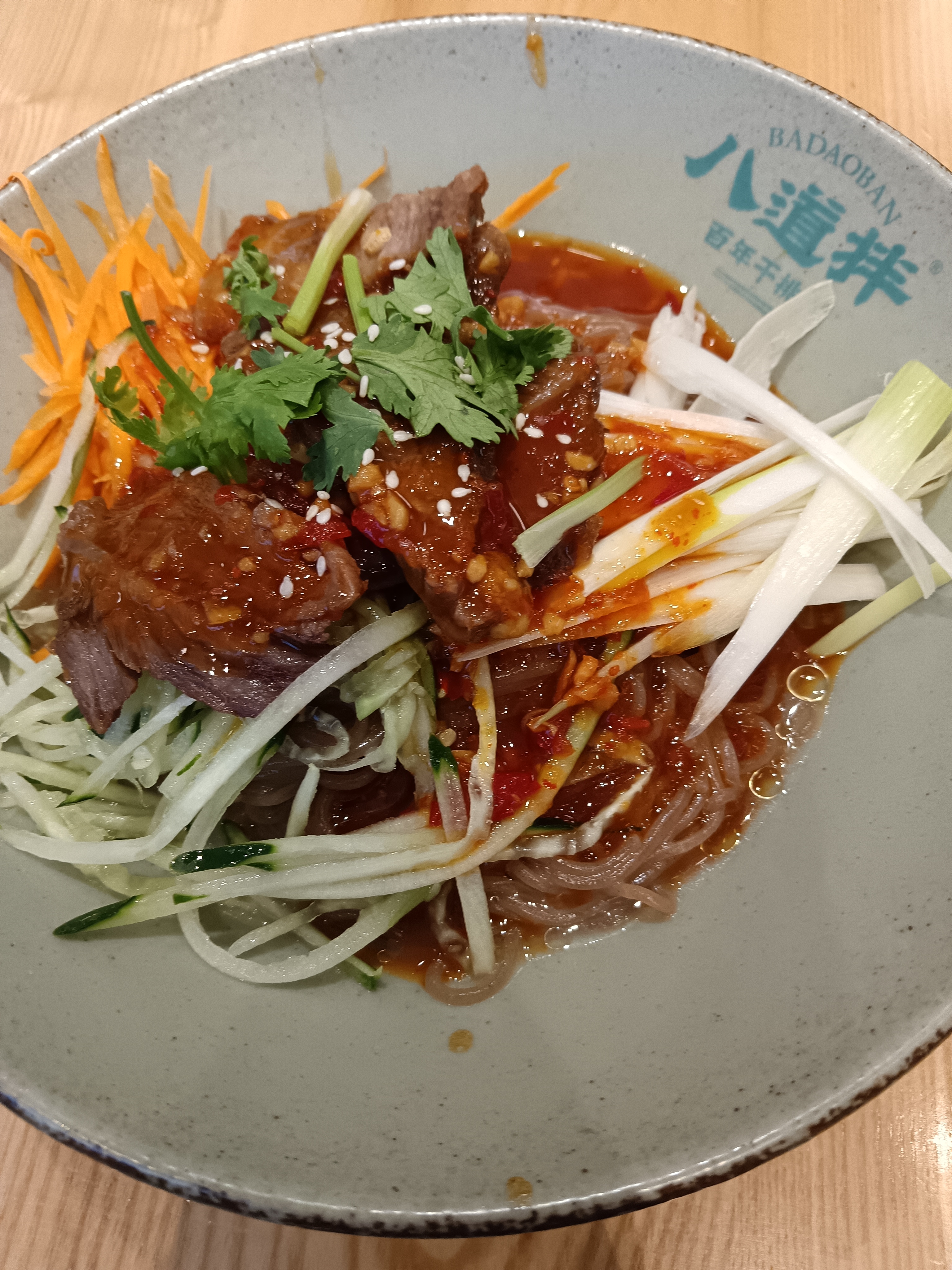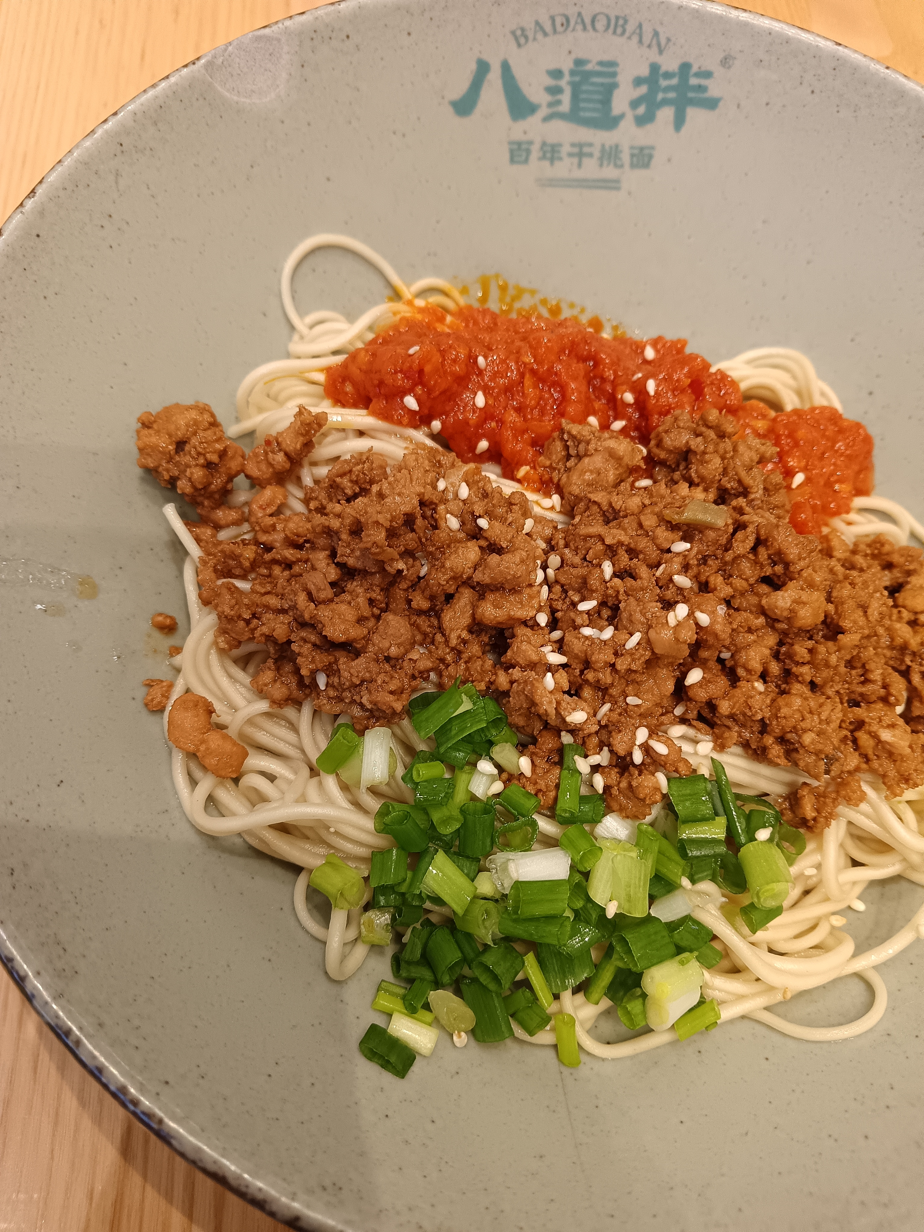 江南好面“八道拌”,汤面和拌面均有特色!在湖州的拌面,更多的称作“干挑面”。所以,很多人一从名字就可以得知,这是湖州风味 番茄肉酱干挑面,小炒黄牛肉干挑面,鱼香肉丝干挑面,小炒肉干挑面,豌豆肉酱干挑面均是细面,很劲道很有嚼劲! 红烧牛肉汤面里的面却是宽面,酸溜溜的感觉,劲道的卤牛肉,一份面不够吃,一定要多来几份 夏日专属的便是,凉拌牛肉荞麦凉面了。八道拌的新品上新速度也给给力的,期待一年四季每时每刻的舌尖味蕾惊喜