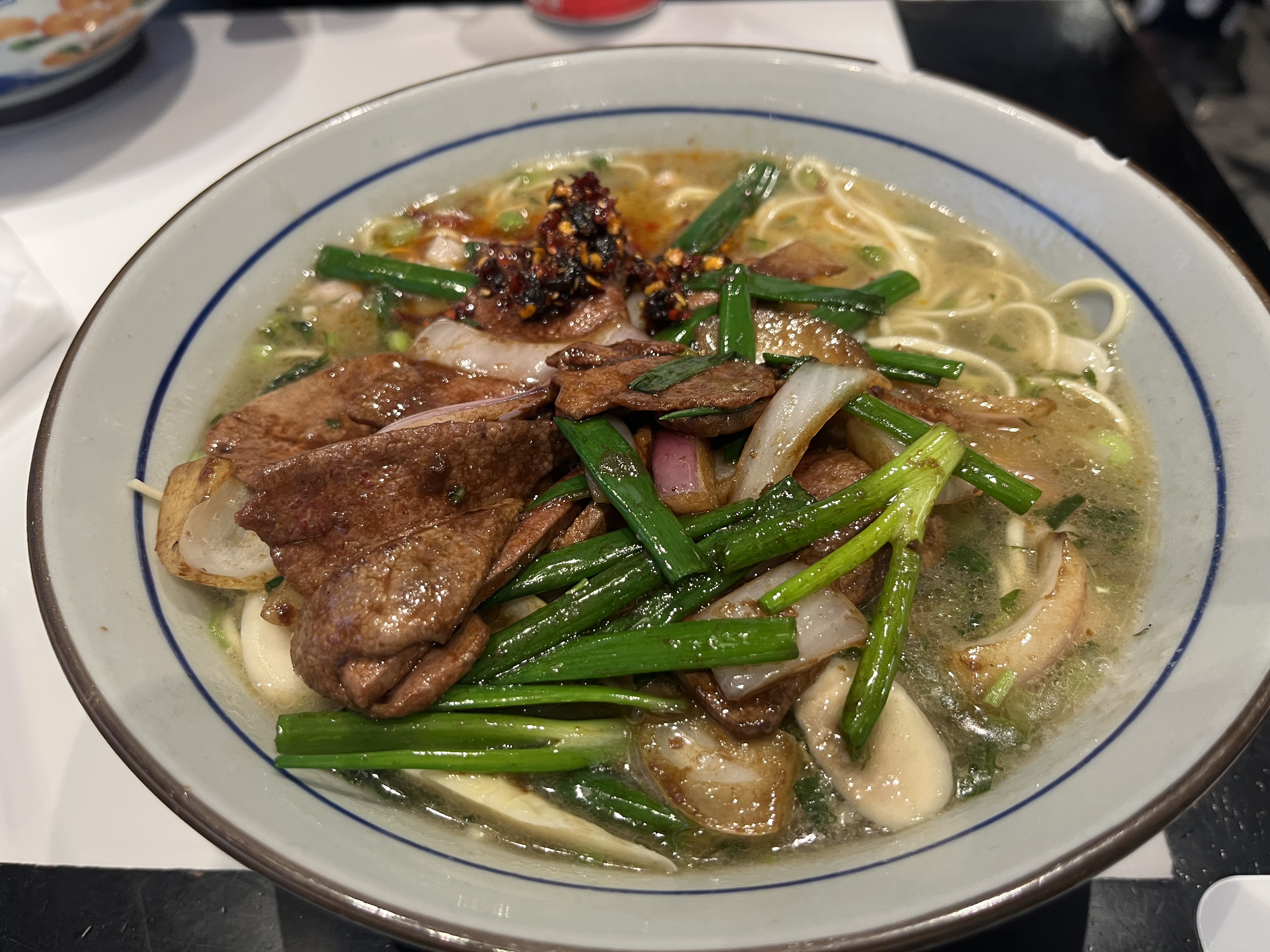 没吃到斩鱼圆,吃到了片儿川和猪肝浇头。“方老大”的面味道不错,汤头清爽,扁面好吃~