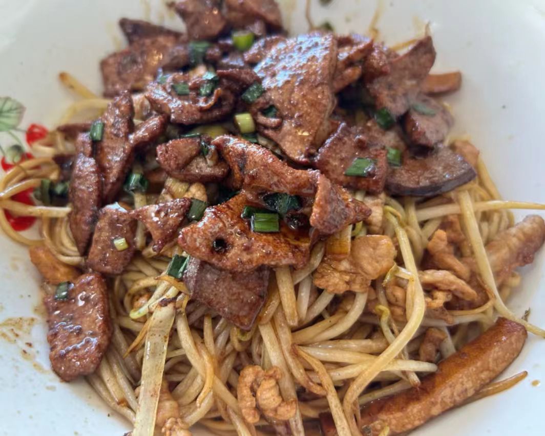 杭州人对拌川的喜爱程度,完全超出了我的想象。 我不是杭州人,可来了杭州后也喜欢上了这一口面食。其中的猪肝拌川是我最喜欢吃的。 二狗面馆,现点现烧的浇头还带着锅气,来一份猪肝拌川,猪肝很嫩,而且量是真的多,大火爆炒过得猪肝,没有一点腥味,滑嫩绵密的口感,和很有嚼劲的面条,热气腾腾一大份,拌一拌,吃的太满足了,这样一碗下肚是真的很落胃。