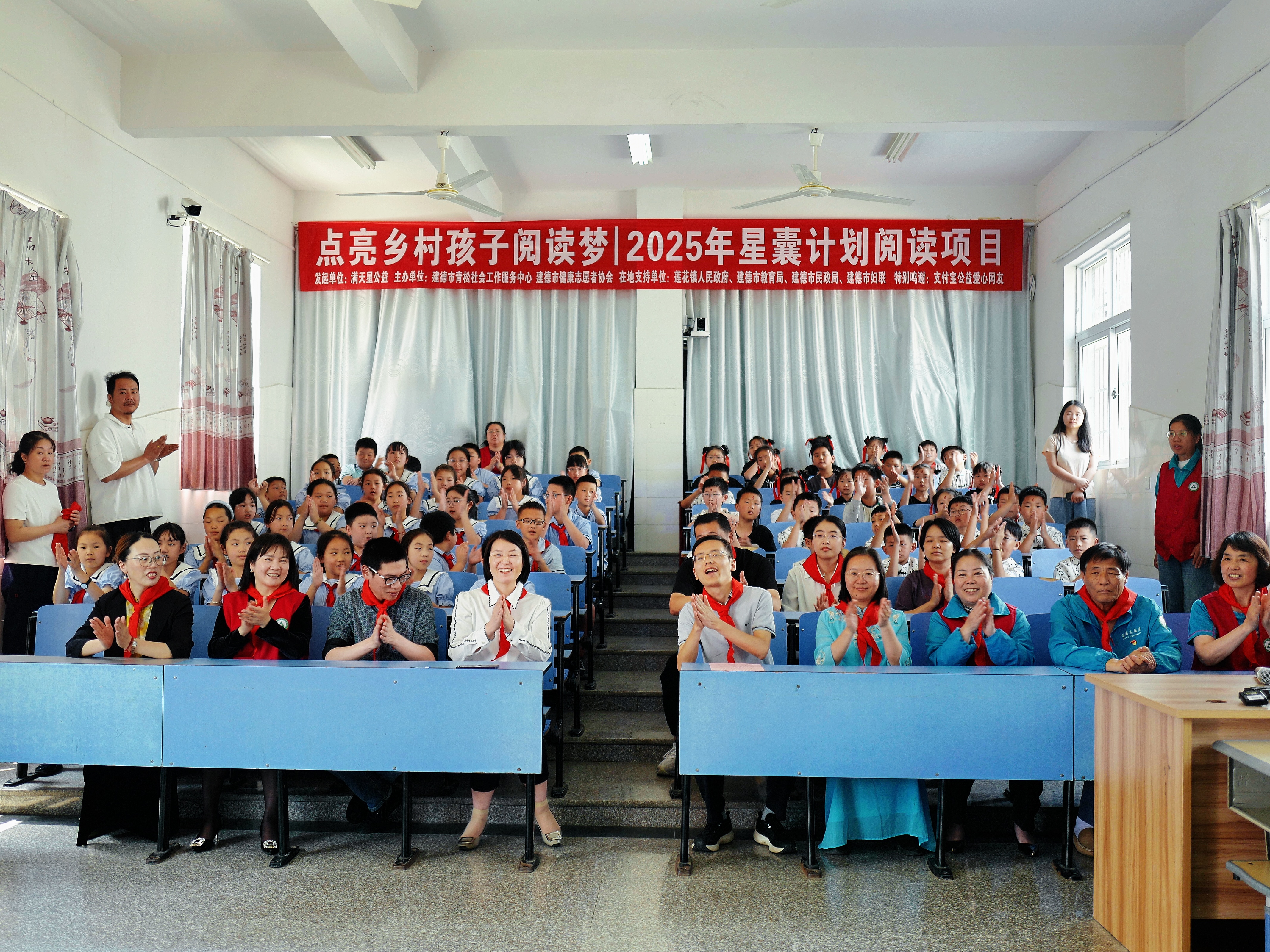 书香润童心 爱心筑未来——满天星公益星囊计划走进建德市莲花中心小学 在六一儿童节来临之际,为点亮乡村儿童阅读希望,由满天星公益组织发起,建德市青松社会工作服务中心、建德市健康志愿者协会主办,莲花镇人民政府、建德市教育局、建德市民政局、建德市妇联在地支持,支付宝公益爱心网友共同助力的“阅读之星·伴你同行——星囊计划”图书捐赠仪式在建德市莲花镇中心小学隆重举行,相关单位、机构领导和莲花中心小学全体师生参与赠书活动。 “星囊计划”旨在为乡村儿童派发儿童读物以及阅读辅助用品的锦囊,并开展阅读交换和表彰活动,培养学生阅读习惯,为共建“书香校园”助力添彩。 本次活动由学生代表主持,活动前少先队员为“大朋友们”系上鲜艳的红领巾,用实际行动对他们的到来表示感谢。 建德市妇联党组成员、副主席朱旭敏致开幕词,她对满天星公益组织以及关心下一代工作的相关单位、组织的爱心善举表示感谢。她表示,本次赠书活动不仅是款款关爱之情,更有殷殷期望之心。腹有诗书气自华,相信这次活动将在乡村孩子心中播下读书的种子,期待书香溢满校园。捐赠仪式上,相关单位领导和公益组织代表为全校200多名学生赠书,活动气氛十分热烈。 随后,建德市青松社会工作服务中心创始人方敏介绍了星囊计划的发起背景、运作理念与公益目标。她指出,此次满天星公益星囊计划为各年纪学生量身定制了儿童读物和趣艺手工套装,希望能让更多学生汲取书籍中的知识,享受手作带来的乐趣。同时也定制了阅读宝藏手册、阅读存折、书签贴纸和回音卡等物资,希望能借此培养学生阅读兴趣,感受文化的力量,成为品正学实、健康自信的阳光少年。 捐赠仪式后,建德市青松社会工作服务中心和建德市健康志愿者协会的志愿者们为学生讲解星囊使用方法,并陪同学生开展好书共读、阅读分享等系列活动,让每一位学生都能培养“爱读书、读好书、善读书”的好习惯。 “莲花镇始终坚持将关心下一代工作落到实处,下一步,我们将深耕书香校园建设,以书香浸润童心,助力学生在阅读中开阔视野、启迪智慧,书写精彩人生篇章。”莲花镇副镇长许华其表示。