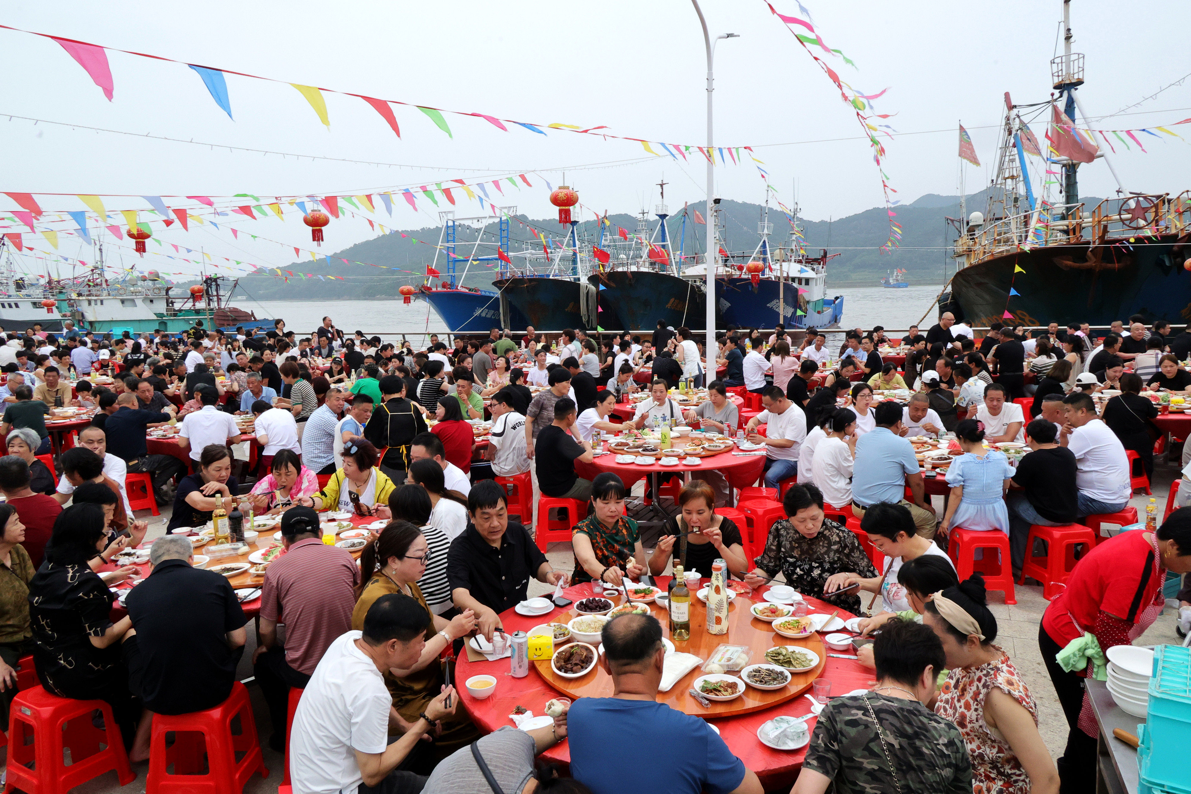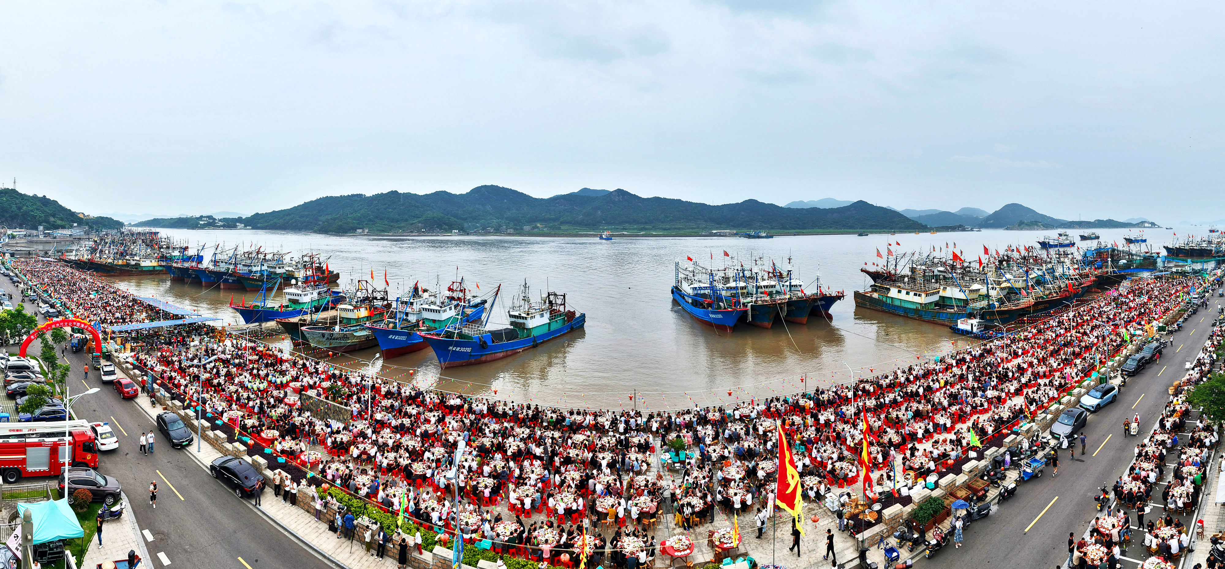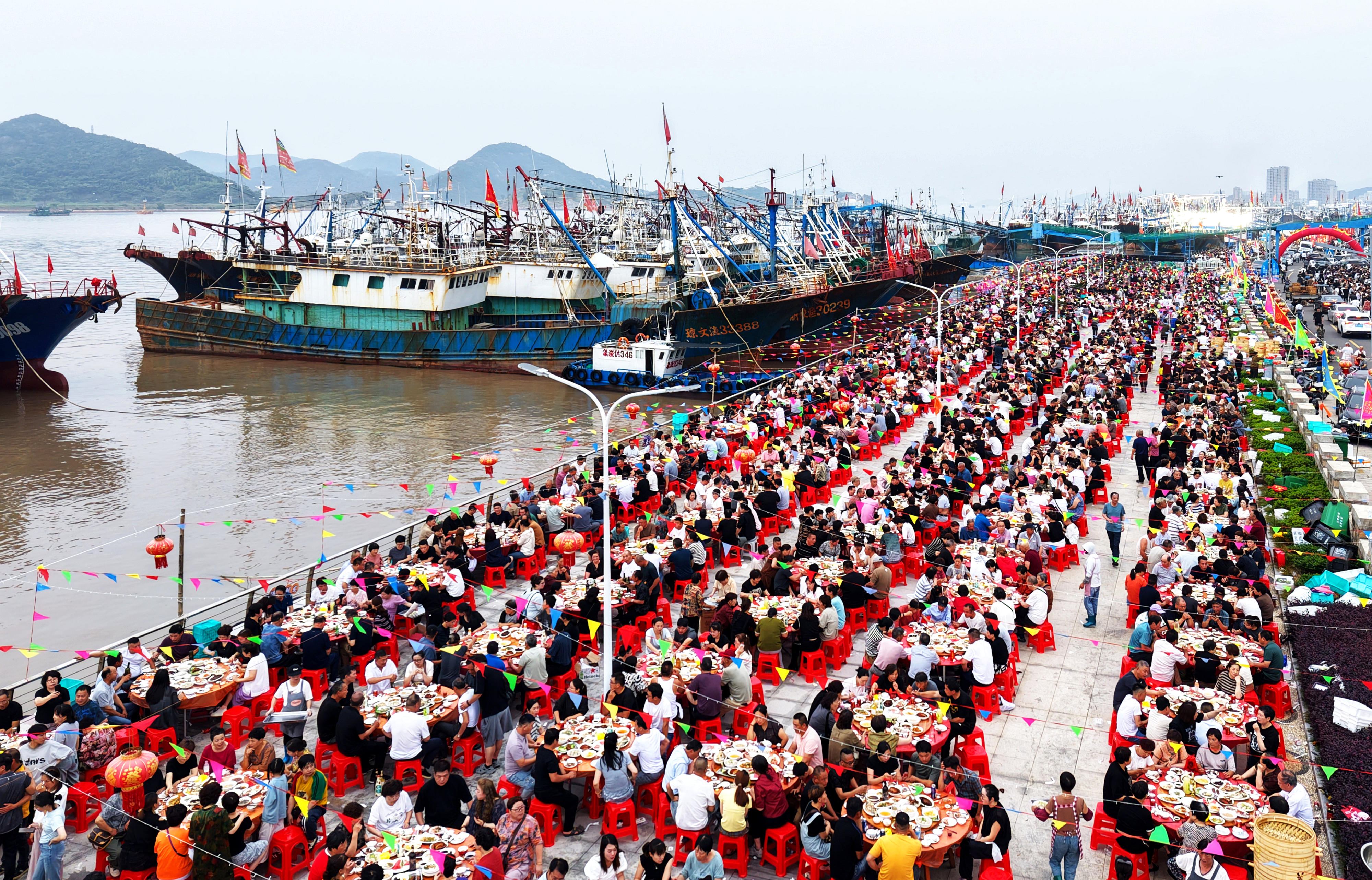 《石浦东门渔村“关公磨刀节”办万人宴,壮观!》 6 月 8 日,象山石浦东门岛“关公磨刀节”民俗活动暨第十七届渔民文化节隆重举行。活动之一的万人宴沿码头整齐排开,871 桌宴席宛如一条巨龙,红色桌布在微风中轻轻闪动,宛如跳动的火苗。勾勒出浙江渔业第一村的蓬勃生机与深厚底蕴。