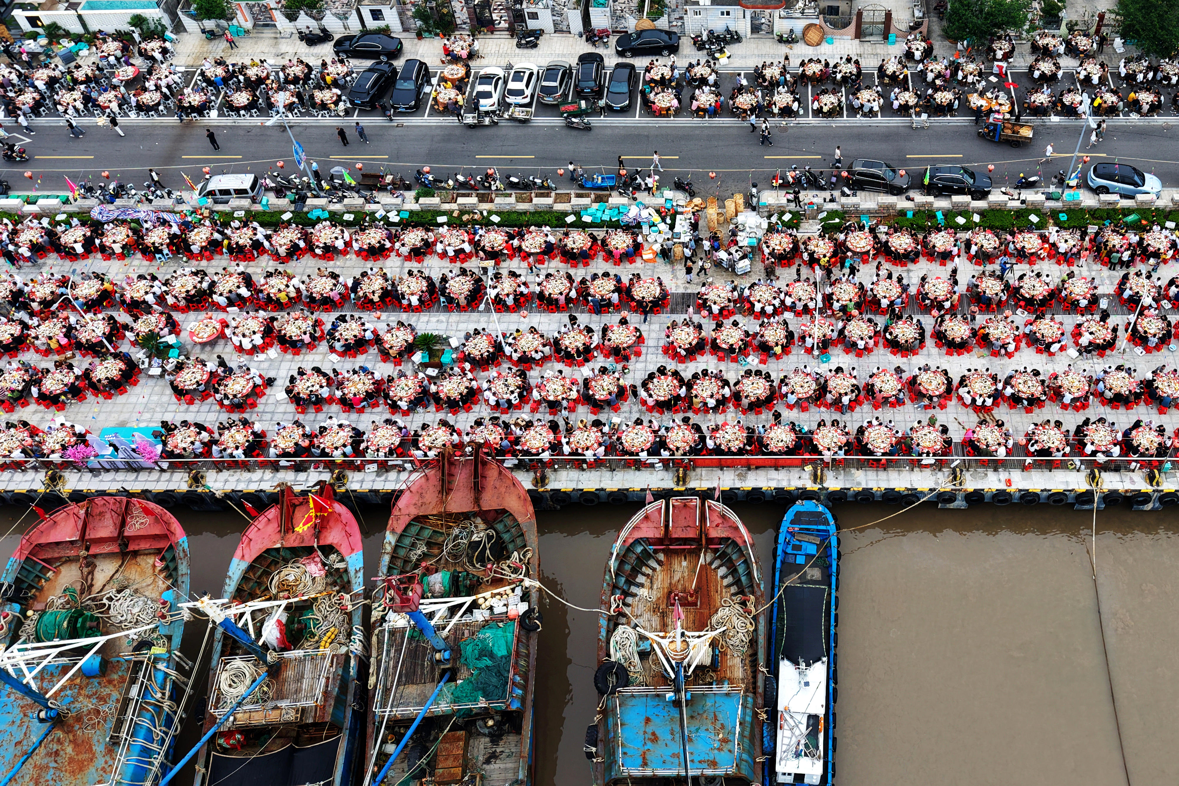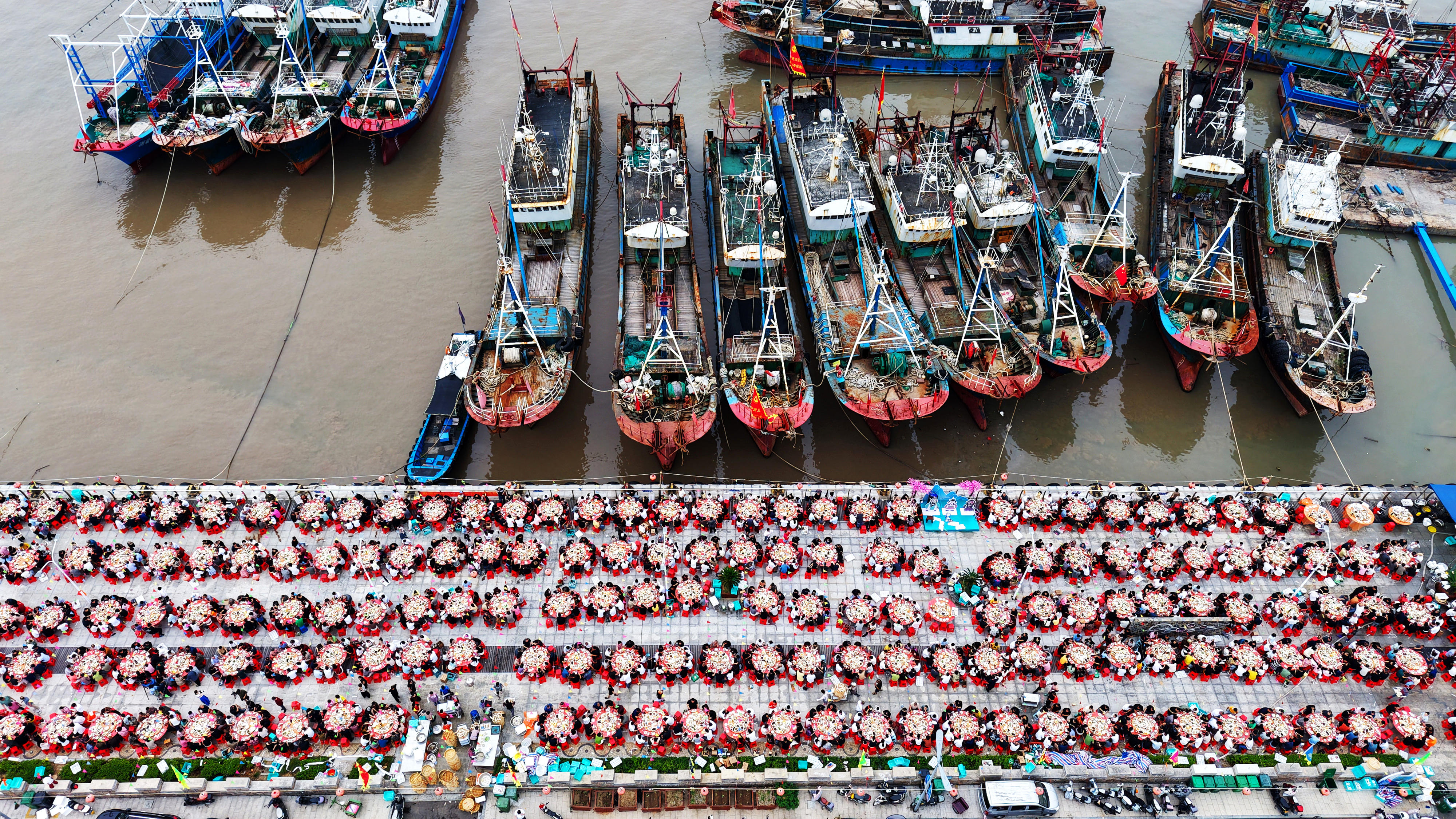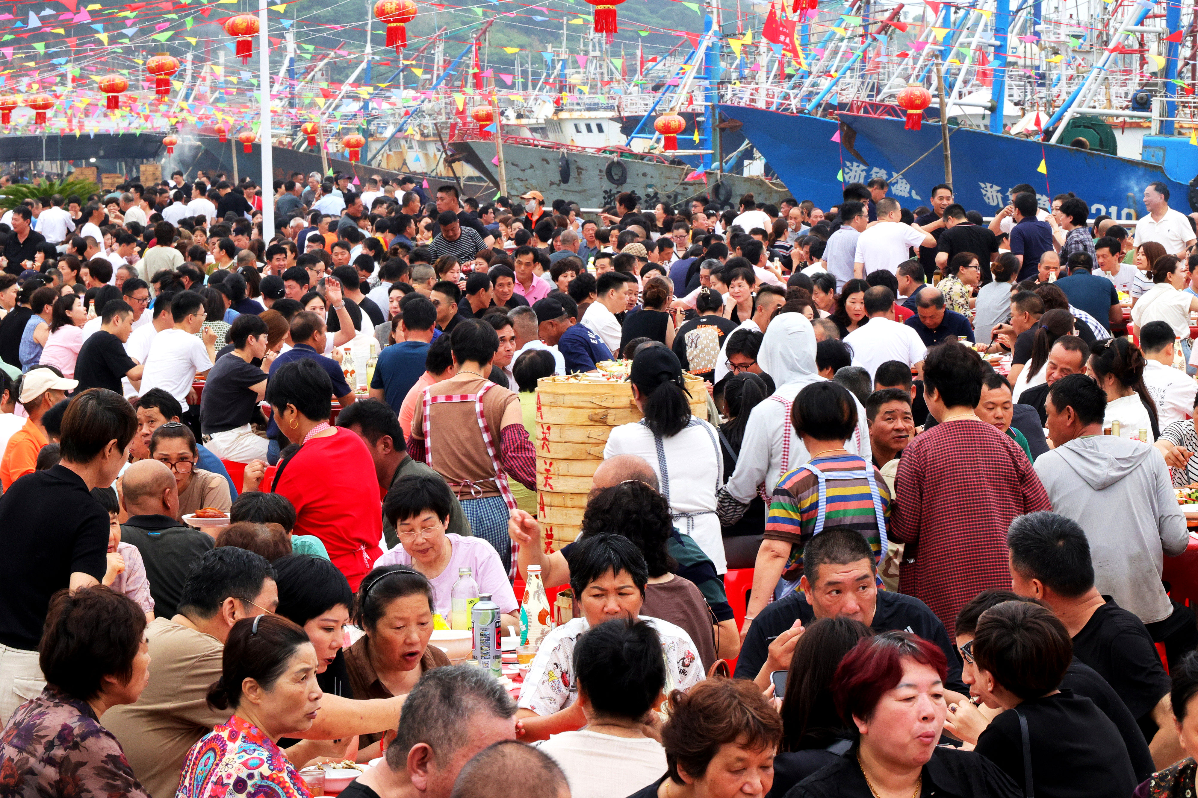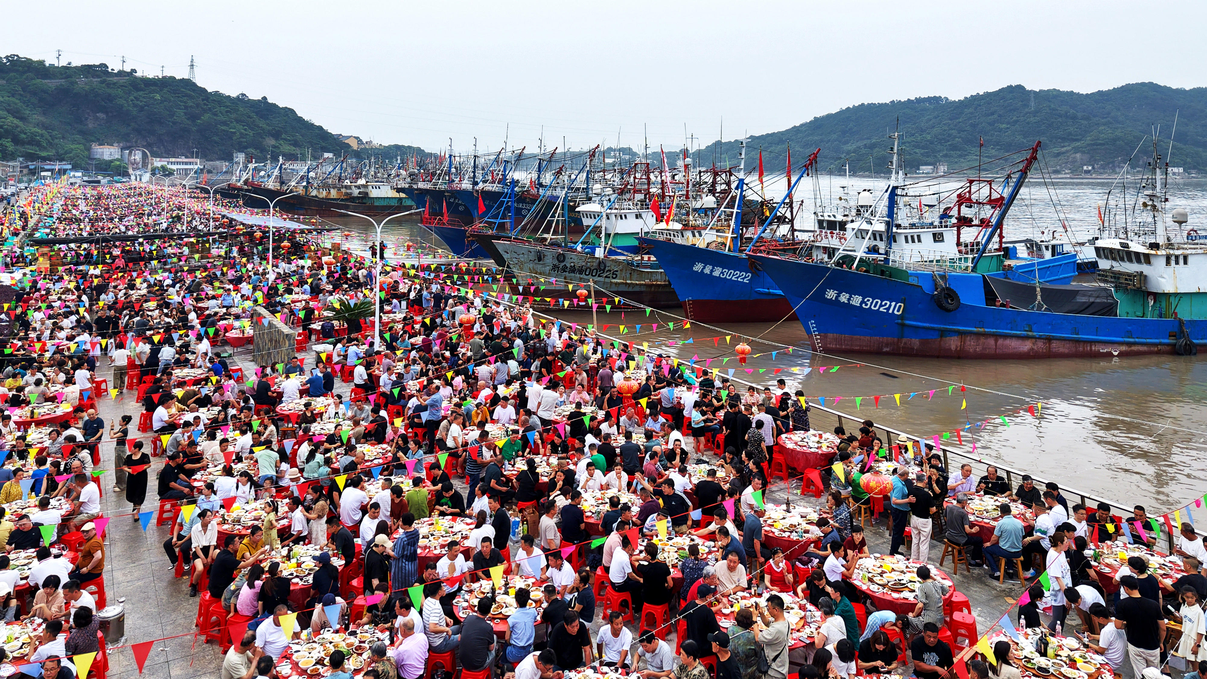 《石浦东门渔村“关公磨刀节”办万人宴,壮观!》 6 月 8 日,象山石浦东门岛“关公磨刀节”民俗活动暨第十七届渔民文化节隆重举行。活动之一的万人宴沿码头整齐排开,871 桌宴席宛如一条巨龙,红色桌布在微风中轻轻闪动,宛如跳动的火苗。勾勒出浙江渔业第一村的蓬勃生机与深厚底蕴。