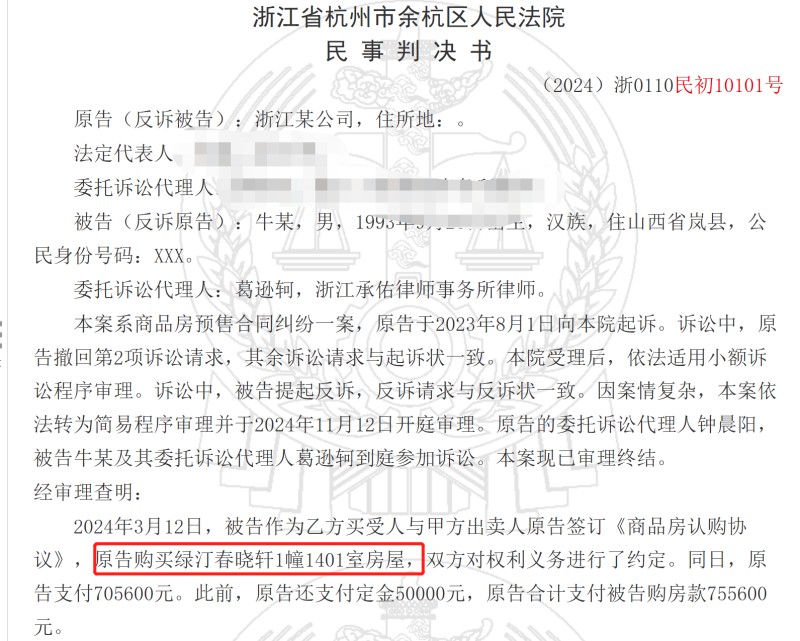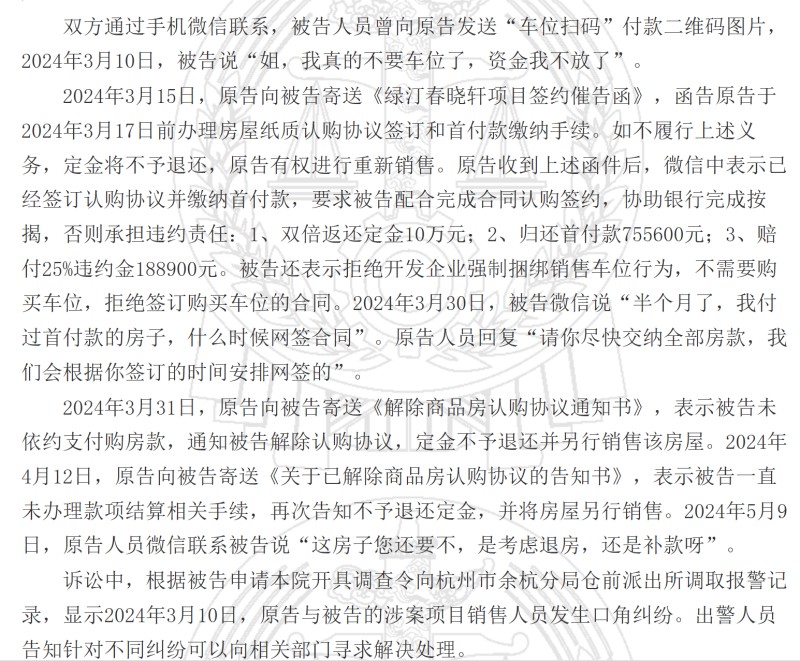 绿汀春晓的这套退房背后的故事还挺精彩,简而言之就是,业主不想绑车位打官司输了