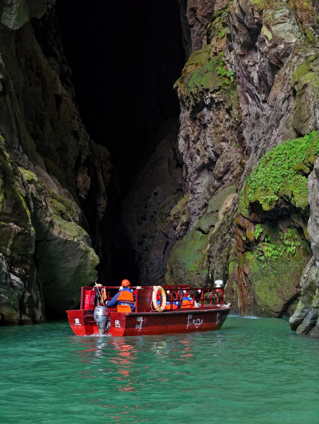 在重庆黔江的群山环抱中,蒲花暗河悄然流淌。乘船而入,仿佛踏入了《盗墓笔记》的奇幻世界。这条被誉为“地心画廊”的喀斯特秘境, 以其奇特的溶洞和绚丽的光影交织,堪称喀斯特奇观的瑰宝。