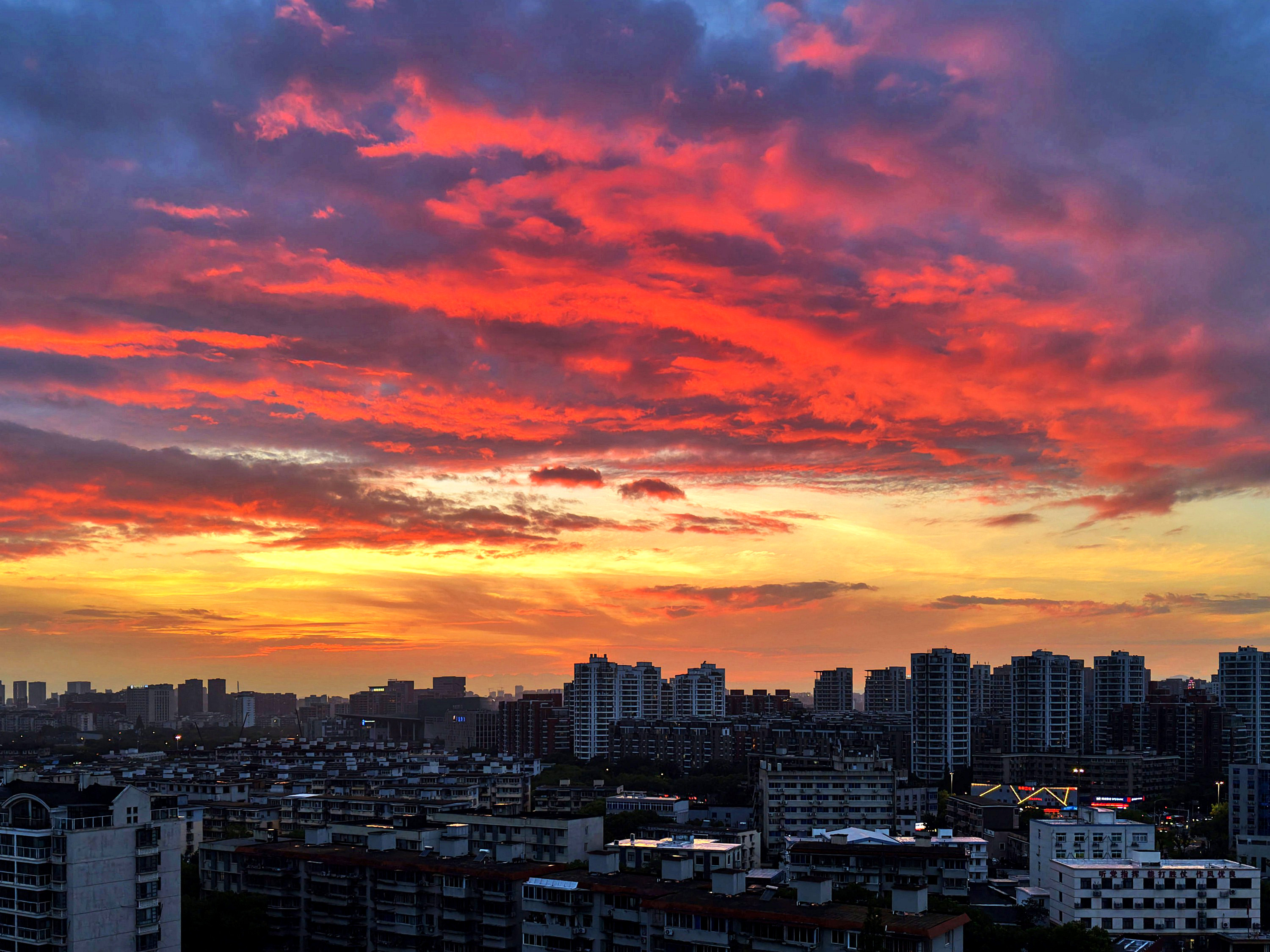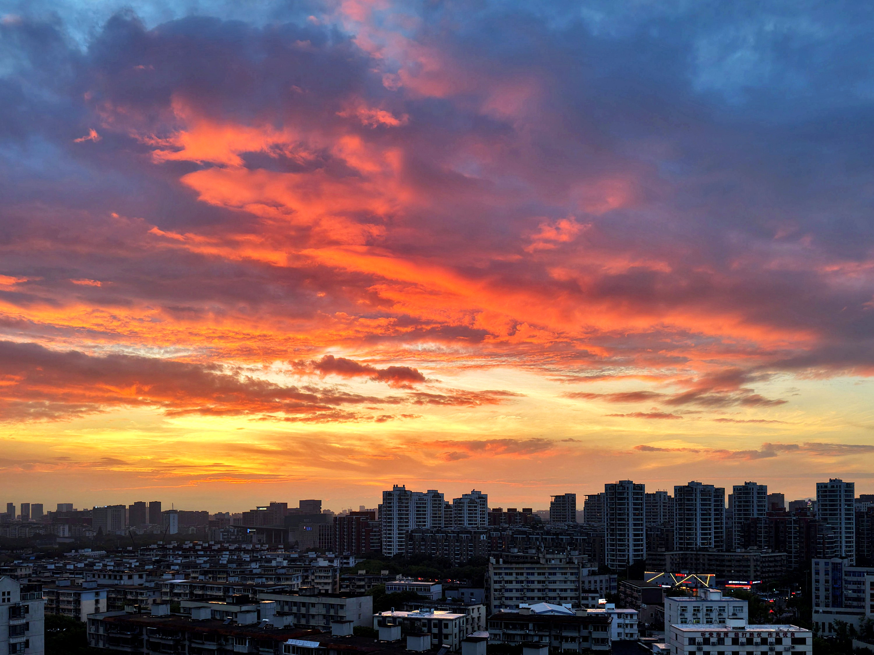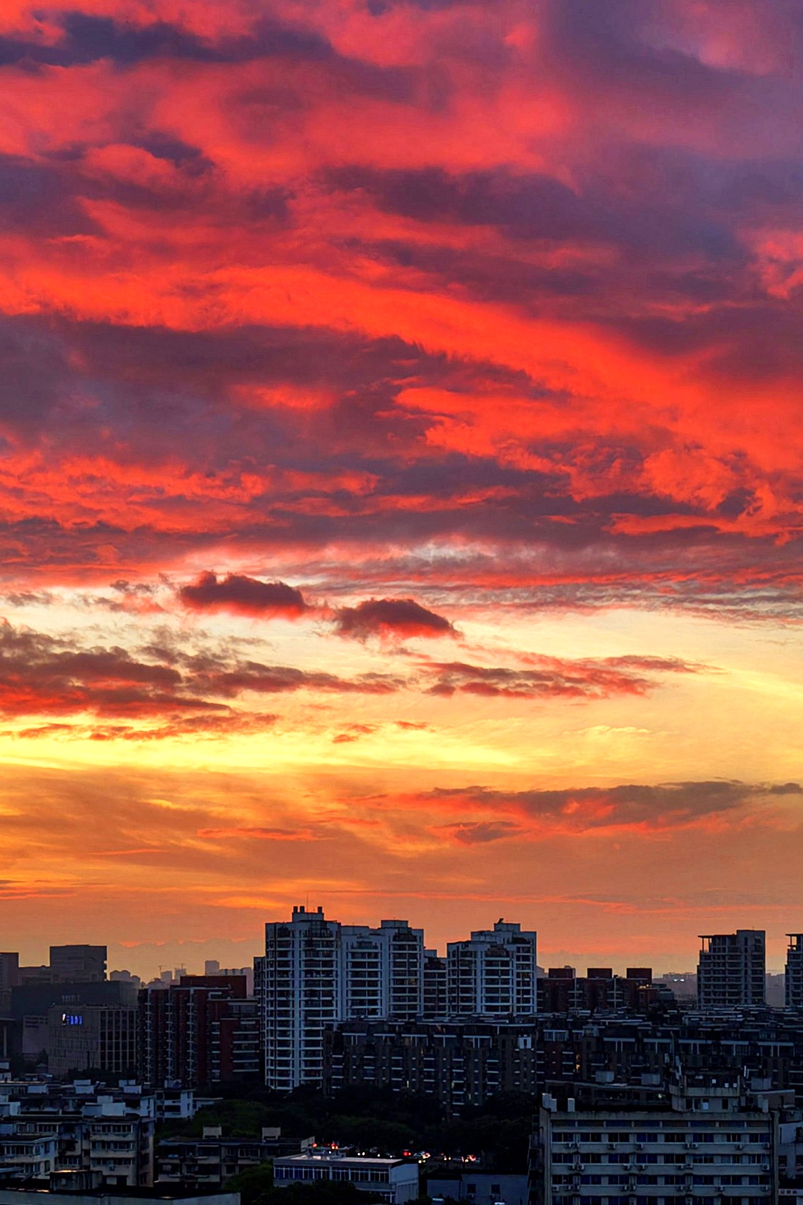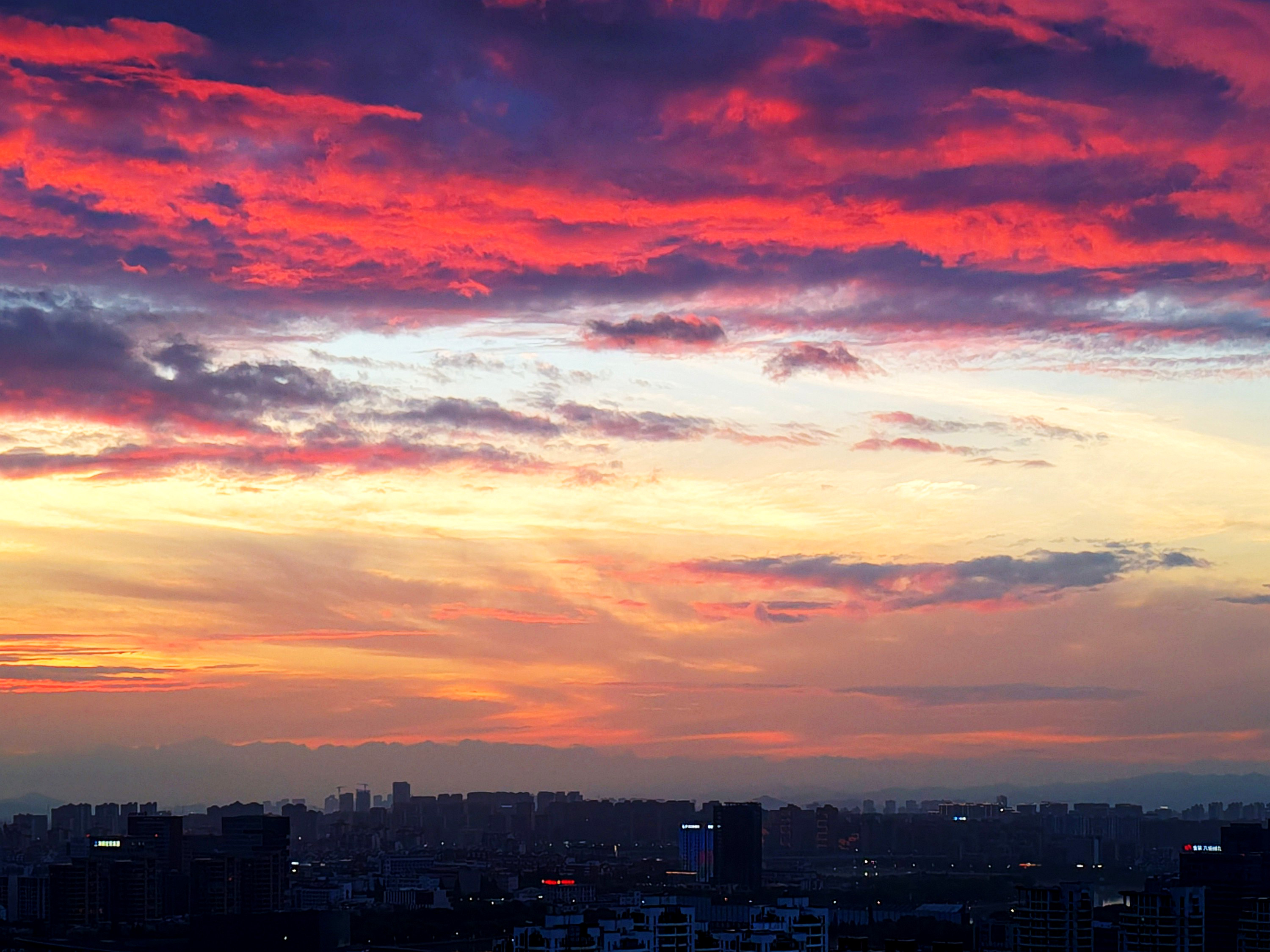 《雨后火烧云》昨天,几乎下了一天的雨,且还不小。没想到夕阳落去时分,天空竟然燃起火烧云,美了!