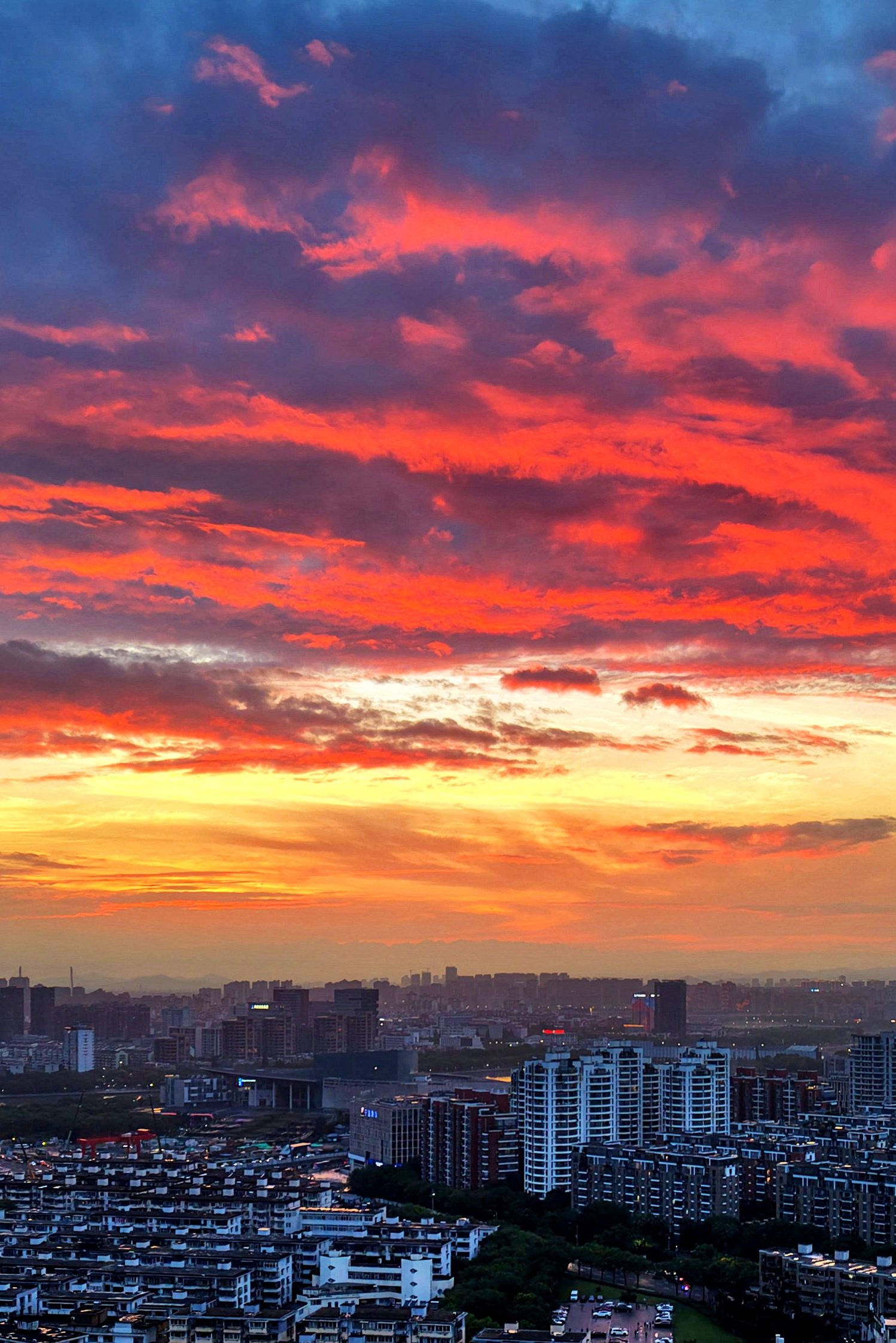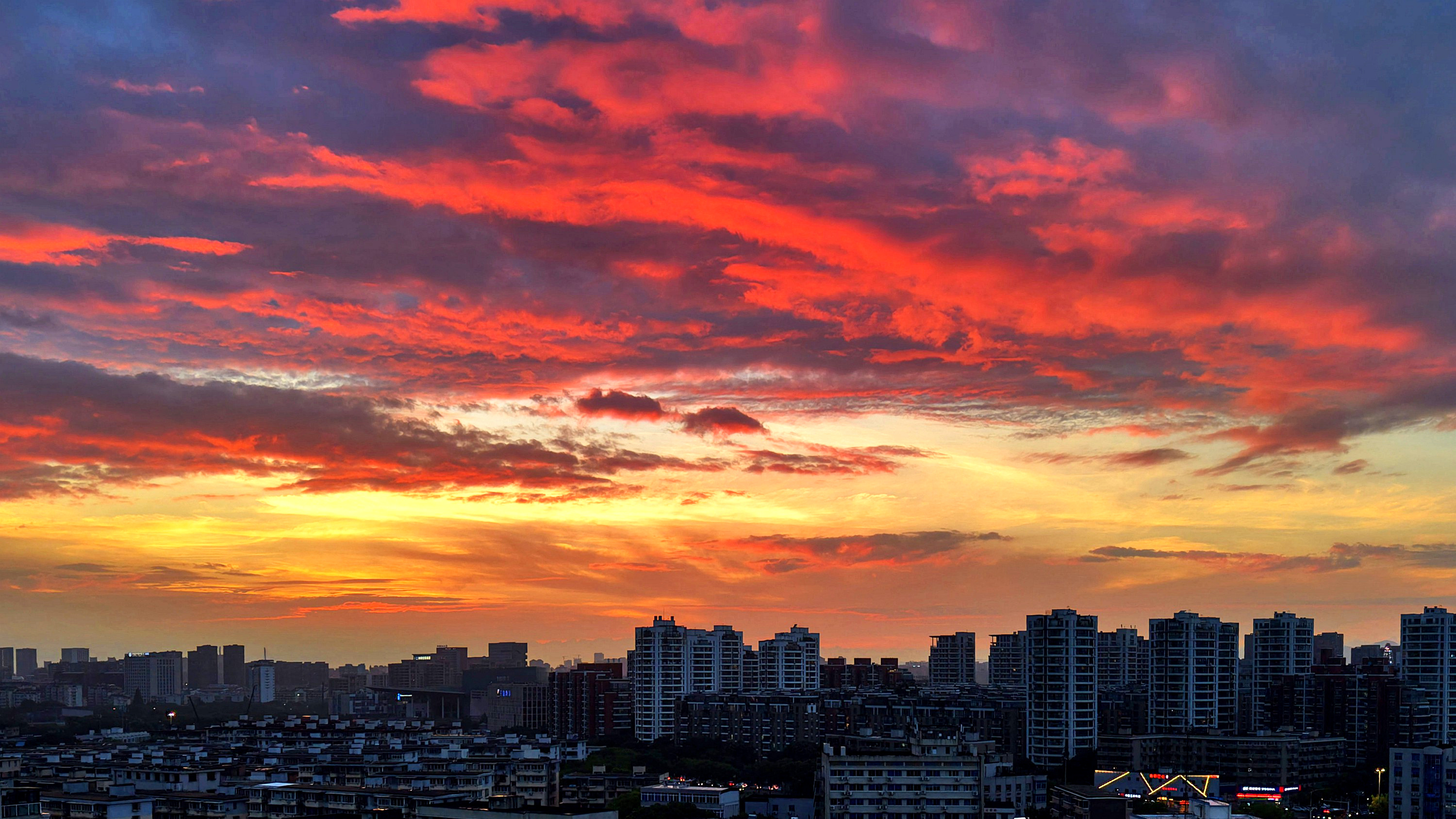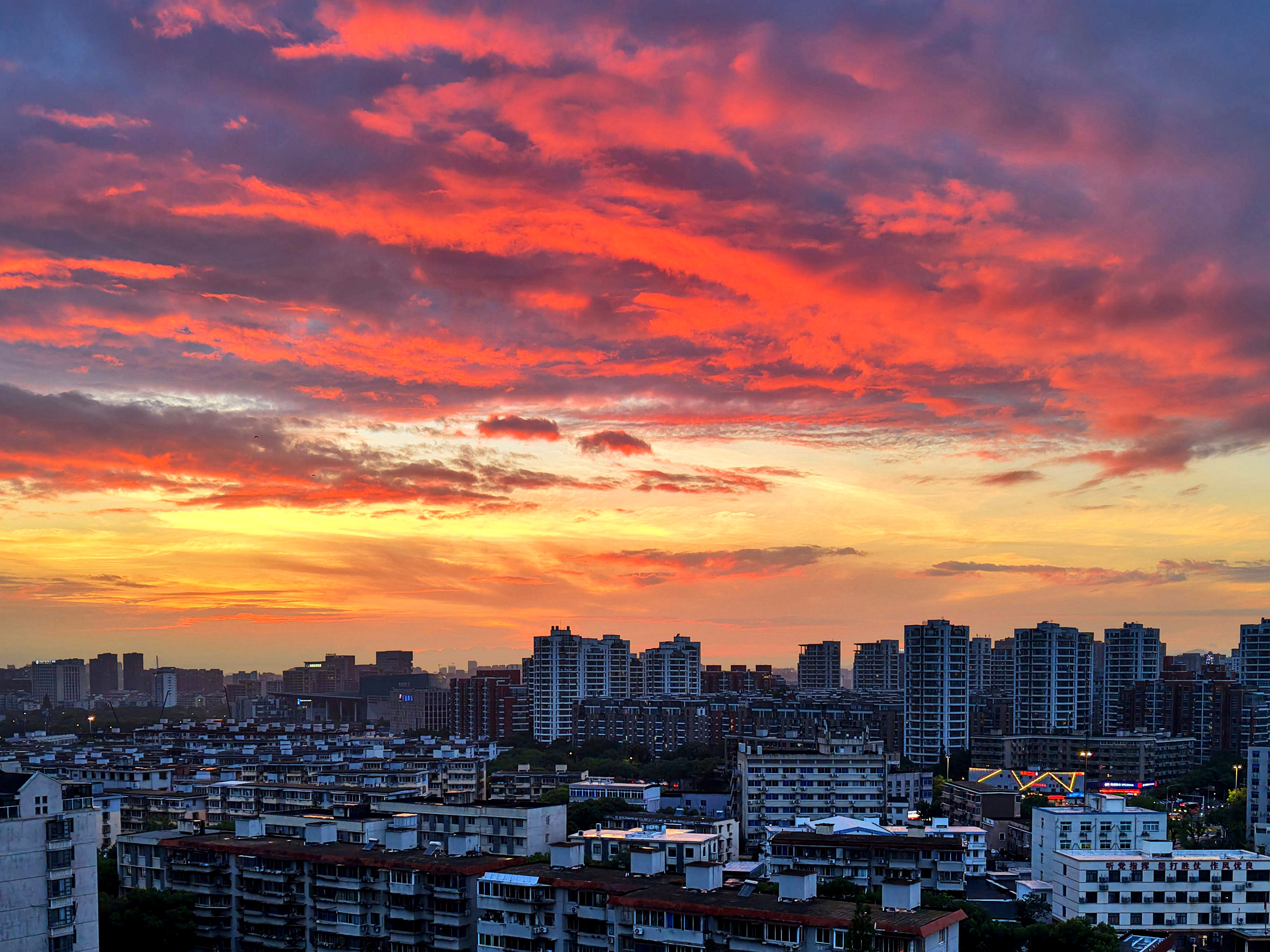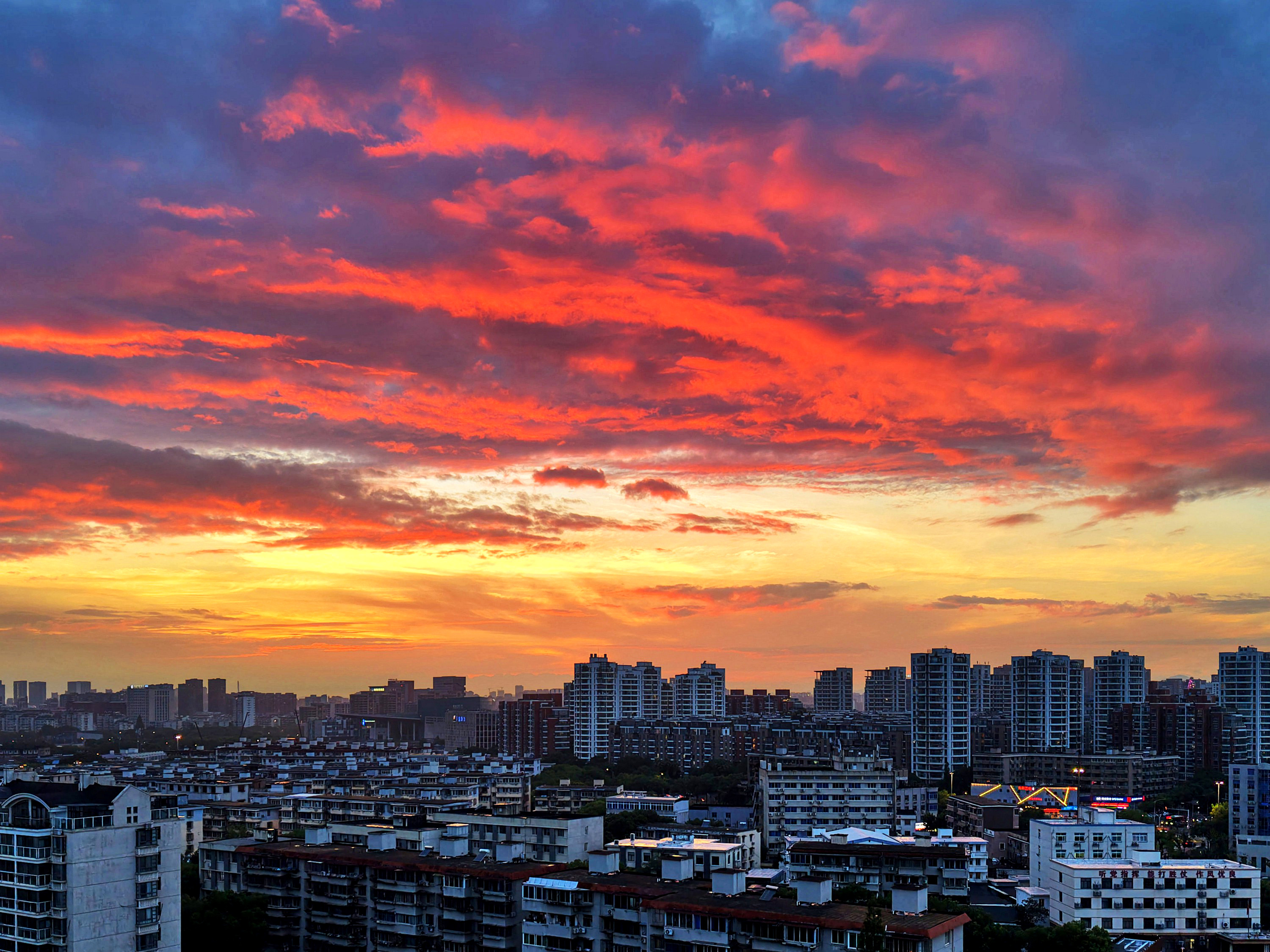 《雨后火烧云》昨天,几乎下了一天的雨,且还不小。没想到夕阳落去时分,天空竟然燃起火烧云,美了!
