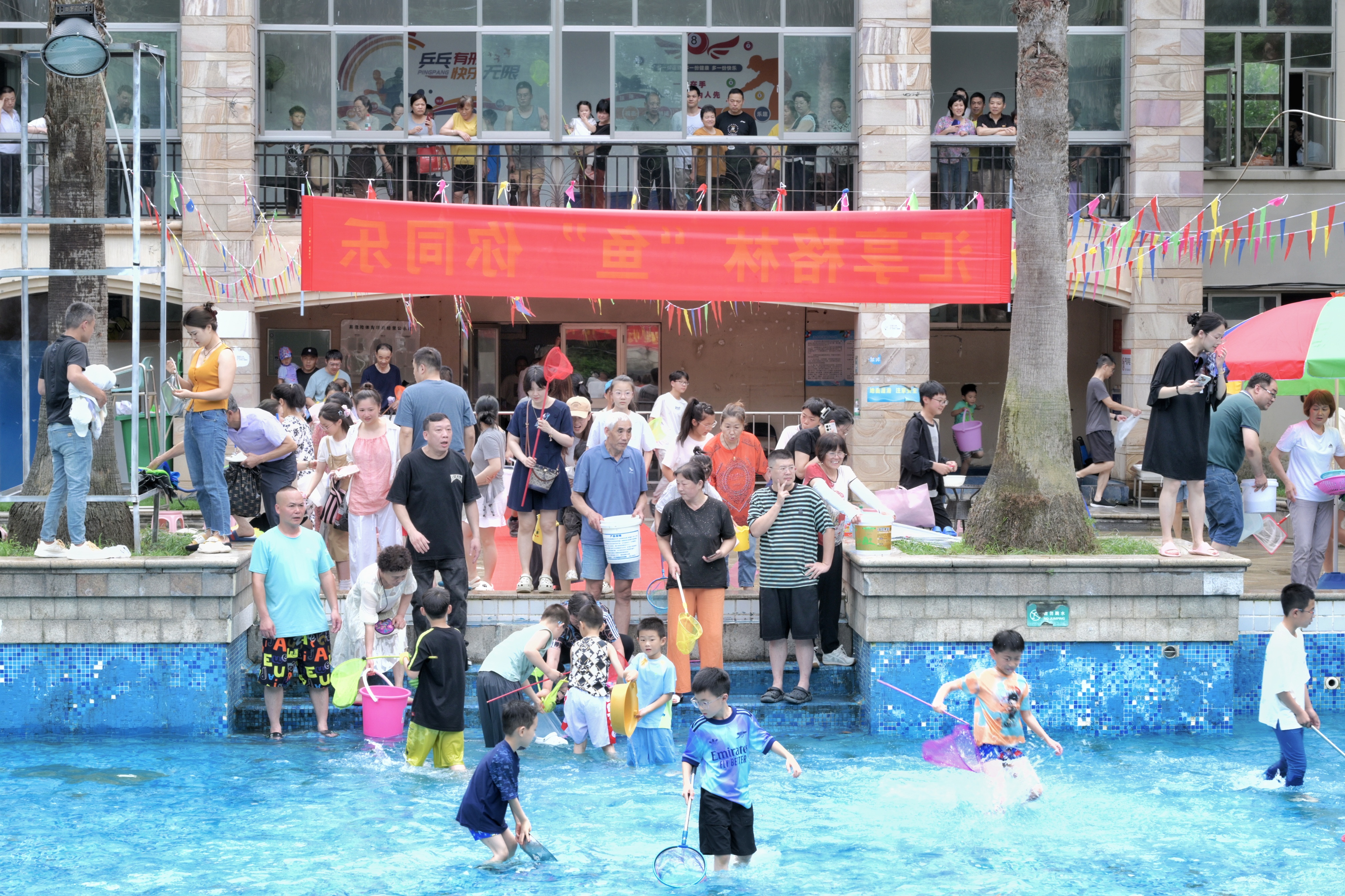 嘉兴南湖:汇享格林,“鱼”你同乐。近日,一场充满欢乐与活力的“汇享格林,‘鱼’你同乐”活动在嘉兴市南湖区东栅街道格林社区火热登场。本次活动由格林社区主办,康桥花园业委会、泳鑫游泳池以及康桥花园服务中心联合承办,吸引了近200名社区孩子们的热情参与。 活动当天,5至15周岁的孩子们在家长的陪伴下,分两批踏入泳鑫游泳池,开启了一场别开生面的捉鱼之旅。孩子们在水中尽情嬉戏,追逐着一条条灵动的鲫鱼,欢声笑语回荡在泳池上空。家长们在泳池岸上指导孩子捉鱼技巧,或记录下这欢乐的瞬间,现场气氛热烈而温馨。 此次“汇享格林,‘鱼’你同乐”活动不仅为孩子们提供了一个亲近自然、锻炼身体的机会,更进一步丰富了社区居民的文化生活,增强了邻里之间的交流与互动。在短短一刻钟的便民生活圈内,大家共享了这份亲子欢乐与美好,共同书写了社区和谐、幸福的新篇章。
