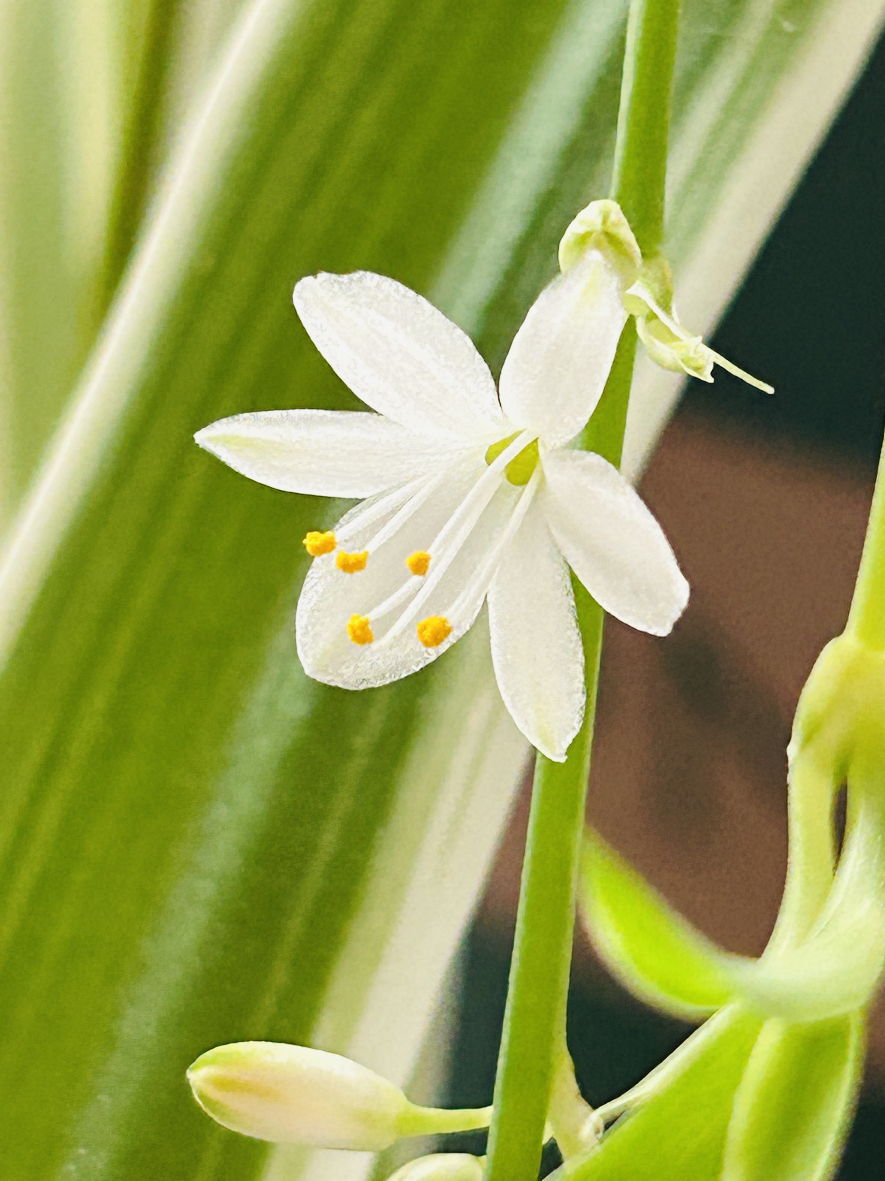我养的吊兰开花了,相当秀气,小家碧玉般的美丽。