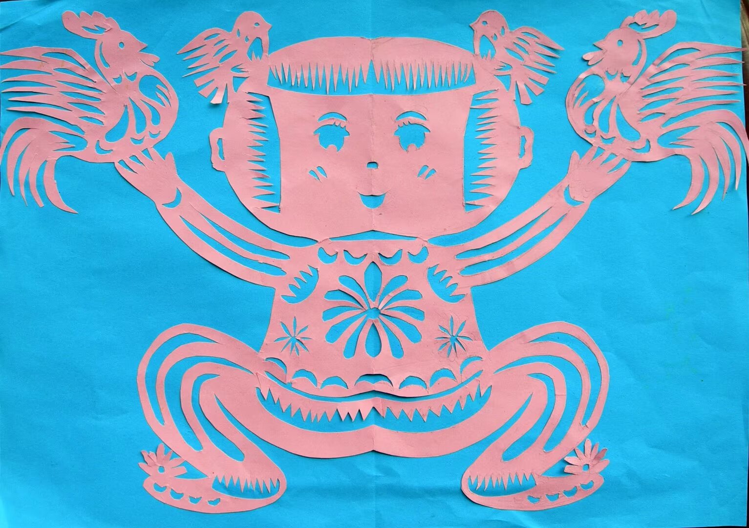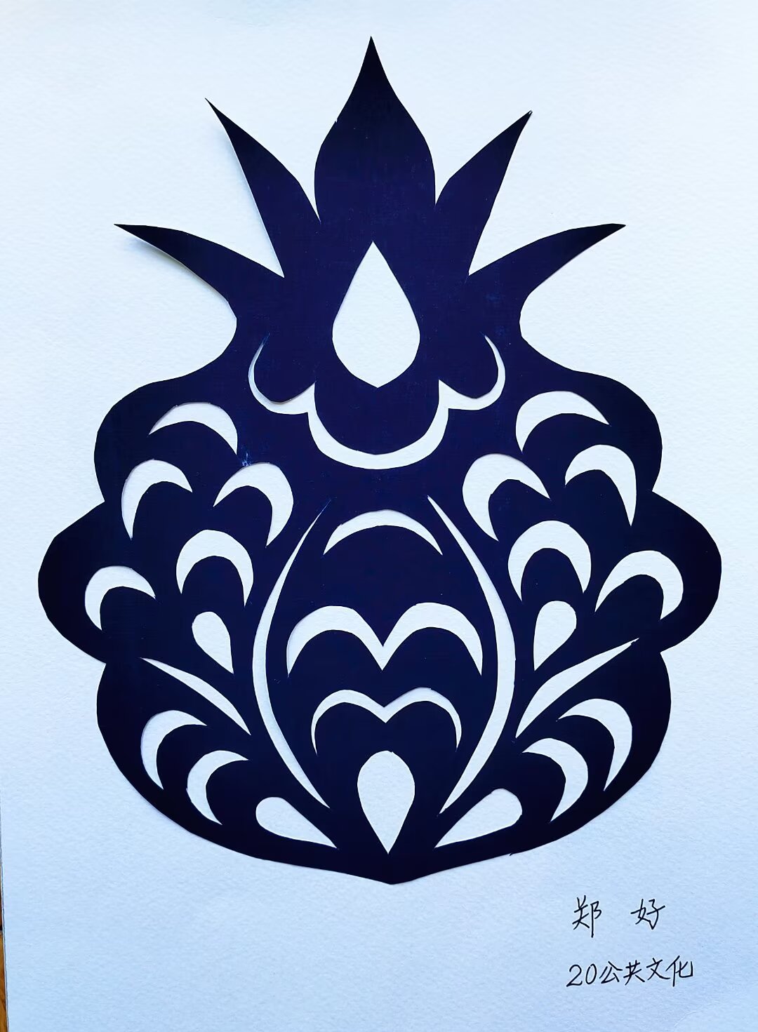 剪纸大概是许多人从小学甚至幼儿园美术课开始就接触到的手工~今天下面的这些作品,乍一看也像剪纸,但其实除了一张小学时候的作品,其余都是刻纸~ 美术基础课程学完后,除了木刻版画,还开始有了民间传统工艺这门课,刻纸就是其中一种技艺~刻纸和剪纸相比,能够制作出更精致细腻的图案,比如老师就让我们临摹过乐清细纹刻纸~刻纸和木刻版画一样,都需要用到刀,当然,两种刀形制是不一样的~ 一旦用刀,不管什么刀,就存在一定危险性~和木刻版画比起来,刻纸刀我使用起来更加不熟练,十分生疏,木刻版画起码我初中还接触过,刻纸却是我大学第一次接触,以前剪纸我倒是经常剪,也剪得非常娴熟,可是剪刀✂️和刻刀用起来那差别可太大了~不太会使用的时候,只好求助爸爸,爸爸教我怎么用刀,给我示范,帮我修改作品~ 除了最简单的单色刻纸、拼贴刻纸以及单个图案纹样刻制,后面还有套色刻纸、染色刻纸,比较特殊的是那两幅看上去黑乎乎的作品,那是烟熏出来的,把刻制好的作品放在更大的纸上,这样作品遮住的部分是白色的,作品露出的缝隙和周边则会被烟熏黑~有烟就会有火🔥,控制烟势也是门学问,太大会把应该留白的部分也熏黑,太小自然会让应该熏黑的地方也还有白的~当然,要是操作得更糟糕,可能还会把手也给烫😧到了~爸爸看着又是火又是烟的,虽然不会完全越俎代庖,但是免不了搭一把手,生怕我笨手笨脚地把自己弄伤了~ 开始有很多作品老师会给我们示范图案,我们是临摹着刻纸,比如那副圆盘状的刻纸作品就是临摹库淑兰的作品~后来有些作品就是我们自己创作图案了,什么图案既美观又适合刻制,爸爸也会给出中肯的建议,比如那幅双鱼图、那幅脚踩风火轮的图~ 这里其中只有一副作品是在我大约小学五六年级完成的,就是那副粉色蓝底的抓鸡🐔(吉)娃娃🪆,这幅也不是刻纸而是剪纸~后来我学习染色刻纸时爸爸想到可以把这幅作品改造一下~其实我和爸爸在网上也搜索过不少关于抓鸡🐓(吉)娃娃的剪纸图片,最后发现还是小学的时候我自己设计的这个图案漂亮可爱☺️,后来这个抓鸡🐥(吉)娃娃也被我用到了民间传统工艺第一学期的期末作业上了~ 从剪纸到刻纸,从小学到大学,我和爸爸一起学习共同完成一件作品一件事情的美好时光还在继续,有一首歌唱着“听妈妈的话”,我也会听爸爸的话,好好孝敬爸爸,希望爸爸保重身体,每天开心幸福😊让这样快乐的日子可以不断延续下去……