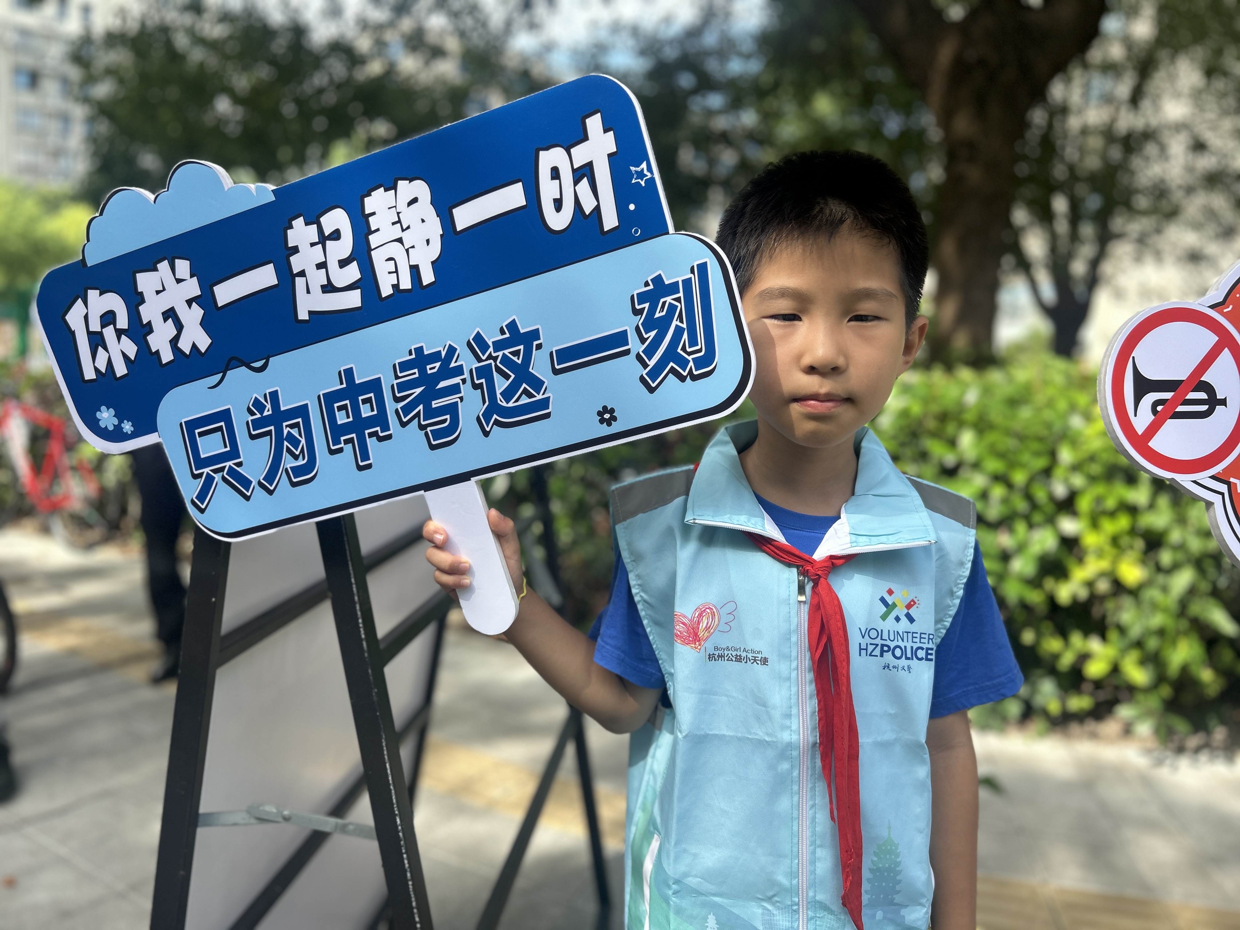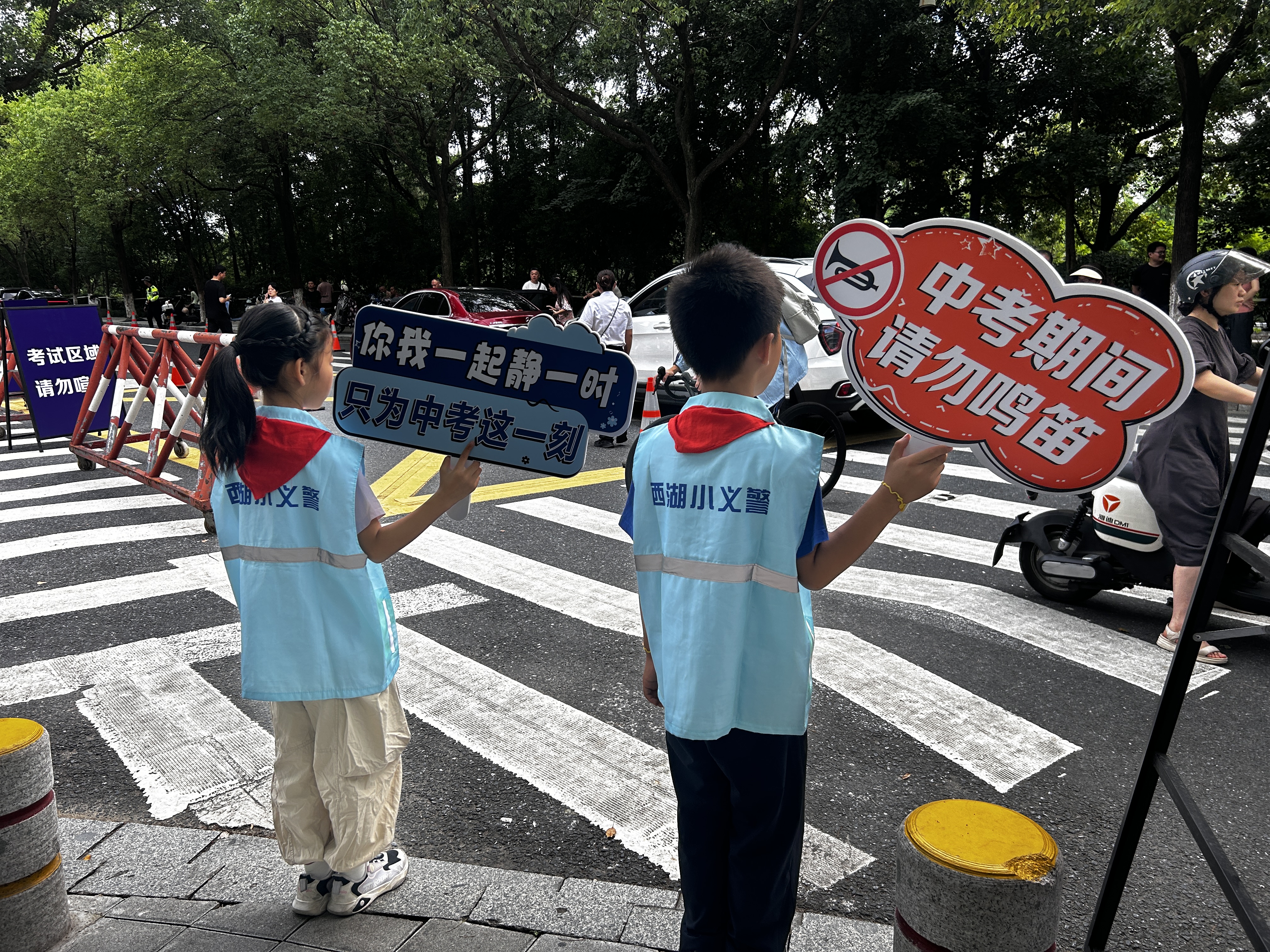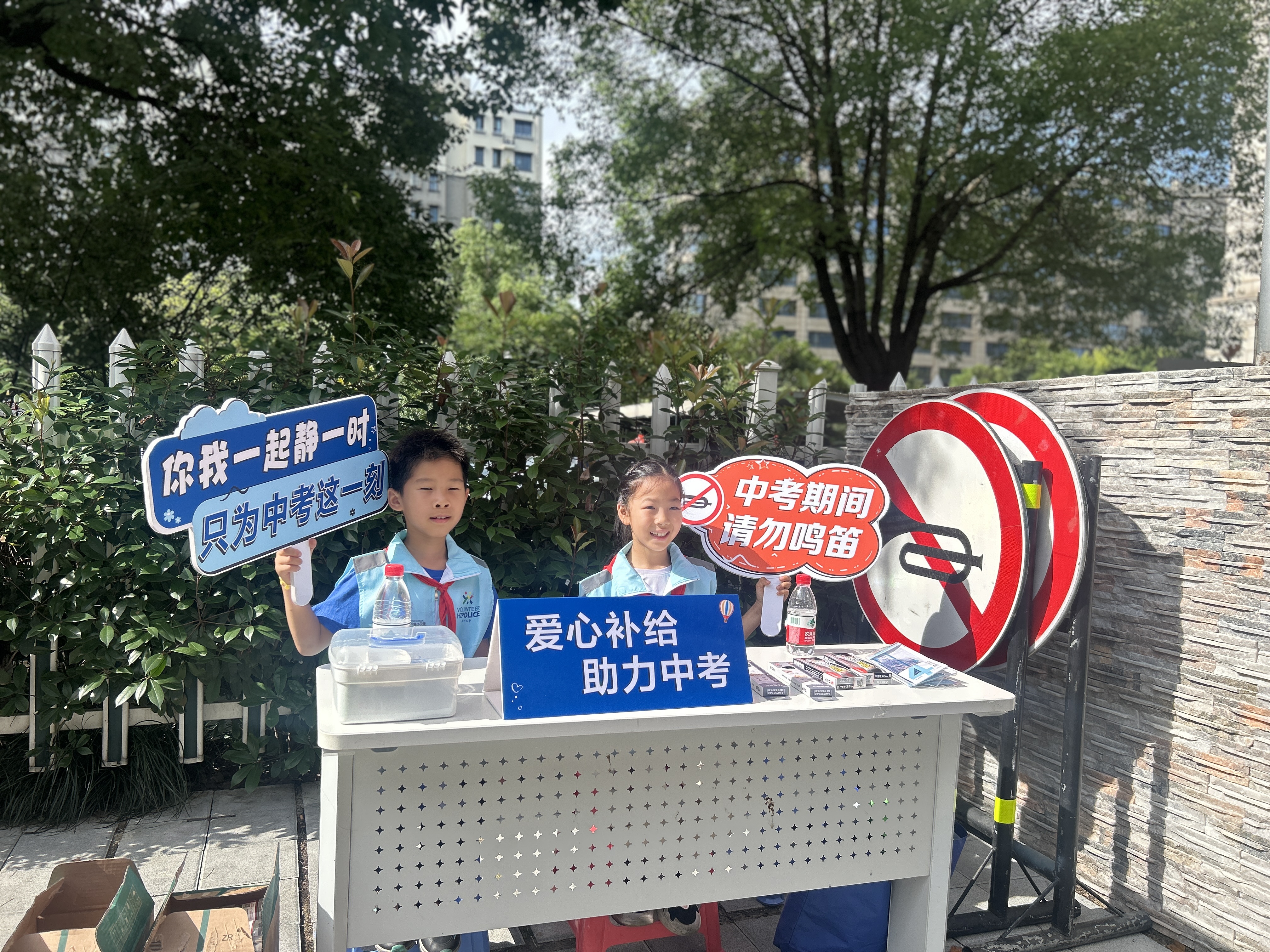 昨天真是难忘的一天!我参加了"爱心助考·为梦护航"活动,在公益中学考点和文新派出所的民警叔叔一起为中考助力。 清晨的阳光洒在校门口,我小心翼翼地举起"中考期间 请勿鸣笛"的提示牌。每当有车辆经过,我都会挺直腰板,把牌子举得高高的。看到司机叔叔们纷纷减速、安静通过,我的心里可骄傲了!虽然举着牌子胳膊有点酸,但想到能让考场里的哥哥姐姐们安心答题,我就充满了力量。 我还帮忙整理了爱心物资,把文具摆得整整齐齐。看着哥哥姐姐们自信地走进考场,我在心里默默为他们加油。祝愿哥哥姐姐们都能梦想成真!金榜题名!———杭州公益小天使 李琰