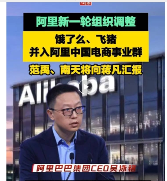 刚刚,阿里巴巴发布大消息!没有最卷,只有更卷! 阿里巴巴集团CEO吴泳铭6月23日发布全员邮件宣布,即日起,饿了么、飞猪加入阿里中国电商事业群。范禹继续担任饿了么董事长兼CEO,向蒋凡汇报。南天继续担任飞猪CEO,向蒋凡汇报。饿了么、飞猪继续保持公司化管理模式,业务决策执行上与中国电商事业群集中目标、统一作战。 行业人士分析称,过去两个月,淘宝闪购协同各方展现出的业务潜力,促使阿里进一步坚定了加大投入、整合资源的决心。特别是即时零售领域,淘宝闪购与饿了么将加强协同,全面打通各项资源。