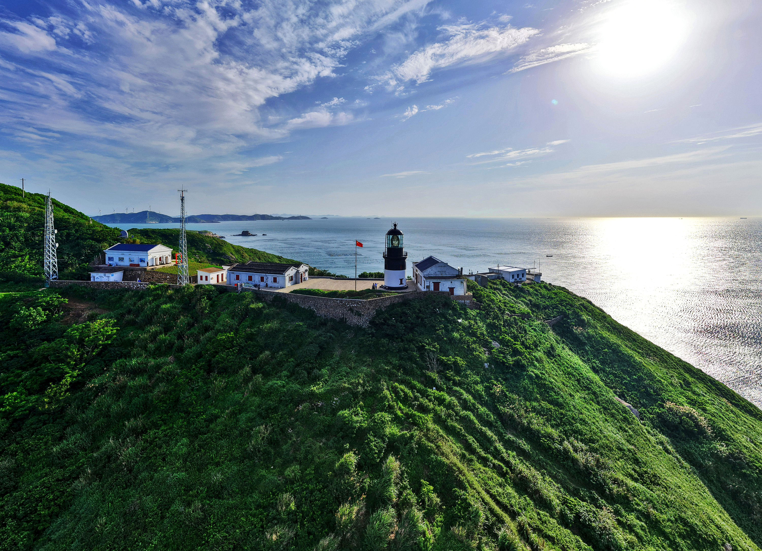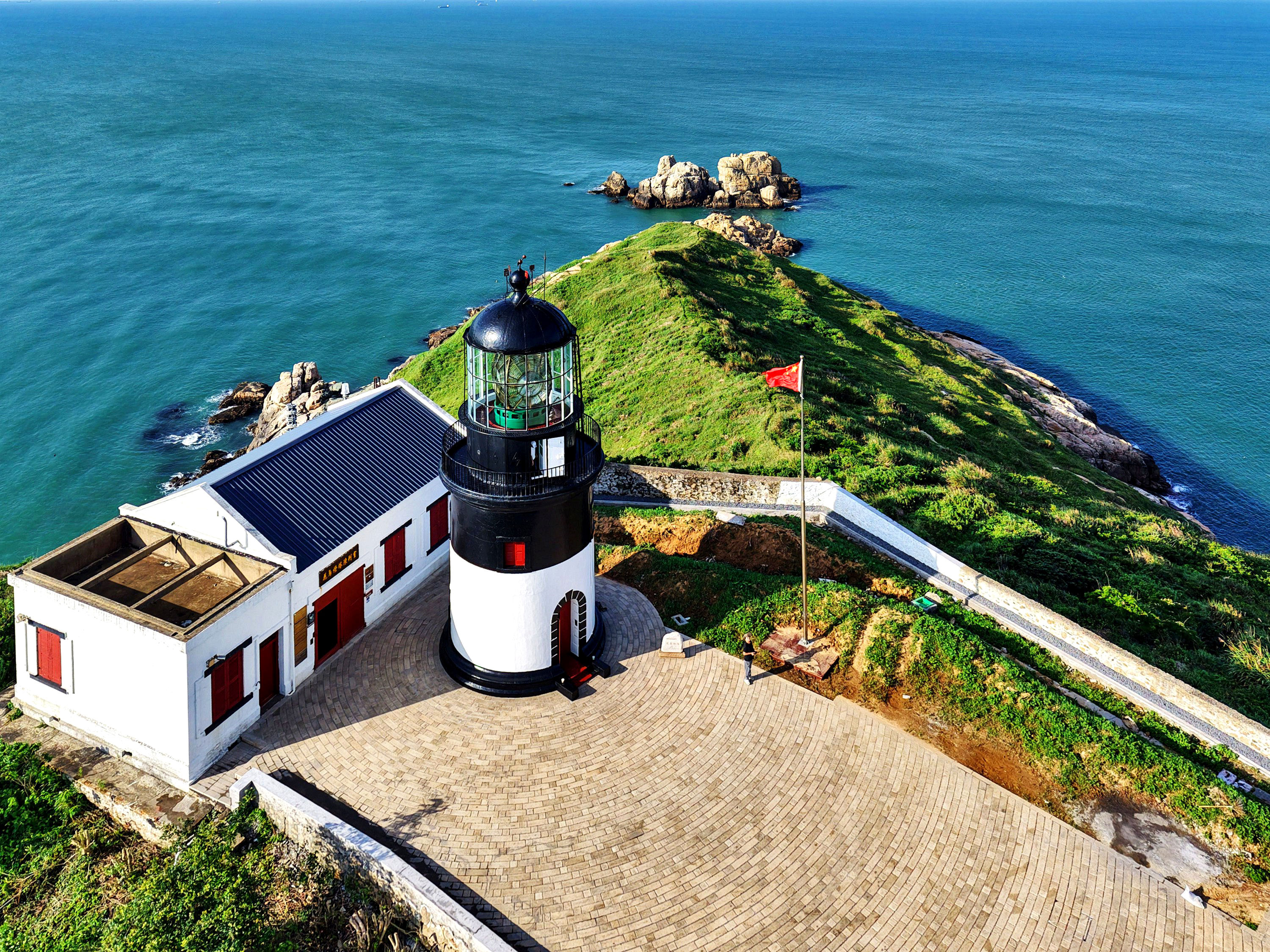 《飞阅马鞍列岛⑦ 花鸟灯塔》花鸟灯塔,位于浙江嵊泗花鸟岛,地处中国沿海航线和长江航线的交叉点,东临公海,是上海港、洋山港、宁波-舟山港等到日本、韩国以及其它国际航线上不可缺少的导航设施。 1870年,清朝海关海务科筹建花鸟灯塔,由英国人设计建造,成为长江口重要航标,被誉为“远东第一灯塔”。灯塔建成后,英国长期霸占管理权,1916年进行重修,灯光射程达24海里。 太平洋战争期间,日本于1943年接管灯塔,用于军事导航。国民政府曾派飞机轰炸,但损伤轻微。 1945年日本投降后,国民政府接管灯塔;1950年嵊泗解放,灯塔由国家交通部管辖,后历经多次技术升级,2001年被列为全国重点文物保护单位。