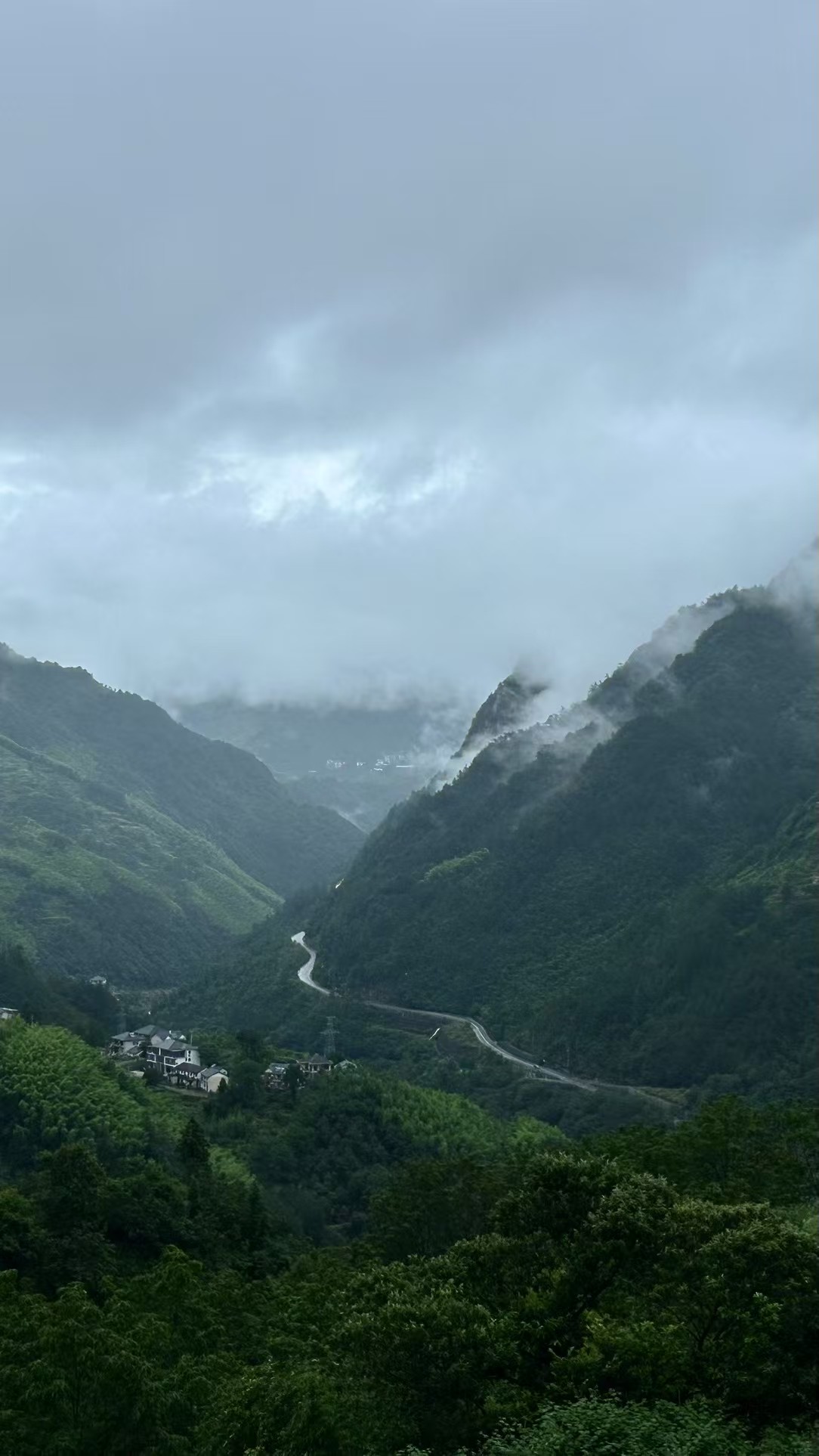 层峦叠翠雾轻笼, 溪水鸣琴韵不穷。 最是相逢佳绝处, 青山不负此村名。