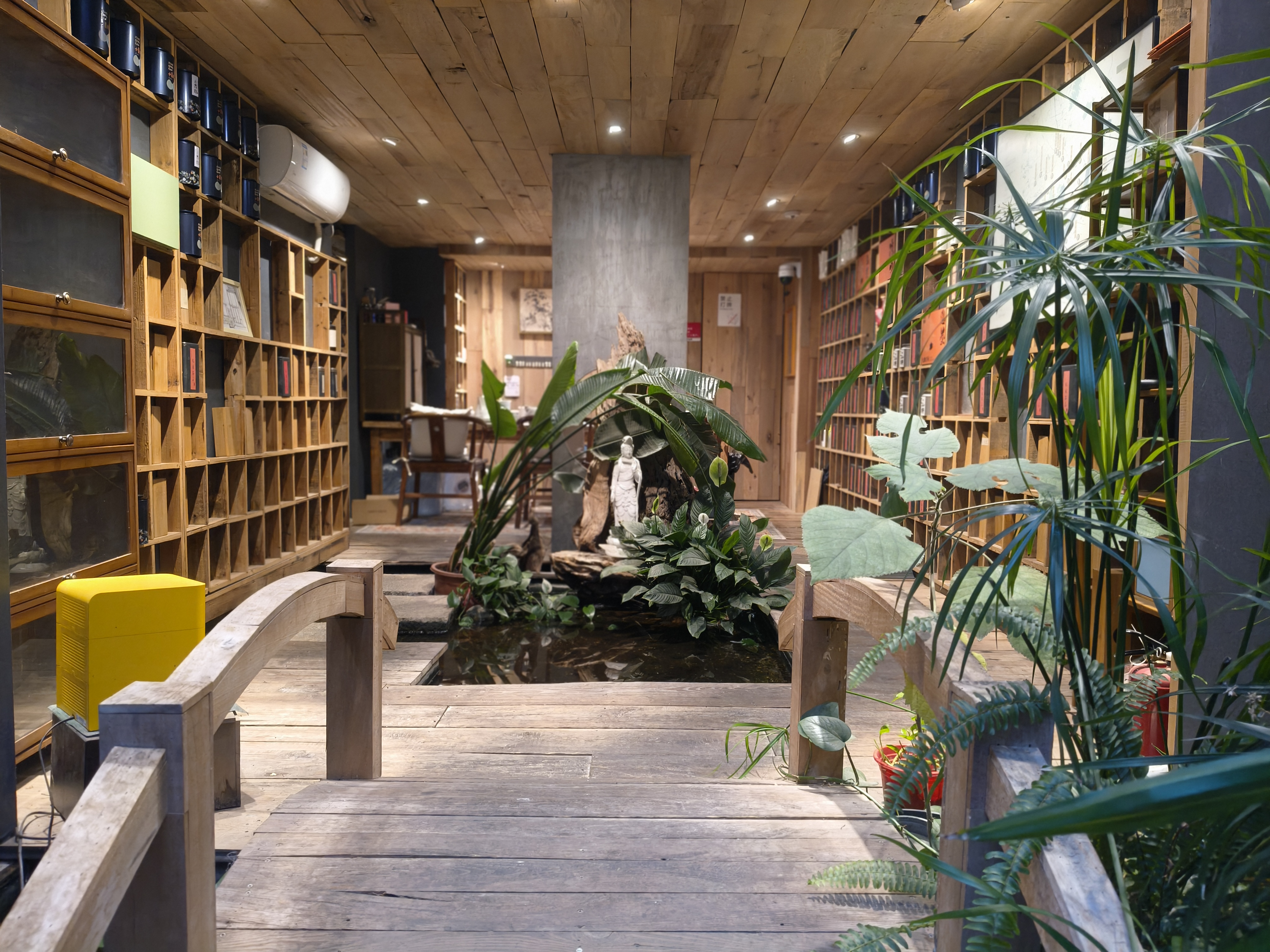 杭州遍地的邈墨茶馆, 之江路门店布置得非常精致,有种古色古香的感觉🌿✨。虽然外面看起来很现代,但里面的装潢却充满了中式元素🍃。水池和植物设计得很美观,让人感觉特别放松和舒适。是个可以静心阅读、朋友聚会,商务交流的好地方。 📚