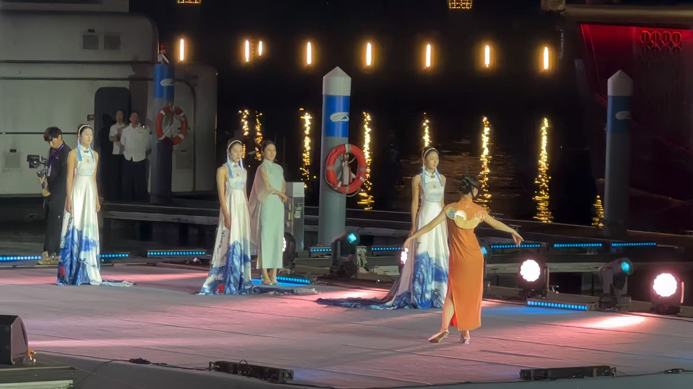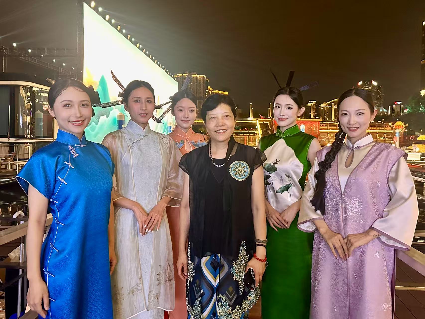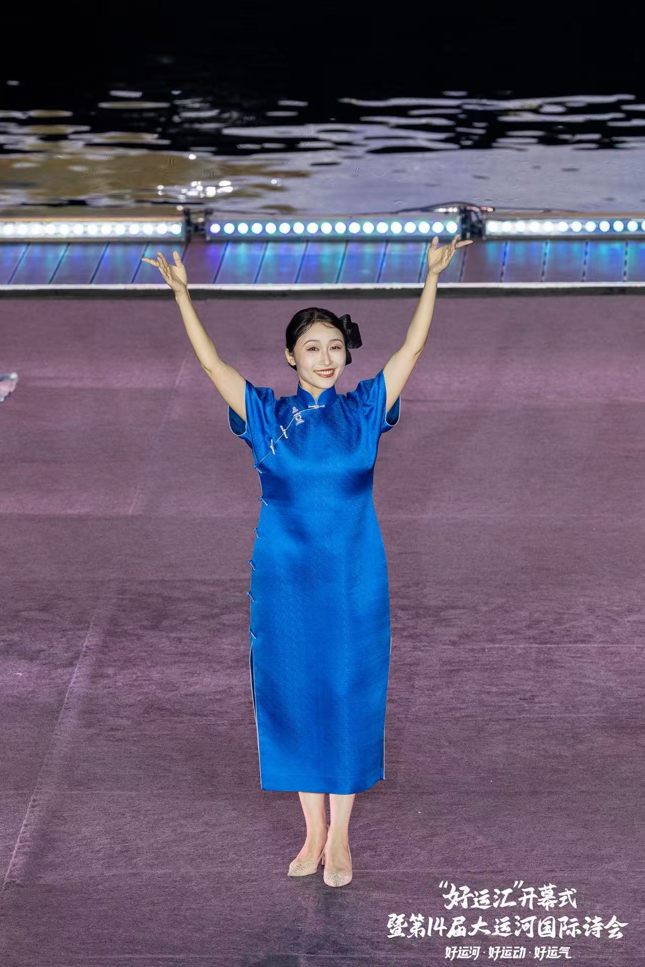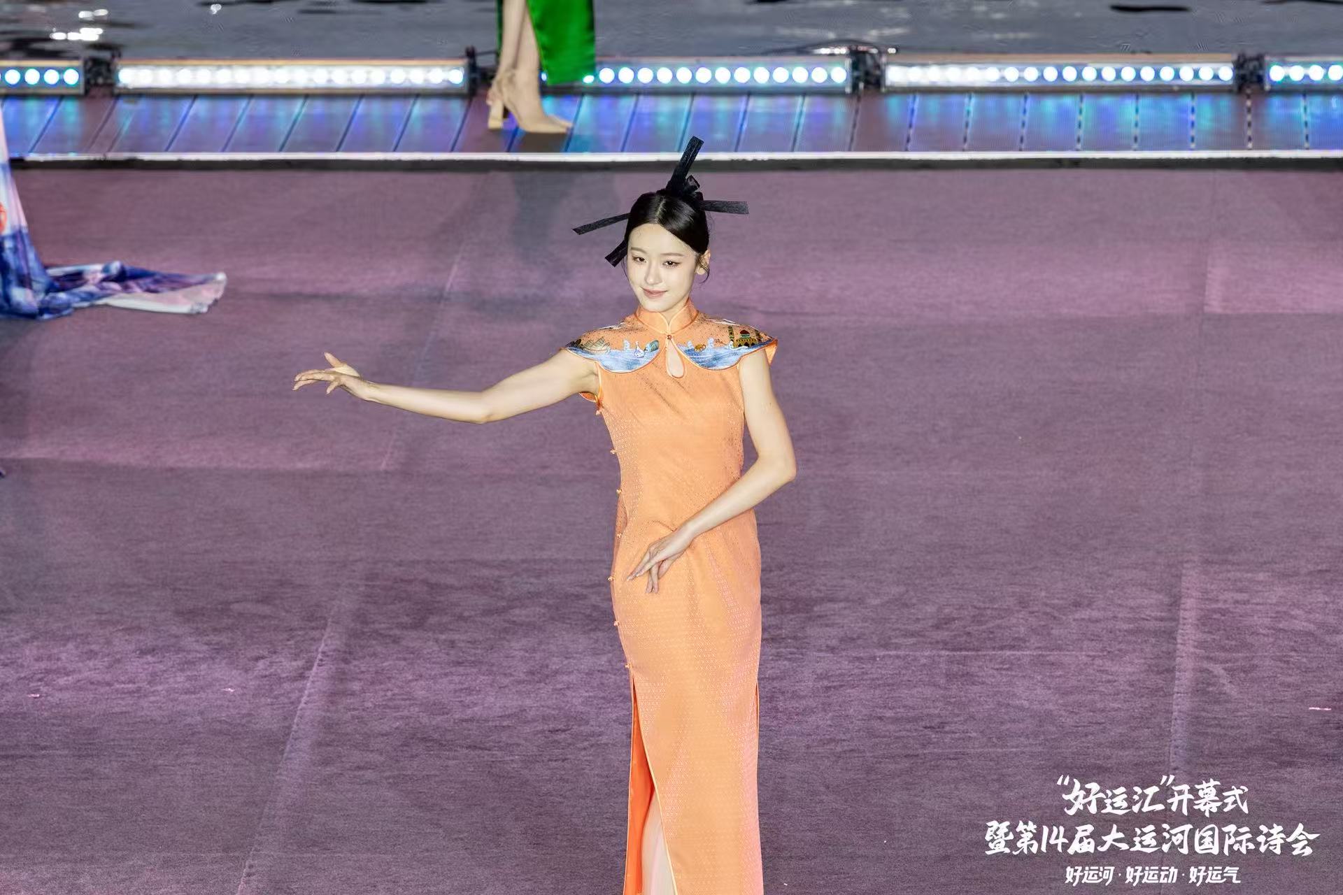西湖区西子女红文化特派员唐红英,很荣幸今天被受邀参与了杭州电视台西湖明珠频道“好运汇”开幕式暨第14届大运河国际诗会。 霓虹与烟火交织,让文商旅体展融合的世遗之城分外夺目。西子女红携“丝路新语”、“碧荷印月”、“一衣带湖”、“烟雨人家”、“古韵霓裳”五件世界文化遗产定制系列旗袍登台,为大家呈现了精彩的诗歌服装秀《舟行运河》。