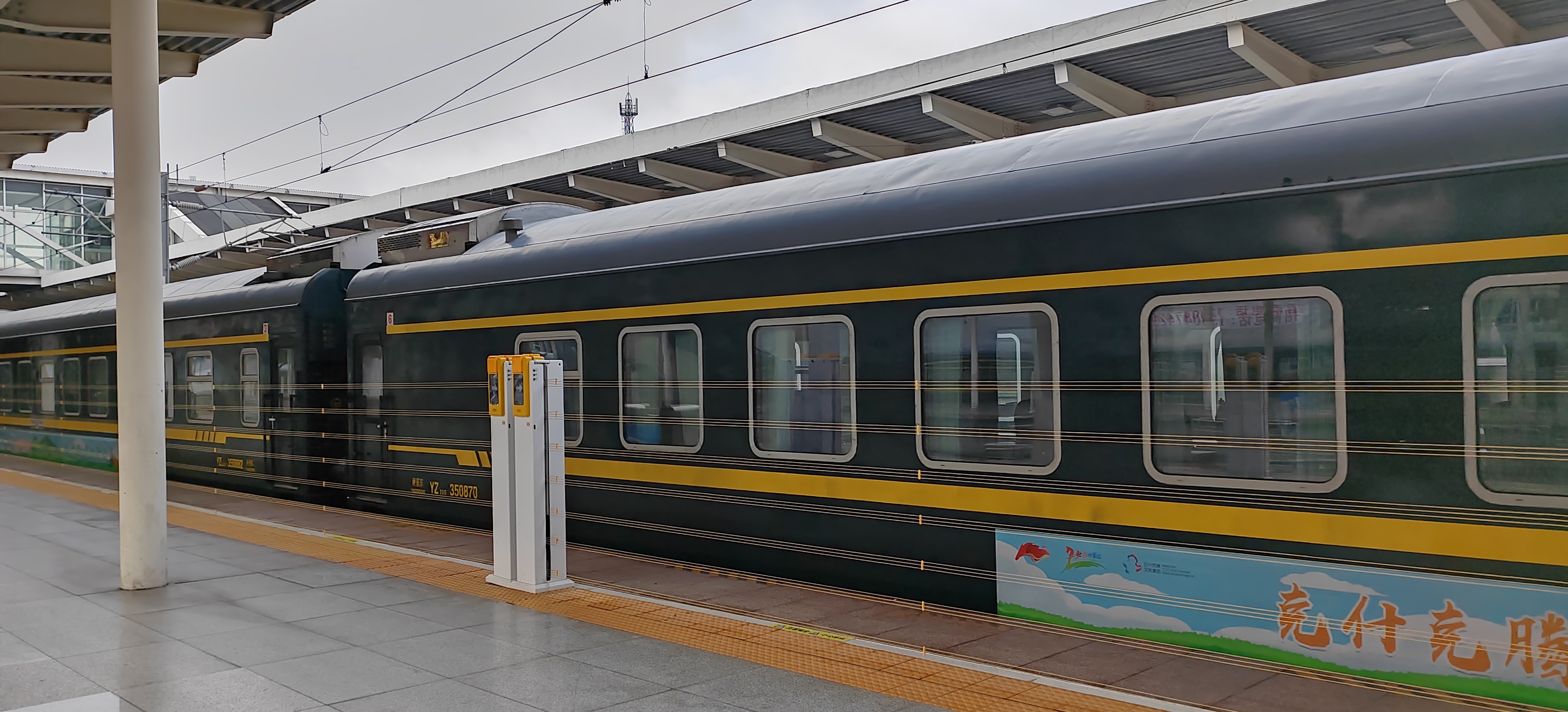 火车站,绿皮火车缓缓停靠,黄色警示线划分岁月。车窗映着广告牌光影,充什克腾的天空下,站台柱子与电线交织故事。列车车厢载满人间烟火,铁路标识指向远方,站台顶棚遮不住旅人的梦。