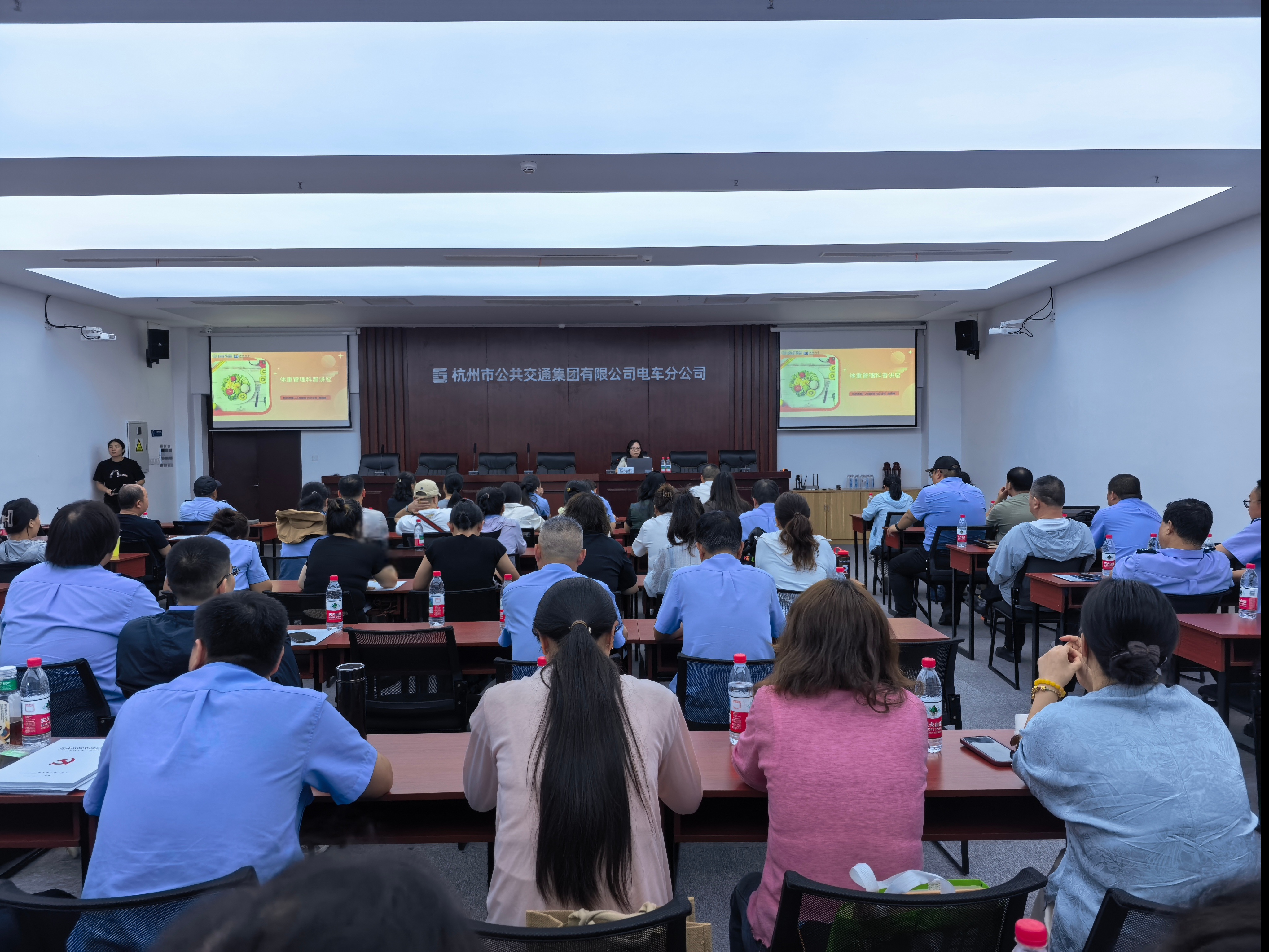 科学赋能体重管理,温情守护职工健康 7月2日下午,杭州公交集团在电车分公司三墩停车场开展了一场别开生面的 “科学管理体重 共筑健康生活” 知识讲座和健康咨询活动,积极响应 “体重管理年” 号召,为职工们的健康生活助力。 活动现场,杭州市第一人民医院内分泌科施楠婧医生以 “肥胖的破局之道 —— 从根源解码到科学干预” 为主题,深入剖析了肥胖产生的内在原因。从激素失衡到代谢异常,施医生用通俗易懂的语言为职工们揭开肥胖的神秘面纱,让大家深刻认识到体重管理的重要性。在讲解过程中,施医生详细介绍了科学有效的干预方法,包括科学饮食、合理作息以及高效运动等方面的知识,通过中国居民平衡膳食宝塔示意图,简单介绍了人体所需营养成分及数量,并指导职工们使用体重指数公式计算自己适合的体重区间,帮助大家制定适合自身的减重计划。 讲座结束后,现场还设置了健康咨询环节。职工们积极踊跃地咨询自己在体重管理方面遇到的问题,施医生耐心解答,并给出针对性的建议。此外,现场还为职工们提供了一些辅助体重管理的小妙招,如中药茶饮、针灸埋线等,将科学力量融入到日常的体重管理中。 此次活动得到了杭州公交集团职工们的热烈响应,大家纷纷表示受益匪浅。通过这次讲座和咨询活动,职工们不仅对体重管理有了更深入的了解,也掌握了科学的方法,有助于在今后的生活中更好地管理自己的体重,共筑健康生活。