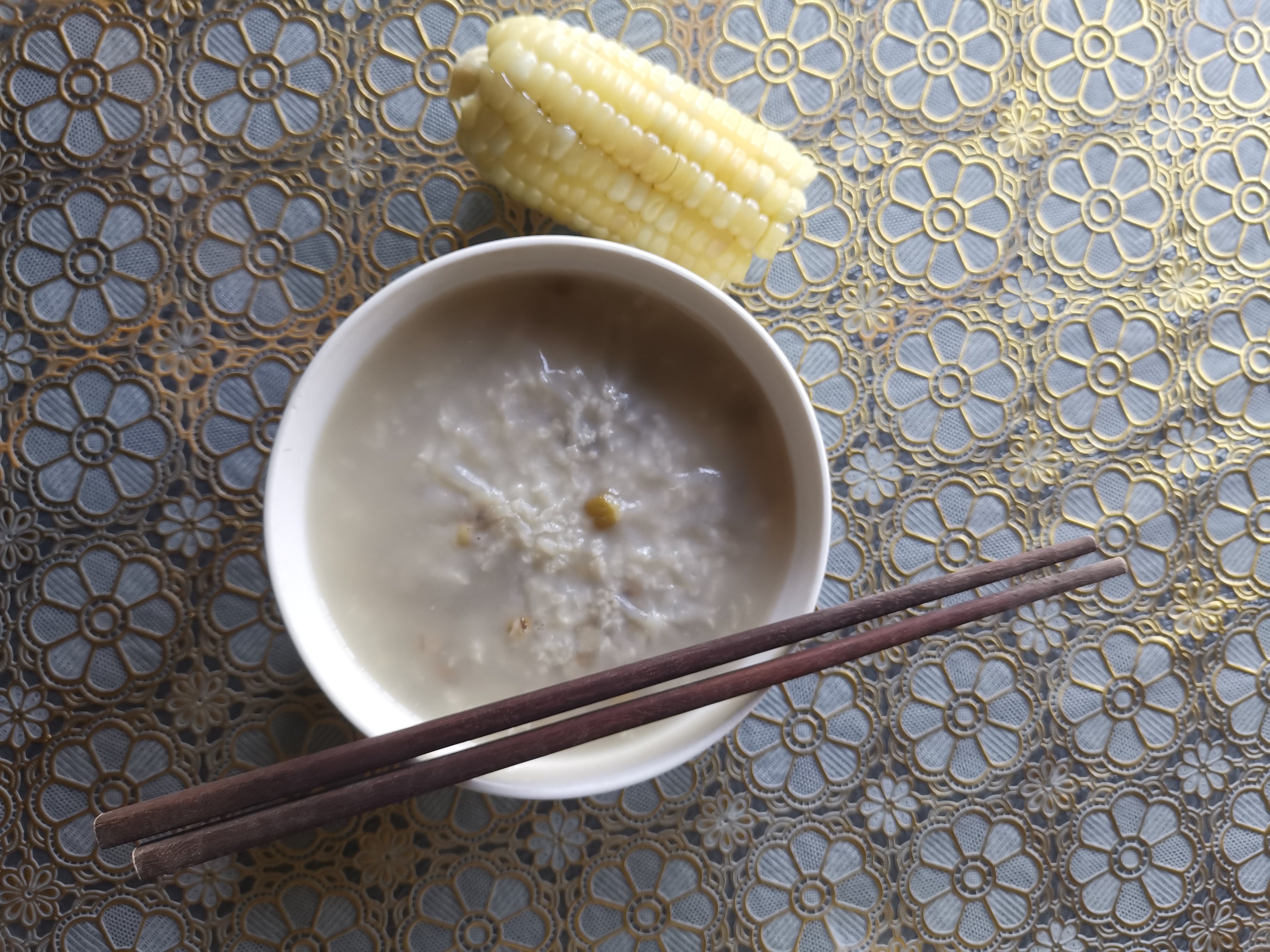 浙北人民的午餐:凉透心的绿豆稀饭、半段粘玉米、两只清清爽爽的蔬菜,那叫一个简单凉爽#记录美好夏天#
