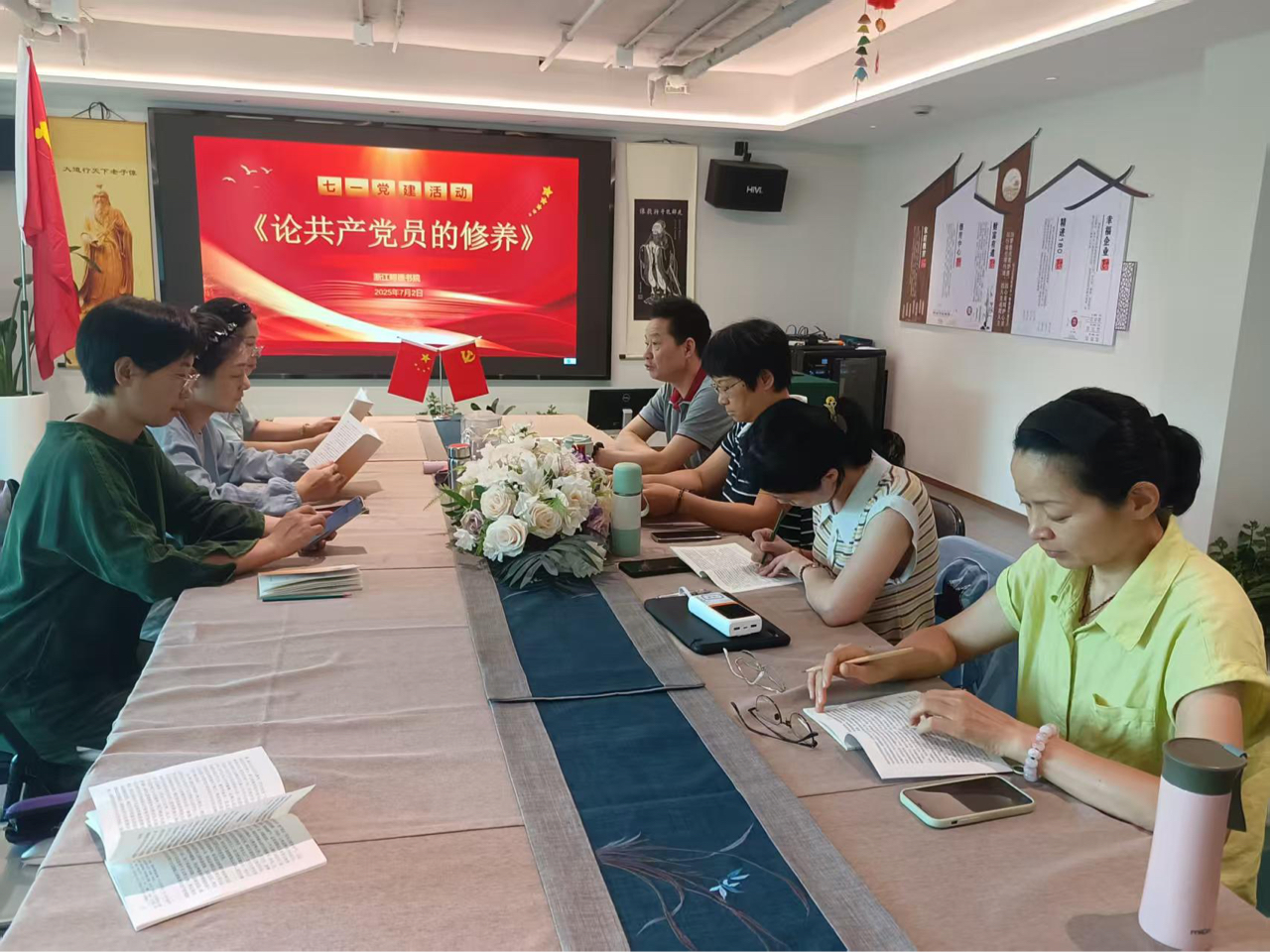 筑牢党性根基,不忘初心,践行使命担当 2025 年 7 月 2 日,为庆祝中国共产党成立 104 周年,浙江明德书院组织书院党员及职工开展了《论共产党员的修养》学习活动。此次活动旨在引导全体人员深入领会共产党员修养的深刻内涵,增强党性修养,传承红色基因,以更加饱满的热情和坚定的信念投身于书院工作与党的事业发展中。 《论共产党员的修养》是从党性的高度,教育共产党员必须牢固地树立共产主义世界观,用以指导自己的行动,并从理论和实践的结合上,阐明了共产党员加强党性锻炼和修养的目的、方法和基本要求,是共产党员在思想上入党的必由之路。在学习过程中,大家认真研读原著,深刻感悟着老一辈革命家对共产党员修养的高要求和殷切期望。书中的一字一句,都仿佛是历史的回响,提醒着我们在新时代依然要坚守初心,不断提升自我。 学习结束后,党员及职工们纷纷分享了自己的学习心得。有的同志提到,通过学习深刻认识到党性修养是共产党员的终身课题,无论何时都不能放松对自己的要求;有的表示,要将书中的理论知识转化为实际行动,在日常工作中发挥党员的先锋模范作用,以更高的标准严格要求自己,用心做好每一项工作。大家你一言我一语,在交流中碰撞出思想的火花,对共产党员的修养有了更深入的理解,也更加明确了自己肩负的责任和使命。 浙江明德书院将以此次学习活动为契机,持续加强党员及职工的思想政治教育,把《论共产党员的修养》中的理念融入到书院的日常工作和发展中,激励大家以更加昂扬的斗志、更加务实的作风,为书院的发展贡献力量,为党的教育事业添砖加瓦,以实际行动庆祝中国共产党成立 104 周年,在新时代的征程中书写属于明德人的精彩篇章。