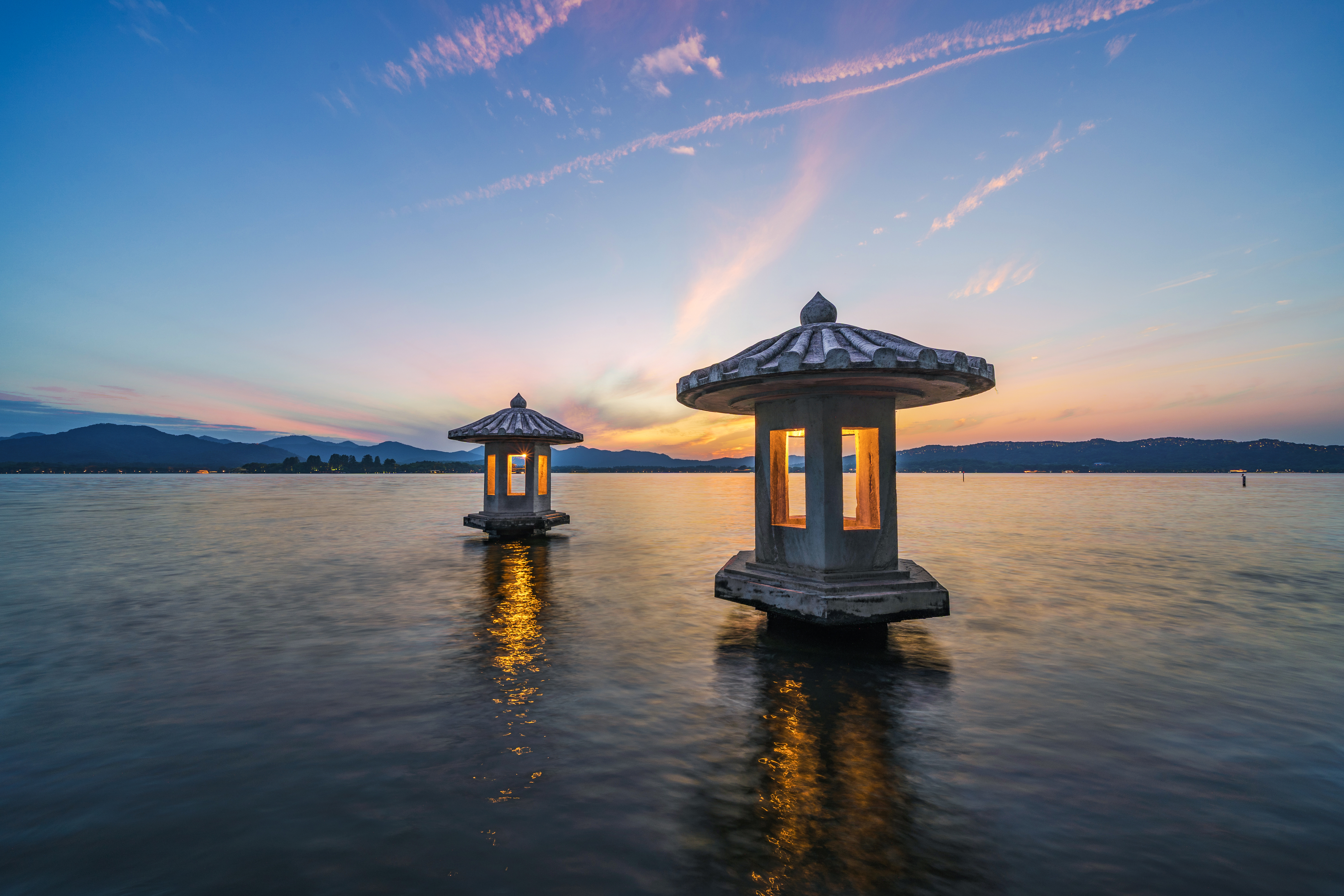 拍摄:张骏、作品名称:杭州西湖晚霞。拍摄地点:杭州翠光亭.分享杭州日落晚霞机位,杭州翠光亭.这里有2对石龛,晚霞的时候会亮灯,很有西湖韵味和文化.来杭州游玩的宝子们别忘记去看看哦!
