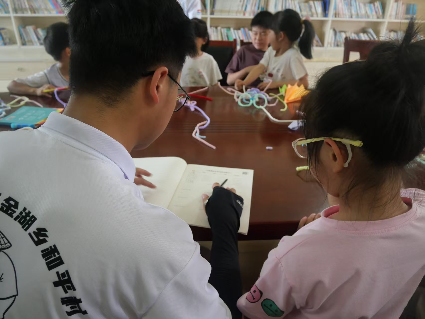 稚子案头解疑困 青春灯下授新知 7月7日,江西财经大学现代经济管理学院赴共青城市金湖乡和平村基层服务团扎根共青城市垦荒文化体验园,针对留守儿童学习短板开设"萤火课堂"。志愿者们化身"知识摆渡人",为村中10余名学童提供一对一英语作业辅导。 面对孩子们"单词难记、语法难懂"的困扰,队员创新教学方法:用英文动画片解析时态,以情景对话模拟日常交际,将枯燥习题转化为趣味闯关游戏。一位四年级的小朋友兴奋地举起作业本:"以前怕英语,现在哥哥姐姐教的'联想记忆法'让我记住了50个新单词!"辅导间隙,团队还发放自制《英语学习手账》,内含音标口诀和绘本推荐清单。 点点星火,照亮求知之路;声声细语,温暖稚嫩心田。这场跨越城乡的知识接力,不仅为孩子们打开了英语学习的新天地,更在潜移默化中播撒下自信的种子。当朗朗读书声回荡在乡村教室,当一张张笑脸绽放出对知识的渴望,我们看到的不仅是当下的改变,更是乡村振兴的美好未来。青春的力量,正在这片希望的田野上生根发芽。 图文|江西财经大学现代经济管理学院赴共青城市金湖乡和平村基层服务践行团 一审|钟智雯 二审|肖红梅 三审|程欣蕾