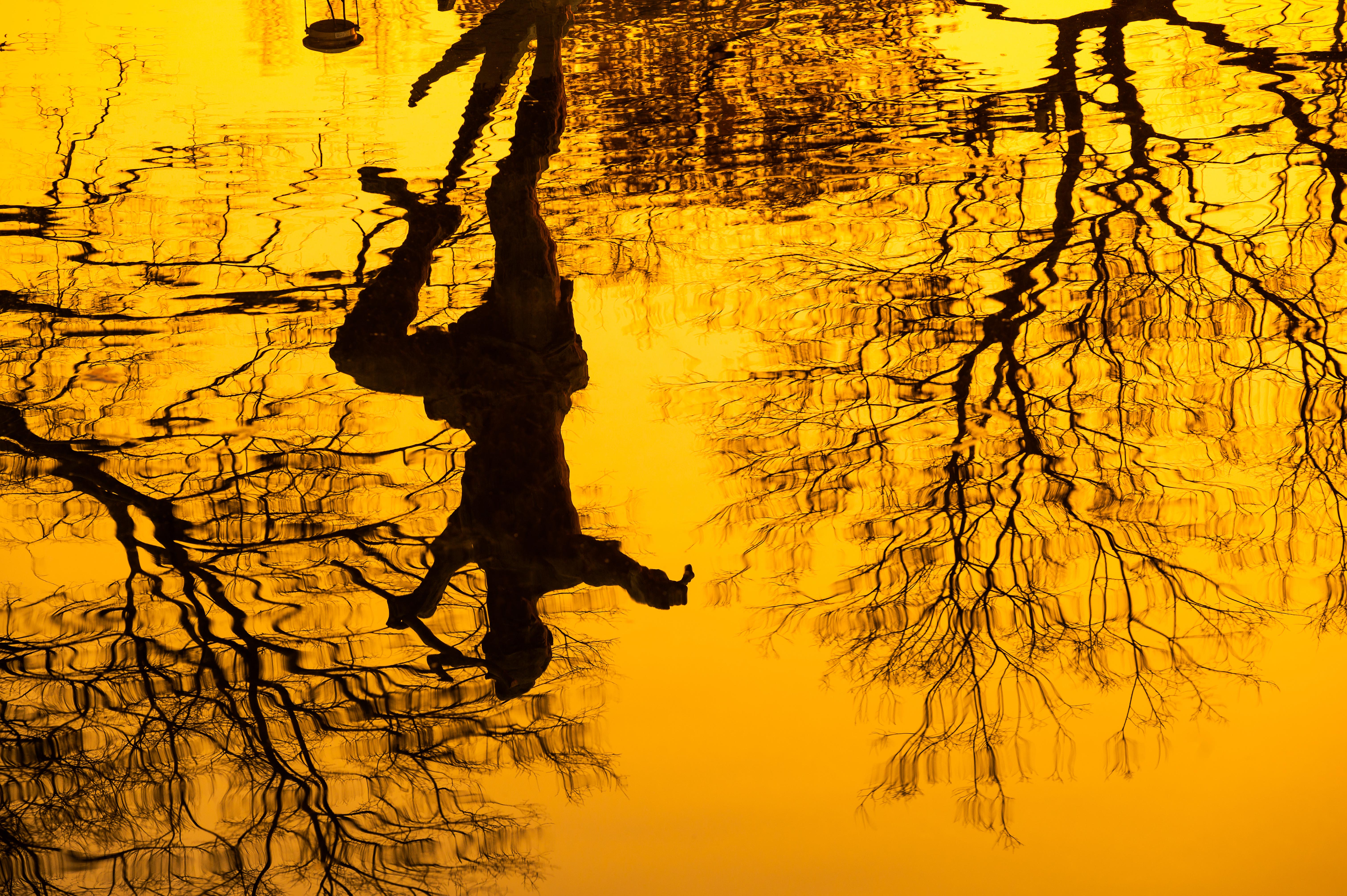 作者:俞乐 作品名称:涌金湖的好汉 拍摄地点:西湖涌金广场 落日时分,浪里白条雕像的倒影呈现在了金色的涌金湖水中