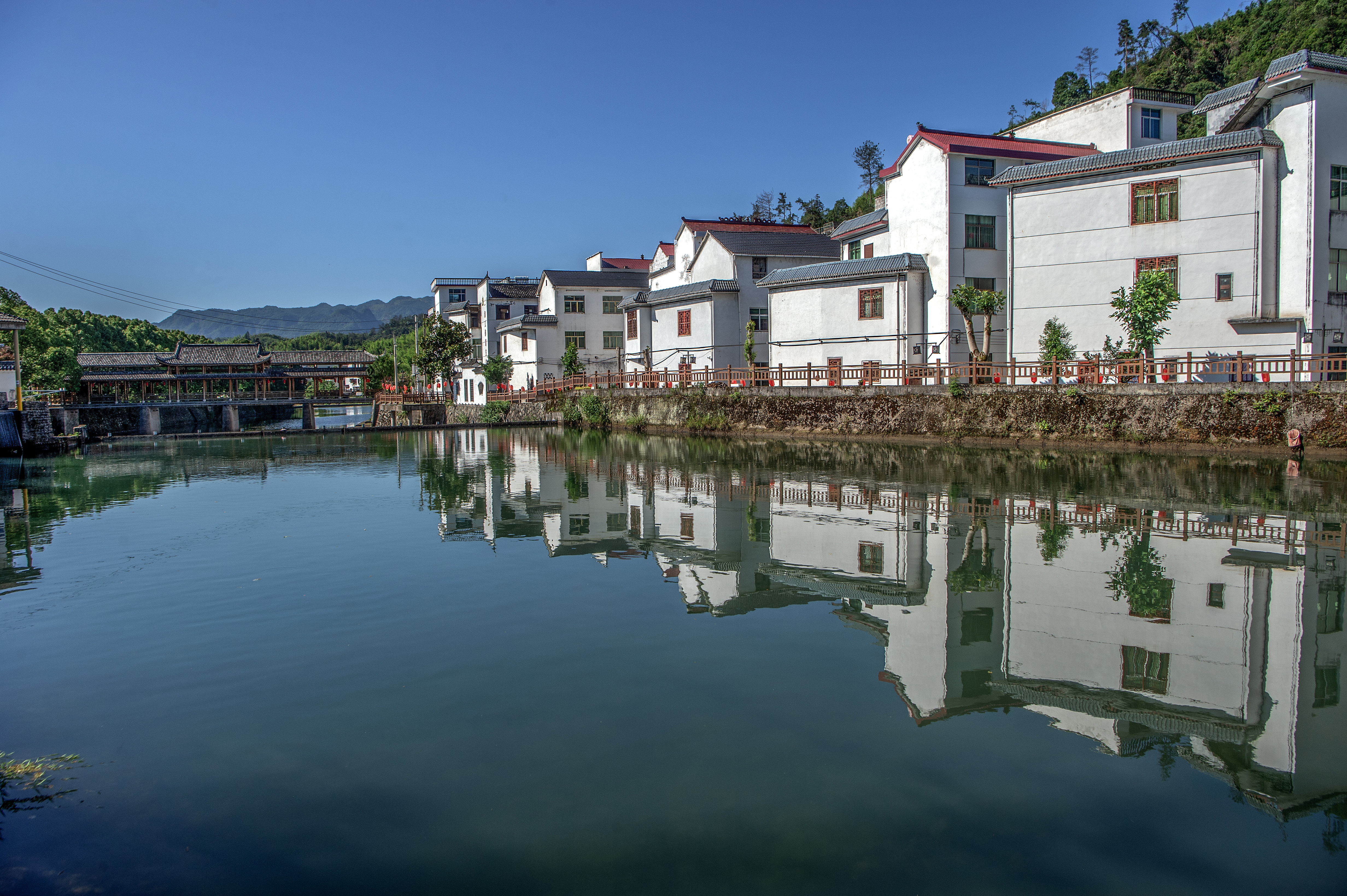 水乡之畔,白墙黛瓦映晴空。静谧水面倒影长,石桥横跨绿波上。徽派建筑诉古韵,绿树点缀乡村光。护栏轻倚观河流,宁静江南,古朴村落藏心房。