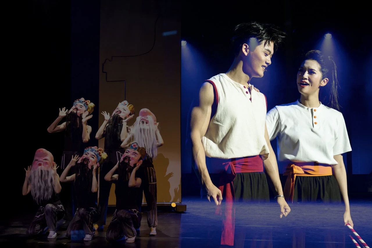 音乐剧《喜欢你》,就是英歌版的《雄狮少年》,属实是被名字耽误了。结尾的英歌舞很燃,想去潮汕浸淫民俗的愿望达到了顶峰! 剧情塞得挺满的,有追梦少年解不开的乡愁,有反抗父权的和解,有师门流派的传承纠纷,有非遗英歌的传承创新之路,有性别枷锁的打破。 阿声出身英歌世家,曾是别人羡慕的天才英歌少年,却为了追逐自己的摇滚梦,背井离乡十年,成了亲友口中籍籍无名的“傻子声崽”,成了怒其不争的异类。 当阿声在一次卑微的商演中,发现自己昔日舍弃的英歌舞,竟成了更有话语权的时代主旋律,茫然惶惑中归乡。 同门兼发小王虎则选择了坚守老家,坚守着对英歌手艺数十年如一日的热爱。他用十年的汗水,混得风生水起,让王氏英歌成了潮汕英歌的排头兵。 祠堂祭祖,为争一时意气,阿声以三月为期,代表陈氏向王虎下了挑战书。然而上头易出头难,招募队员、捡起英歌的基本功,就像不合时宜的逆行。 在爷爷的跨时空“指引”,在“小师傅”阿鼓的鼓励下,阿声决心放大招,打破偏见和规矩,创建男女混双英歌队。 既然传承的担当不分正统和旁支,那么祭奠英魂就不该将女孩们拒之门外。阿鼓和一众姐妹渴望传承英歌,渴望舞出属于女孩的英雄之歌,遂决定讲述岭南人自己的女英雄。 英歌破圈本是歪打正着的无奈之举,却成为姑娘们反抗传统的契机。不仅得到一众街坊亲友的追随,还意外成了互联网的流量密码。 英歌的心跳,藏在英灵回归的脸谱里,藏在勇猛精进的鼓缒中,藏在一招一式的恭敬中,更在每个舞者眼底不灭的热忱中。 英歌有魂,是与自我和解的“黑凤梨”,是心底共同的敬奉,更是世代相传的文化血脉。