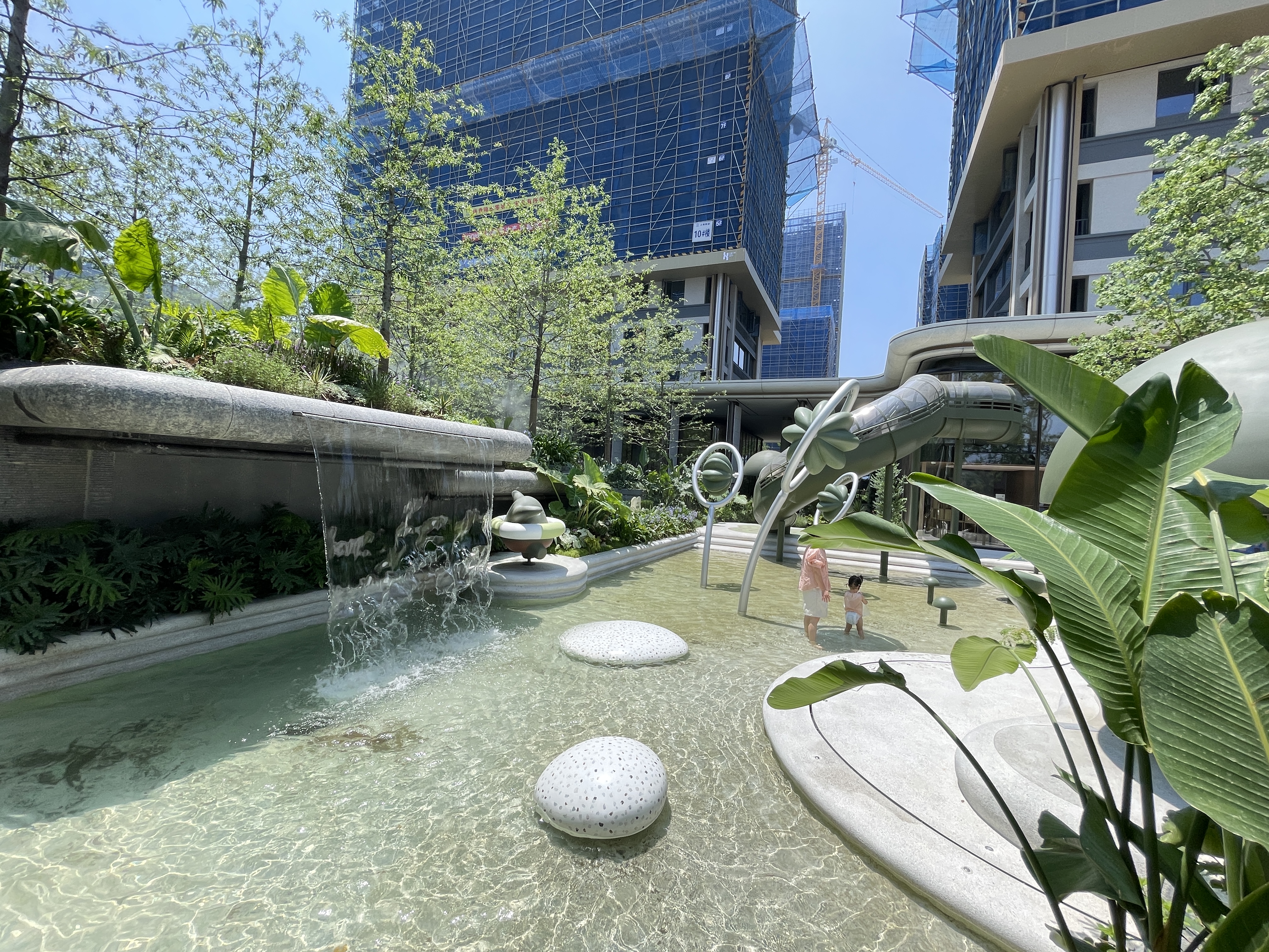 最近很喜欢的一个戏水池,来自万科云耀之城,池子不大,但互动感满满!