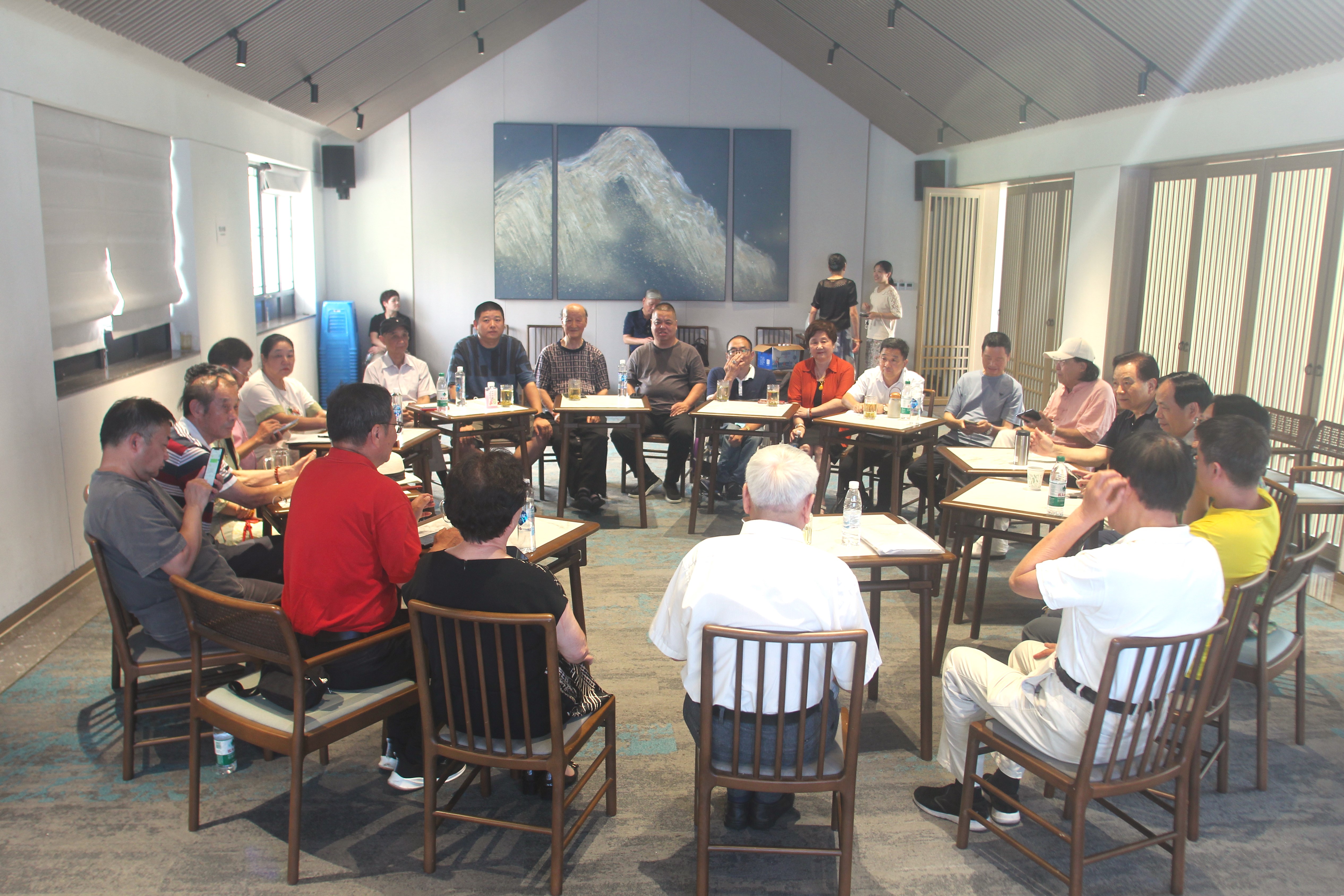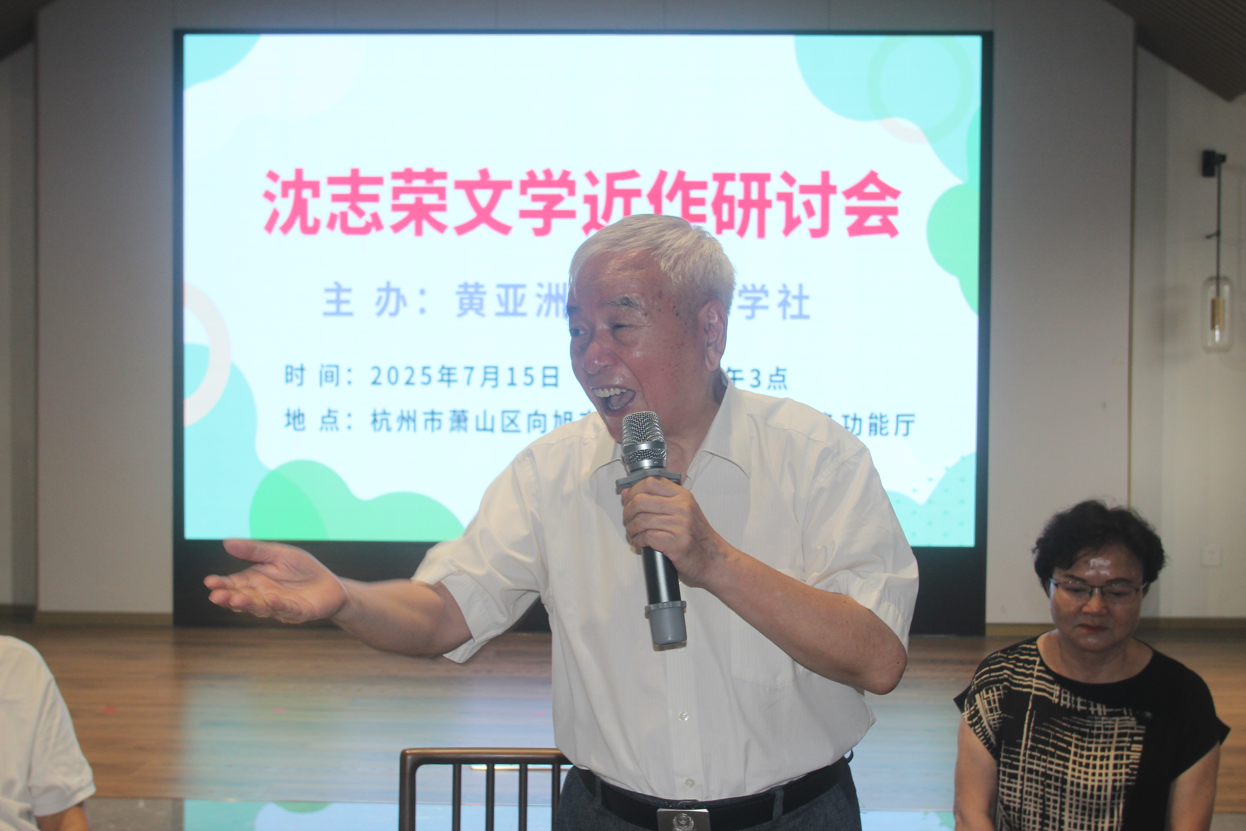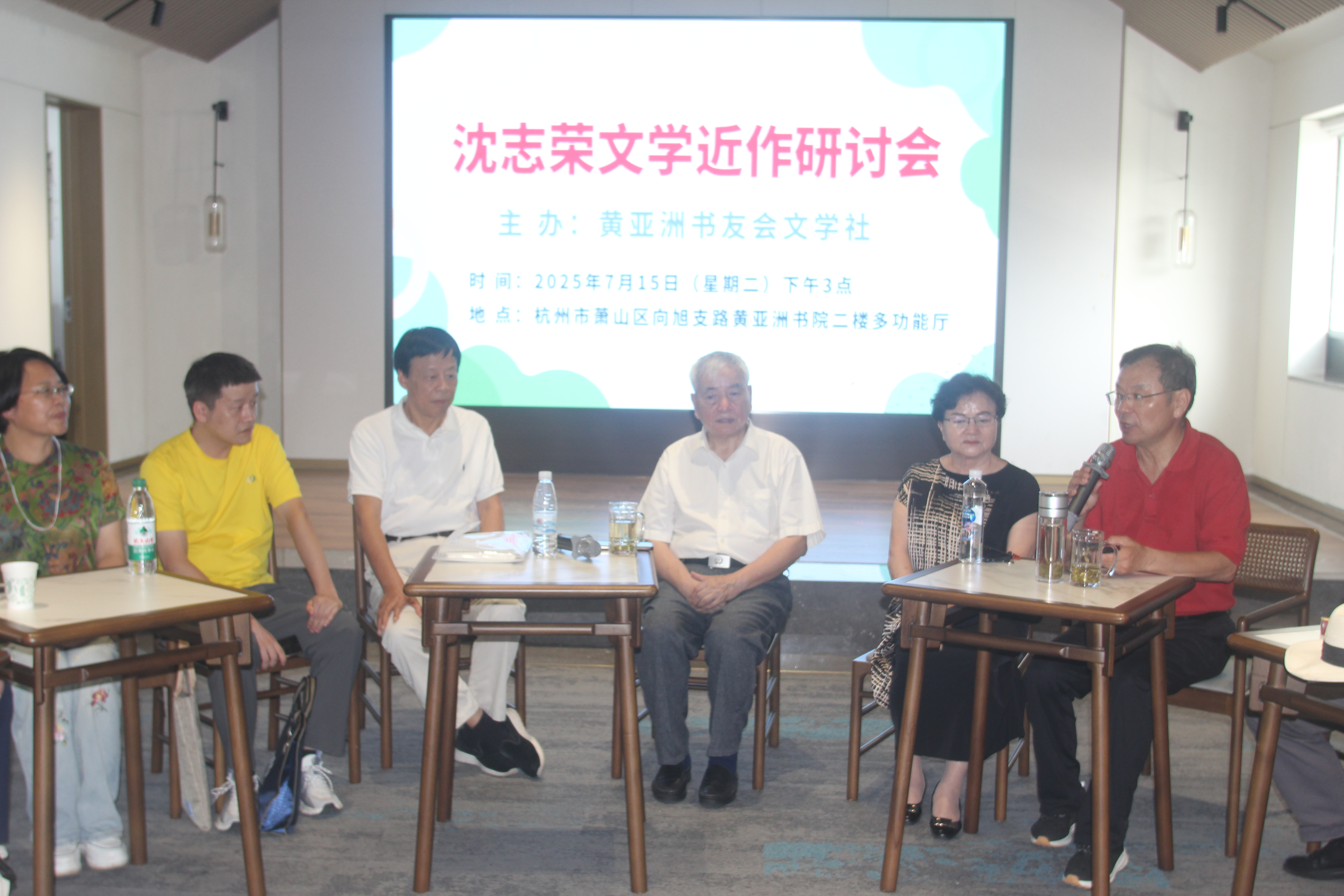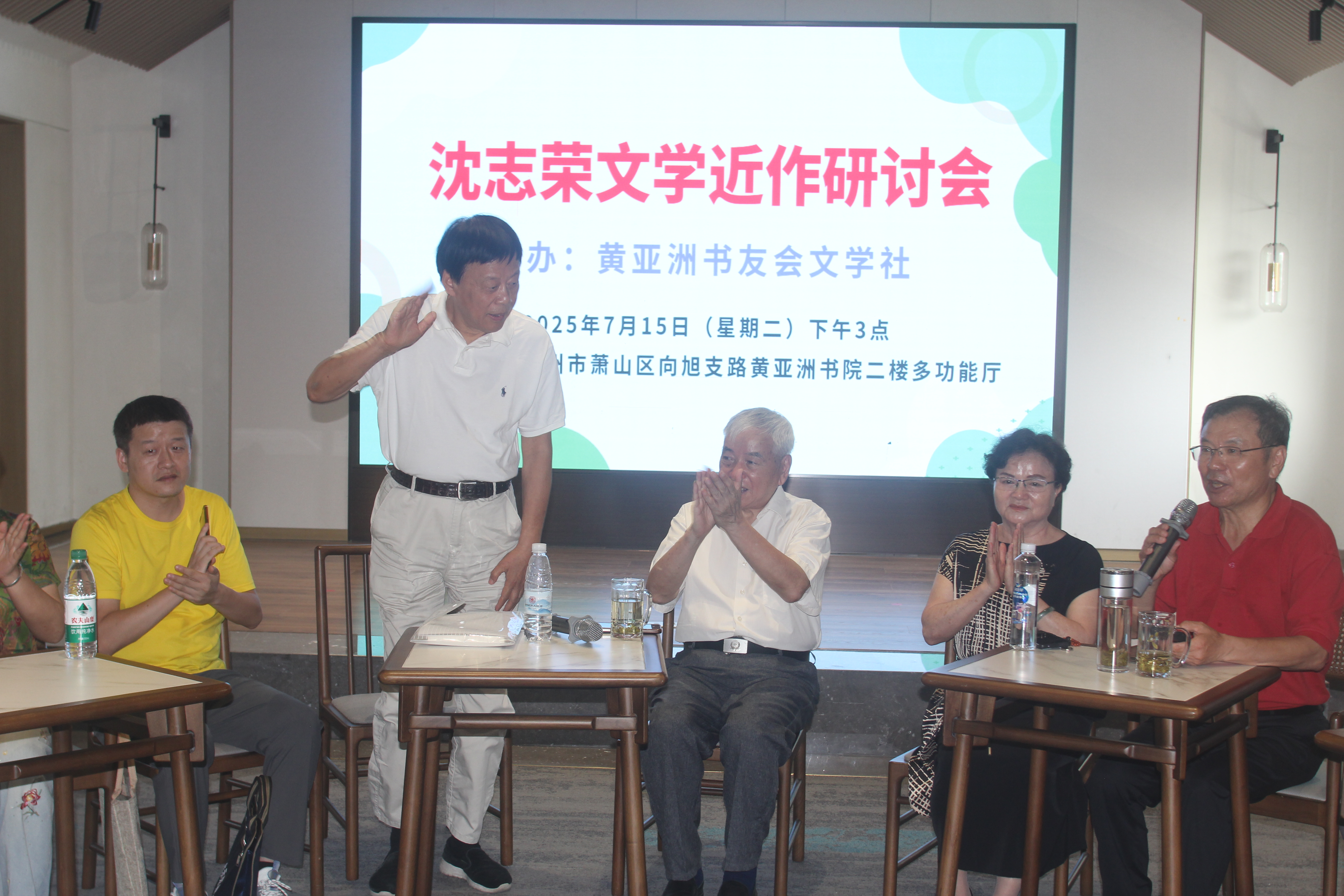 7月15日杭城热浪滚滚,但有这么一批作家和文学爱好者顶烈日、冒酷暑,从四面八方奔赴城南:萧山区蜀山街道黄亚洲书院,参加《沈志荣文学近作研讨会》,著名作家黄亚洲、楚良、祝金生、陈富强、俞评等与评论家韩锋、陈虚炎等对年过七旬的老作家沈志荣的诗近作精选(抒情诗、组诗、叙事长诗等)散文近作精选(作家系列、老同学系列、行吟散文等)进入深入探讨,尤其面对A|时代作家如何与时俱进、勇立潮头的热烈评议,更将活动推向高潮。