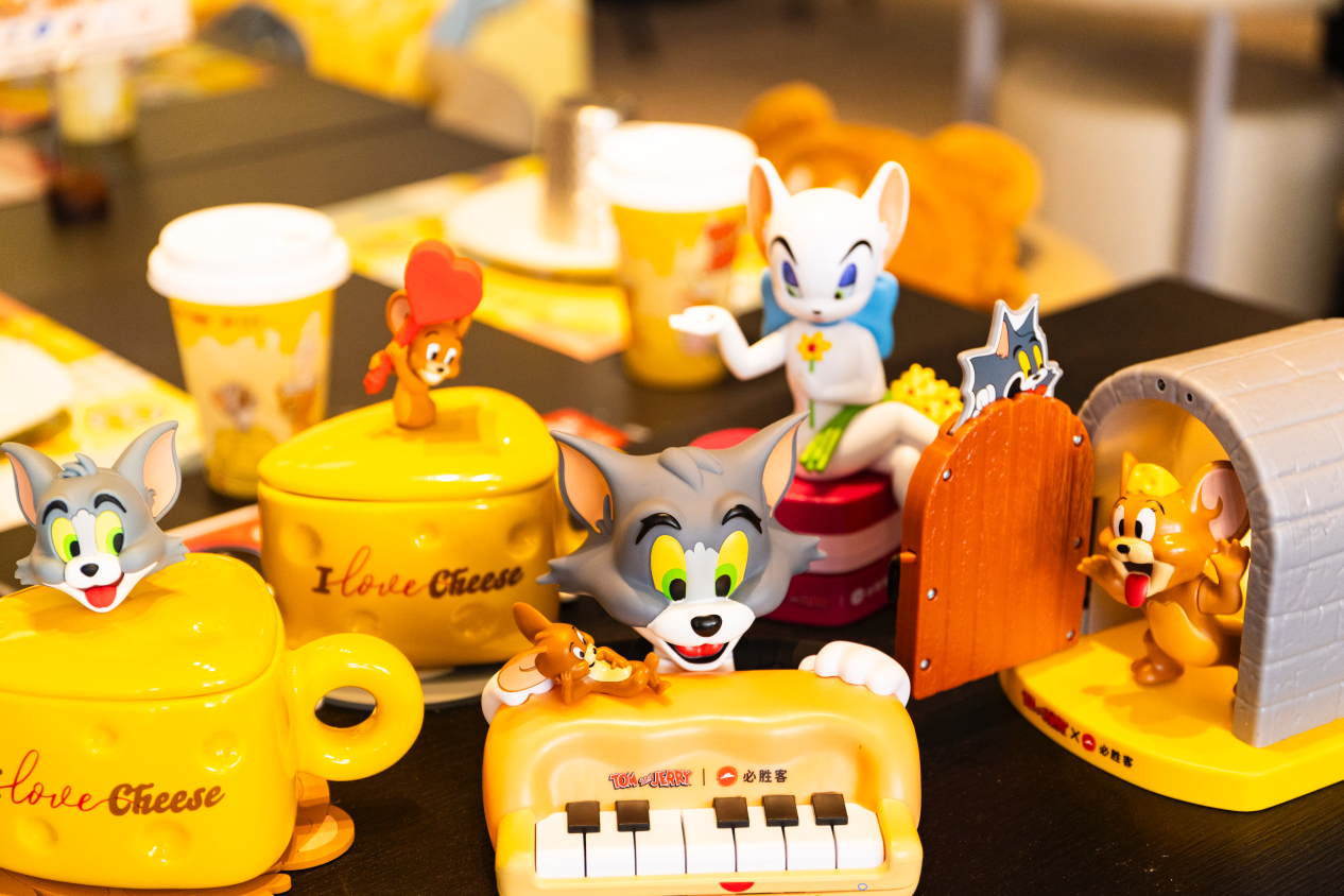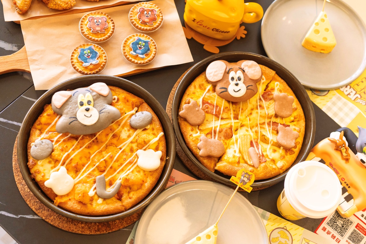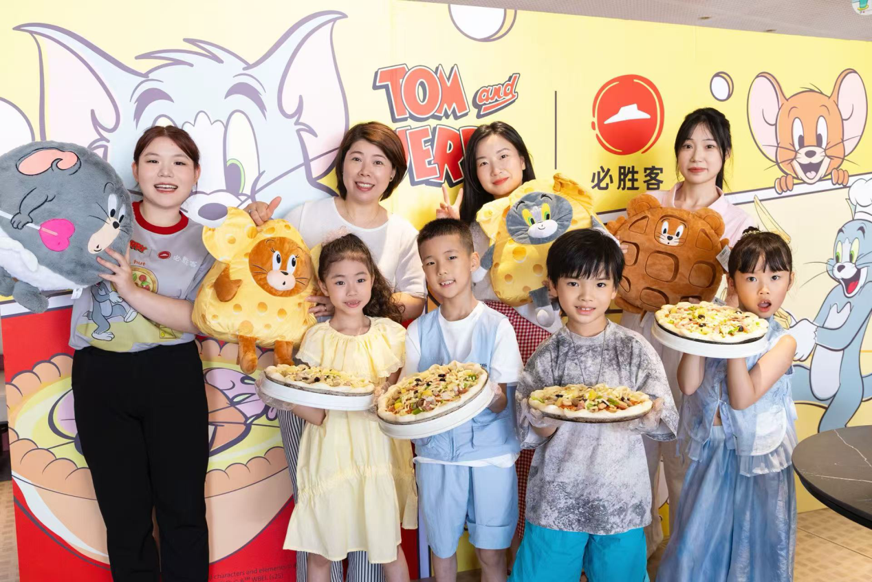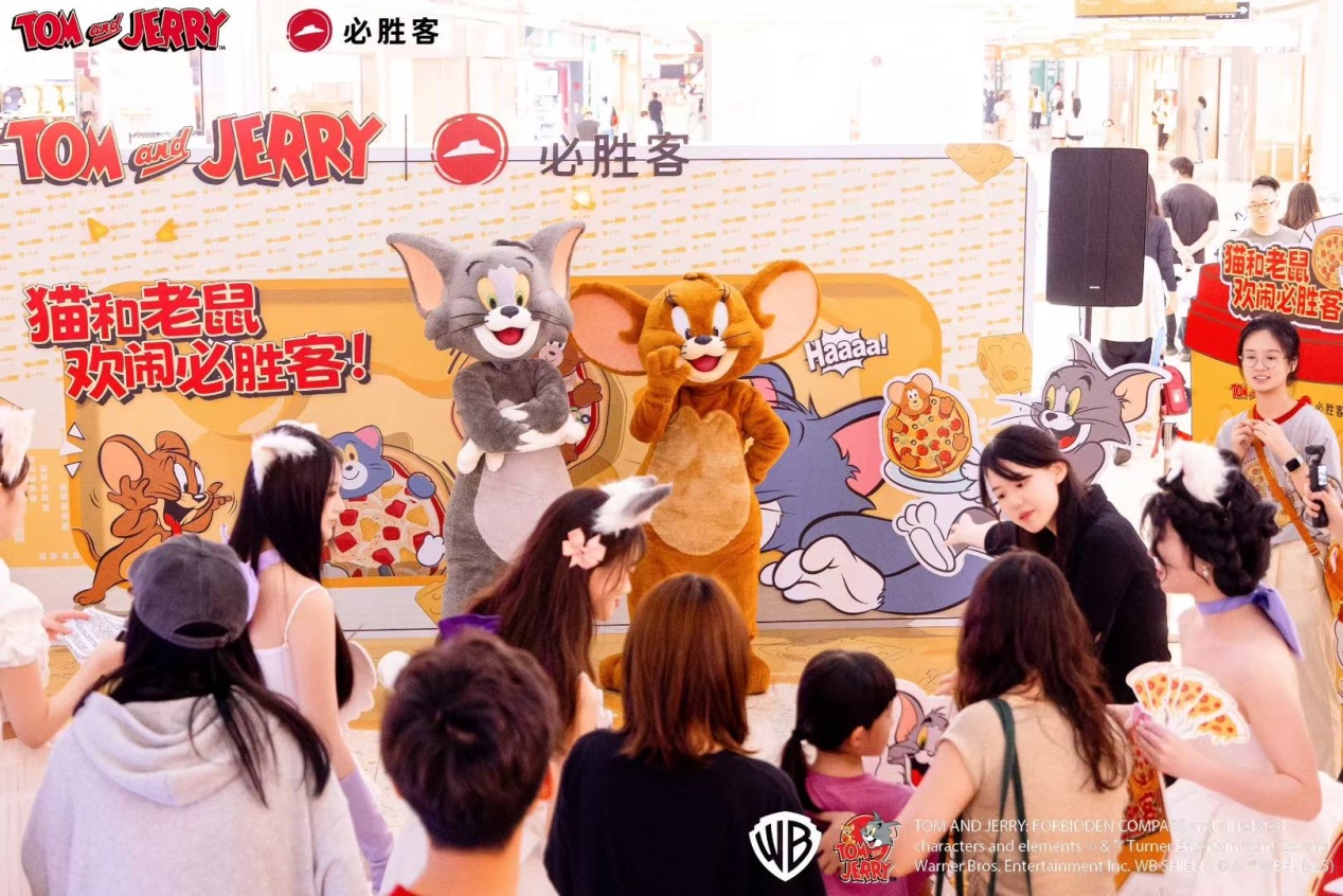 必胜客携手华纳兄弟探索全球消费品事业部呈现猫和老鼠主题体验 杭州 2025 年 7 月 -- 为庆祝必胜客进入中国 35 周年,必胜客携手华纳兄弟探索全球 消费品事业部,推出以经典动画猫和老鼠角色为特色的限时活动。品牌同步发布流芯芝 士系列产品、限量联名周边及主题餐厅体验。此次合作融合了必胜客 35 年来的创新设 计元素与猫和老鼠的经典魅力,唤醒无数粉丝的美好回忆。这对活泼搭档带来怀旧喜悦 的同时,全新芝士美食亦唤醒跨代味蕾,引发全国范围内的夏日欢聚热潮。更有“尖叫 星期三”六周年超值优惠惊喜助阵,欢乐开启“从荧幕到餐桌”的夏日盛宴! 重磅升级:新品齐上阵,欢聚更尽兴 披萨专家必胜客全新升级饼底,流芯芝士酱饼底咬一口就能爆出芝士酱,香浓流心, 带来更满足的体验;还有将汤姆和杰瑞造型巧妙融入饼底设计,为亲子家庭与动画迷打 造趣味横生的美食新体验。爆浆流芯芝士厚牛堡则在厚实多汁的牛肉饼中包裹热腾腾的 芝士流芯,肉脂浓香与澎湃芝香融合,一口满足能量与美味,生动诠释“一人食”的丰盛体验。 另有多款萌趣甜品,点缀夏日甜蜜“芝味”。杰瑞的奶香洞洞芝士蛋糕冰镇后如云 朵般轻盈柔滑,奶香浓郁而不腻口,带来夏日里的一抹清新愉悦;黑芝麻流芯芝士挞以 萌趣的汤姆和杰瑞造型点缀挞面,以醇香黑芝麻流芯酱交融浓情芝士,一口唤起甜蜜童 年记忆,既是一口沦陷的餐后甜点,也是精致下午茶的理想选择。 限量周边珍藏童年乐趣,沉浸体验穿越无忧时光 在品尝令人惊喜的流芯芝士美味之余,必胜客更将猫和老鼠的欢乐世界从荧幕搬进 现实,打造触手可及的沉浸式趣味体验!购买指定套餐,即可拥有巧妙复刻猫和老鼠经 典元素的限量联名周边——以奶酪芝士为灵感,诙谐吸睛的芝士伞、还原猫鼠惊魂夜经 典剧情的精美墙角感应灯、让汤姆疯狂痴迷的喵界丘比特可爱摆件,还有汤姆杰瑞双造 型芝士陷阱咖啡杯等。必胜客以兼具实用性与萌趣外观的实物周边,为消费者开启一场 温暖的童年时光之旅。步入必胜客精心打造的主题餐厅,带你瞬间穿越进汤姆与杰瑞的嬉戏天地。汤姆杰 瑞追逐打闹的大型窗贴以及复刻经典动画场景的趣味打卡点,沉浸式打造欢乐解压的聚 享时刻,让每一次美味用餐都成为奇妙冒险。还有“大明星”汤姆和杰瑞空降上海美罗 城、深圳中心书城、杭州西溪及天津南开大悦城四家门店,与消费者亲密互动合影,引 发大量消费者前往打卡。与此同时,恰逢必胜客“尖叫星期三”活动六周年,必胜客还将推出限时折扣与特 惠套餐组合,超值助力打工人解压欢度“夏日美好食光”。 7 月 4 日,主题餐厅限定活动正在杭州西溪印象城必胜客开启。现场众多美食达人、 和温馨的亲子家庭,每个人脸上洋溢着欢乐的笑容。在这里,感受无处不在的童趣氛围, 更能亲自品尝今夏爆款——全新升级的流芯芝士披萨等芝士季限定美味。活动现场,小 朋友们还能亲手制作满载童趣的 DIY 披萨、与活泼逗趣的“大明星”汤姆和杰瑞亲密互 动、在复刻经典动画场景的打卡点留下充满欢笑与温情的合影瞬间。每一口芝士的香浓, 每一次互动的欢笑,都将成为这个夏日里与亲人好友共同珍藏的美好回忆,真正的感受 到在必胜客是一个“品美食,爱欢聚、无年龄界限,全民热爱的餐厅。必胜客 35 年创新力与猫和老鼠 85 年情怀共振,此次破壁合作是必胜客深耕中国 35 年、坚守“披萨专家”创新之路的生动注脚。从经典铁盘到流芯芝士系列的突破, 必胜客始终以高品质食材与别具匠心的创意,不断满足消费者对“重要时刻美味”的追 求。当童年情怀邂逅芝士舌尖惊喜,必胜客向消费者传递了“欢聚无年龄界限”的理念, 也展现了必胜客不仅是聚享美味的餐厅,还是承载家庭温情与朋友欢笑的“生活伙伴”。 必胜客 35 年持续陪伴消费者成长,见证每一个欢笑时刻。关于猫和老鼠: 《猫和老鼠》是 William Hanna 与 Joseph Barbera 于 1940 年创作的动画系列片。 片中汤姆和杰瑞的欢乐故事不断,深受大众喜爱,是动画史上极具影响力的喜剧搭档, 为全球观众带来欢笑。 “猫和老鼠”及其所有相关角色与元素 © 与 ™ 归特纳娱乐公司所有(s25) 【关于华纳兄弟探索全球消费品事业部】 华纳兄弟探索全球消费品事业部(WBDGCP)是华纳兄弟探索集团营收与策略部门的 一部分,将公司强大的娱乐品牌和系列带入全球影迷的日常生活中。WBDGCP 与全球 顶尖授权商合作,推出获奖的玩具、时尚、家居装饰和出版计划,灵感来自华纳兄弟电 影、电视、动画、游戏工作室、 HBO、 Discovery 频道、 DC、卡通频道(Cartoon Network)、 HGTV 居家乐活频道、Eurosport 欧洲体育台及 Adult Swim 等最大的系列。凭借其创新的全球授权业务、零售举措及宣传合作关系,WBDGCP 已成为全球领先的授权与零 售企业之一。