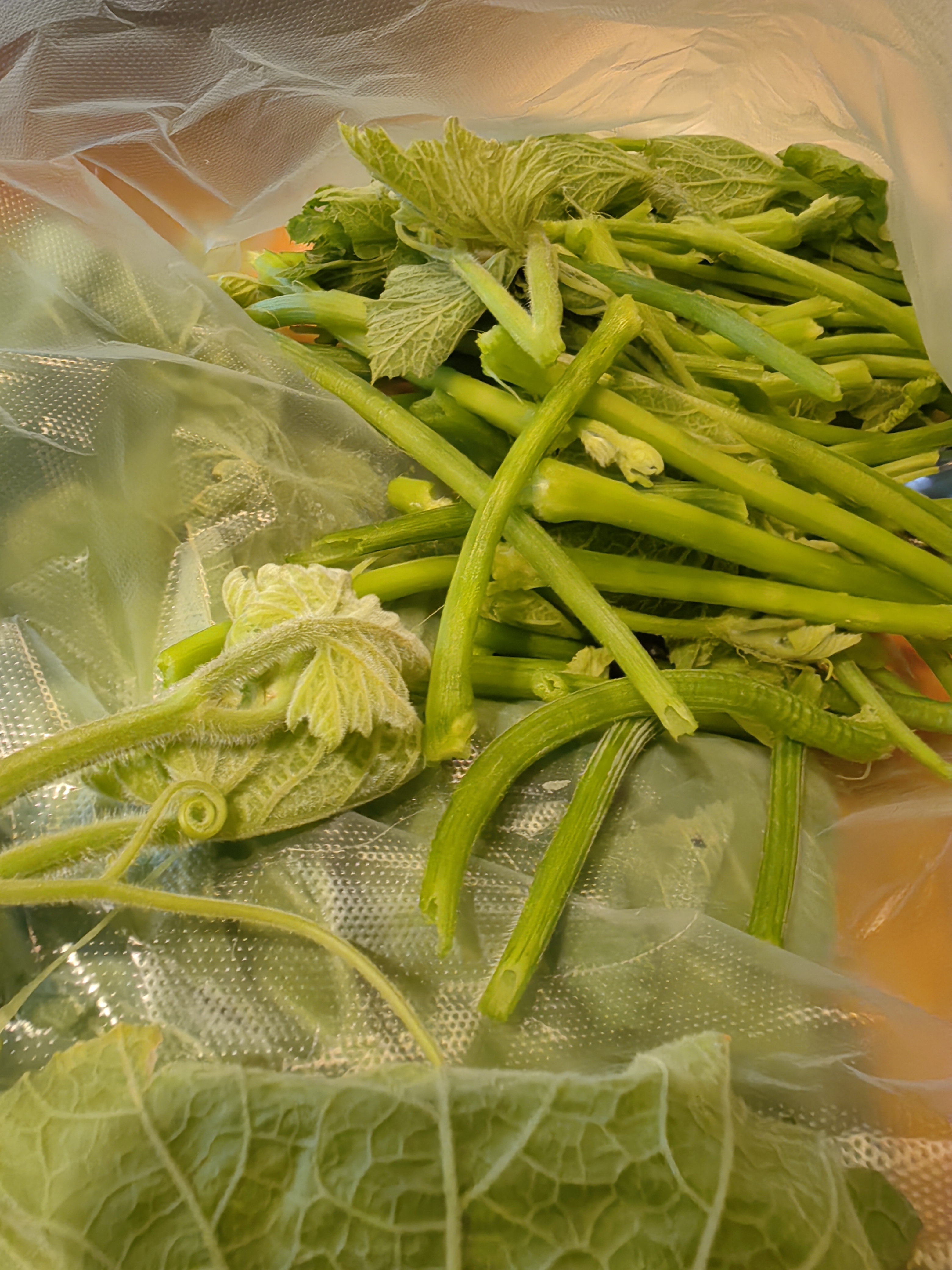 今天运气好,15块钱就买了三大把南瓜藤,挺嫩挺新鲜,绿绿的南瓜藤夏天吃能清热缓解疲劳,而且它有大量的膳食纤维吃了它肠道蠕动加快,促进排便。所以这个时间大家都在可劲儿地折腾着这不起眼的南瓜藤吃呢,什么炒南瓜藤、凉拌南瓜藤、烧南瓜藤汤等。