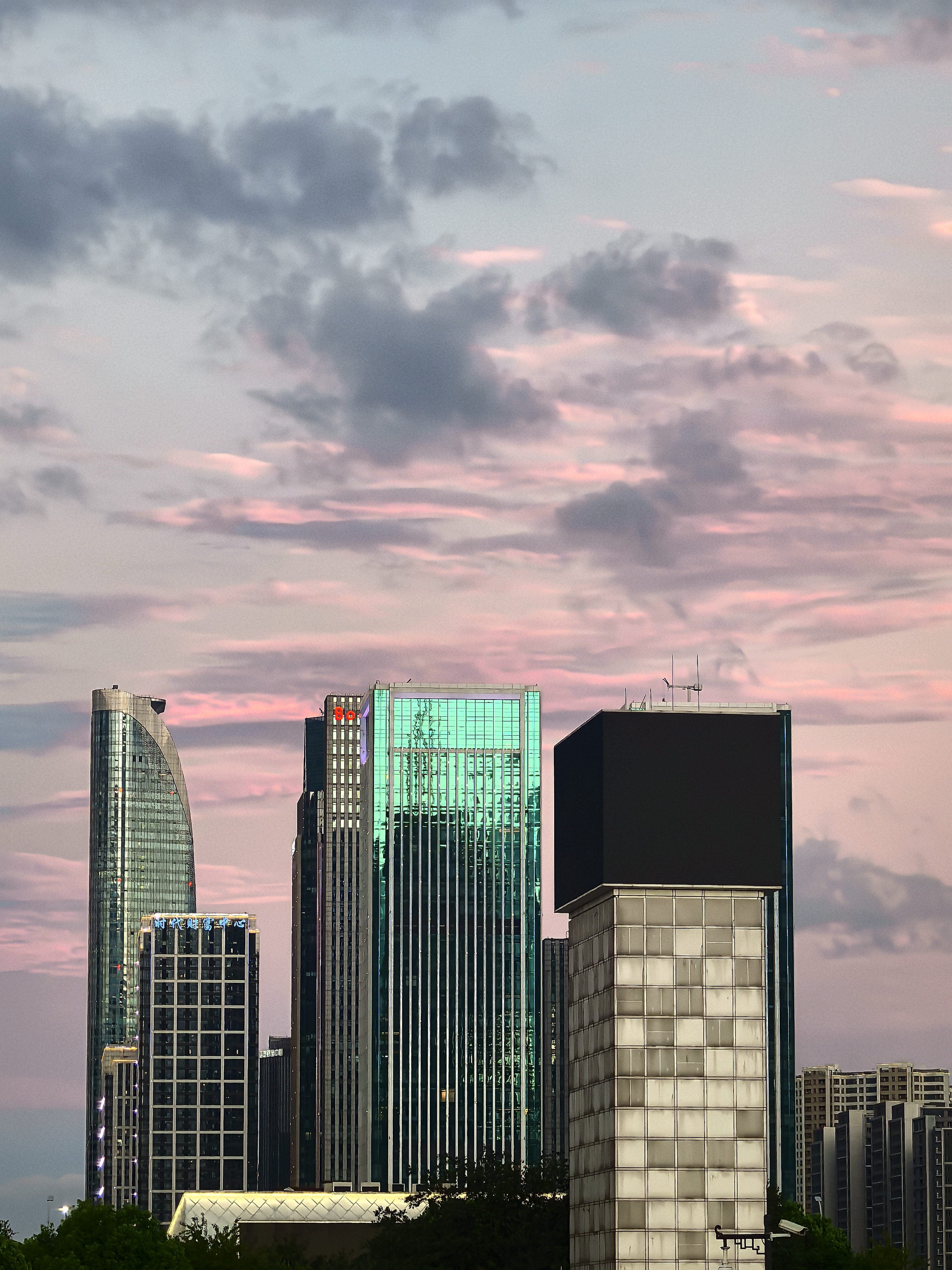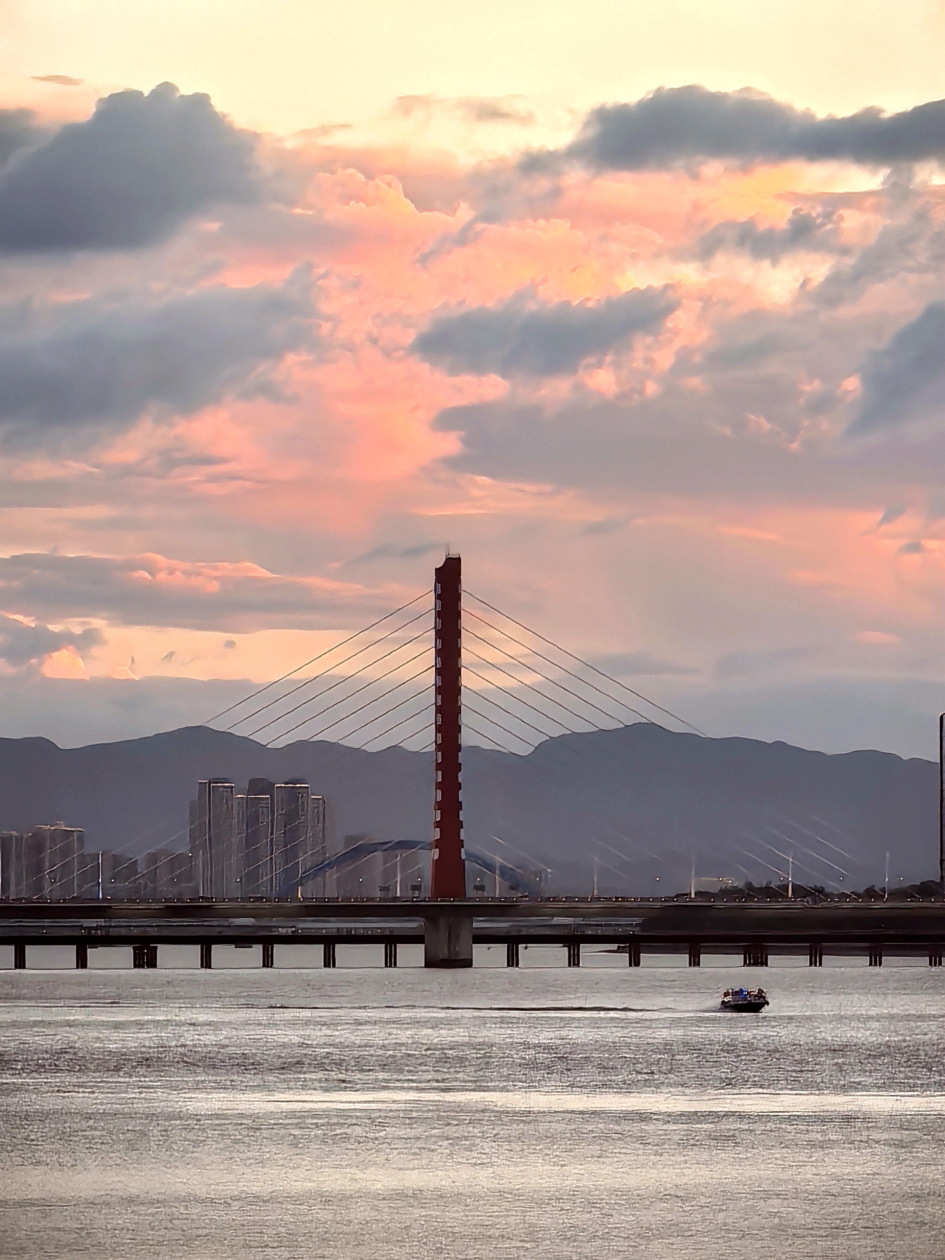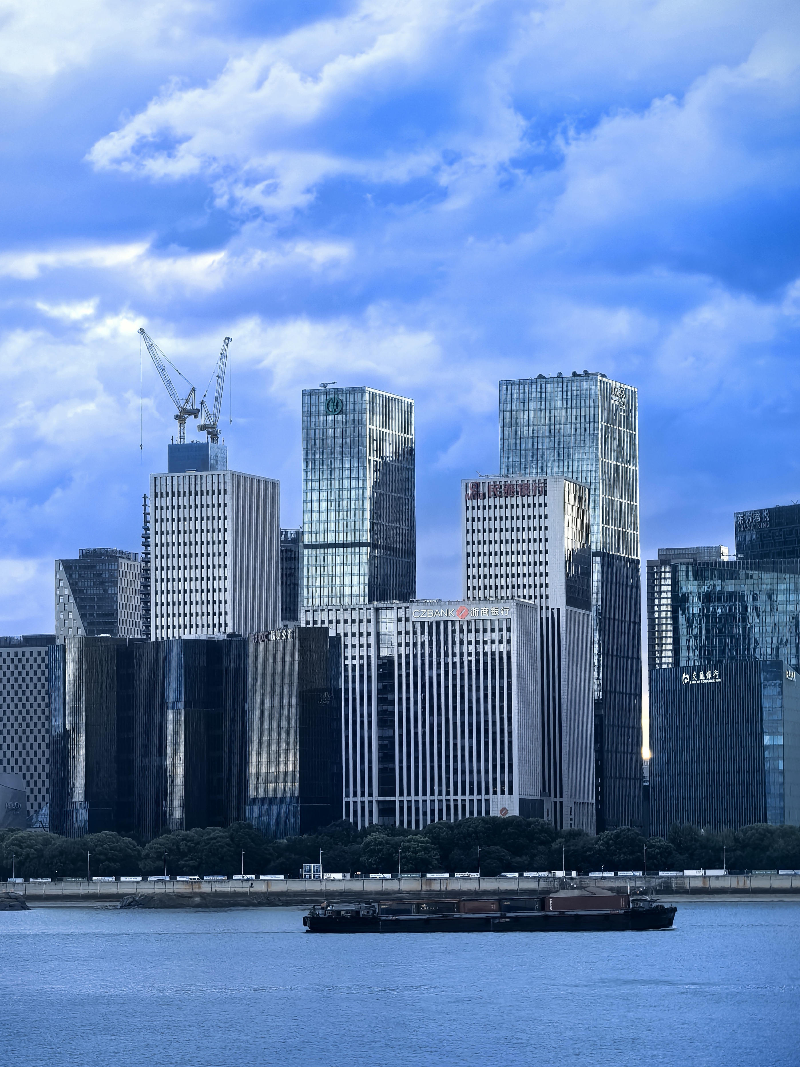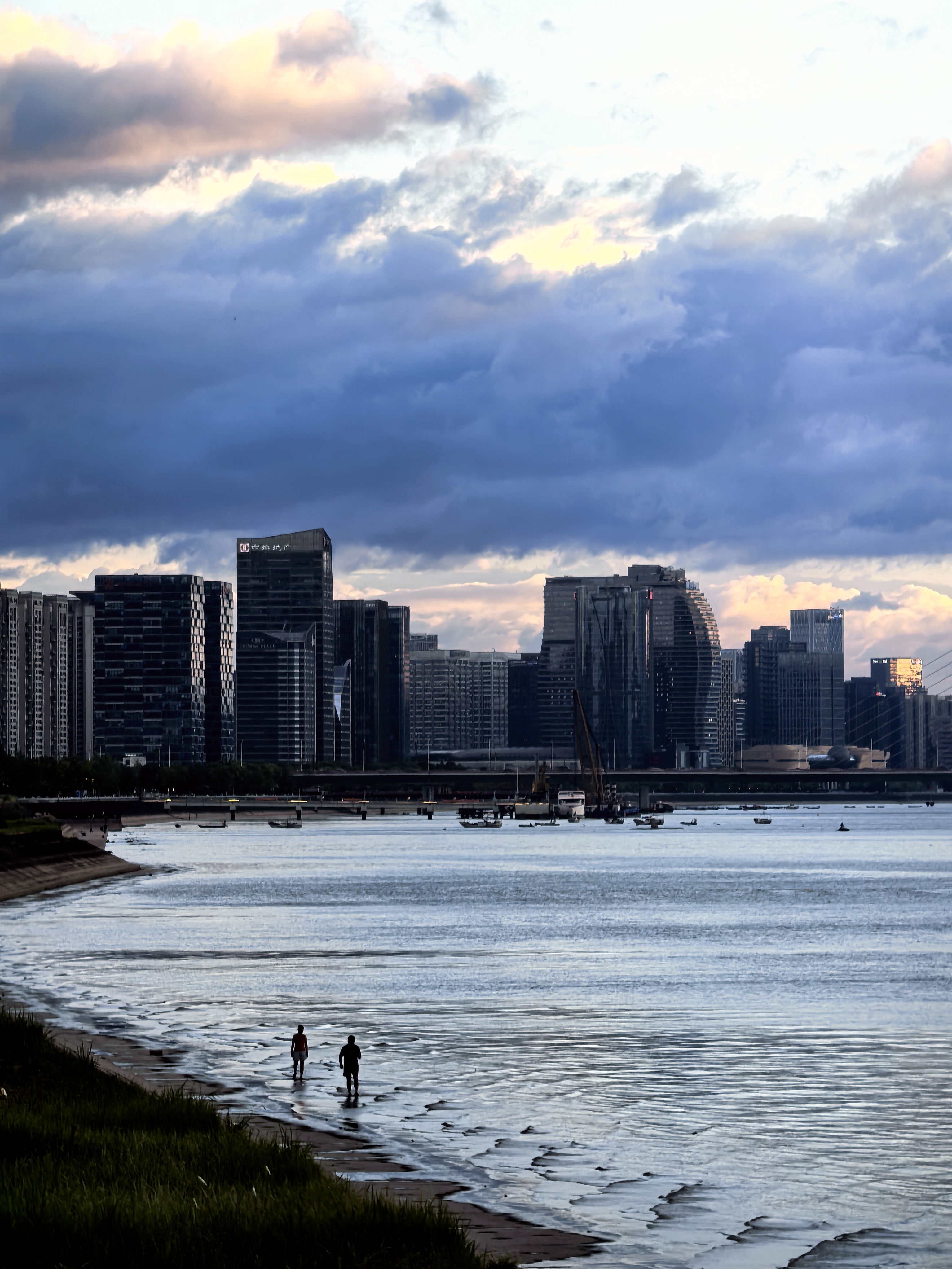 傍晚来到钱江世纪城的江岸,这里早已聚集了一长排人,大家的目光在钱江新城与南岸间流转。此刻的云霞,似被大自然这位神奇画师特别的勾勒,暗色云朵边缘,镶上璀璨金边,如梦似幻。落日的余晖将两岸的高楼大厦染成暖橙色,波光粼粼的江面也泛起层层金色涟漪。城市的喧嚣在这一刻被温柔抚平,只剩下落日与云霞的深情对话。