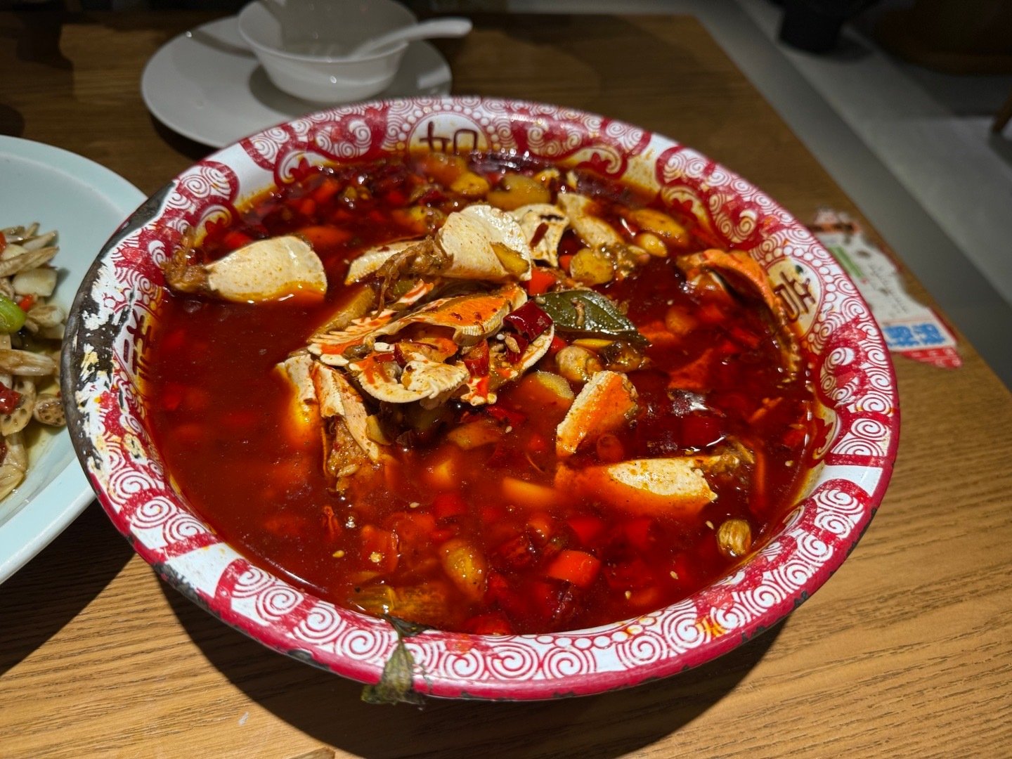 蟹脚捞粉!便宜肉厚的雷公蟹脚处理后炒香,在特调的香辣汁里煮得入味。最后往汤里下一漏勺米粉,那滋味,好恰!