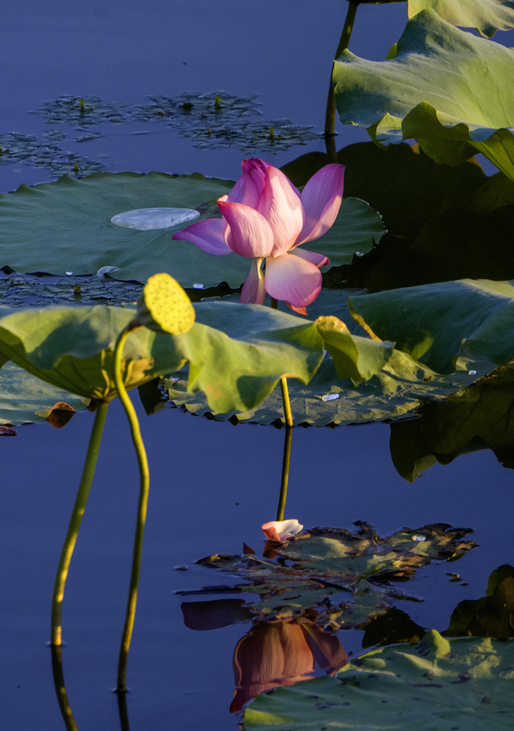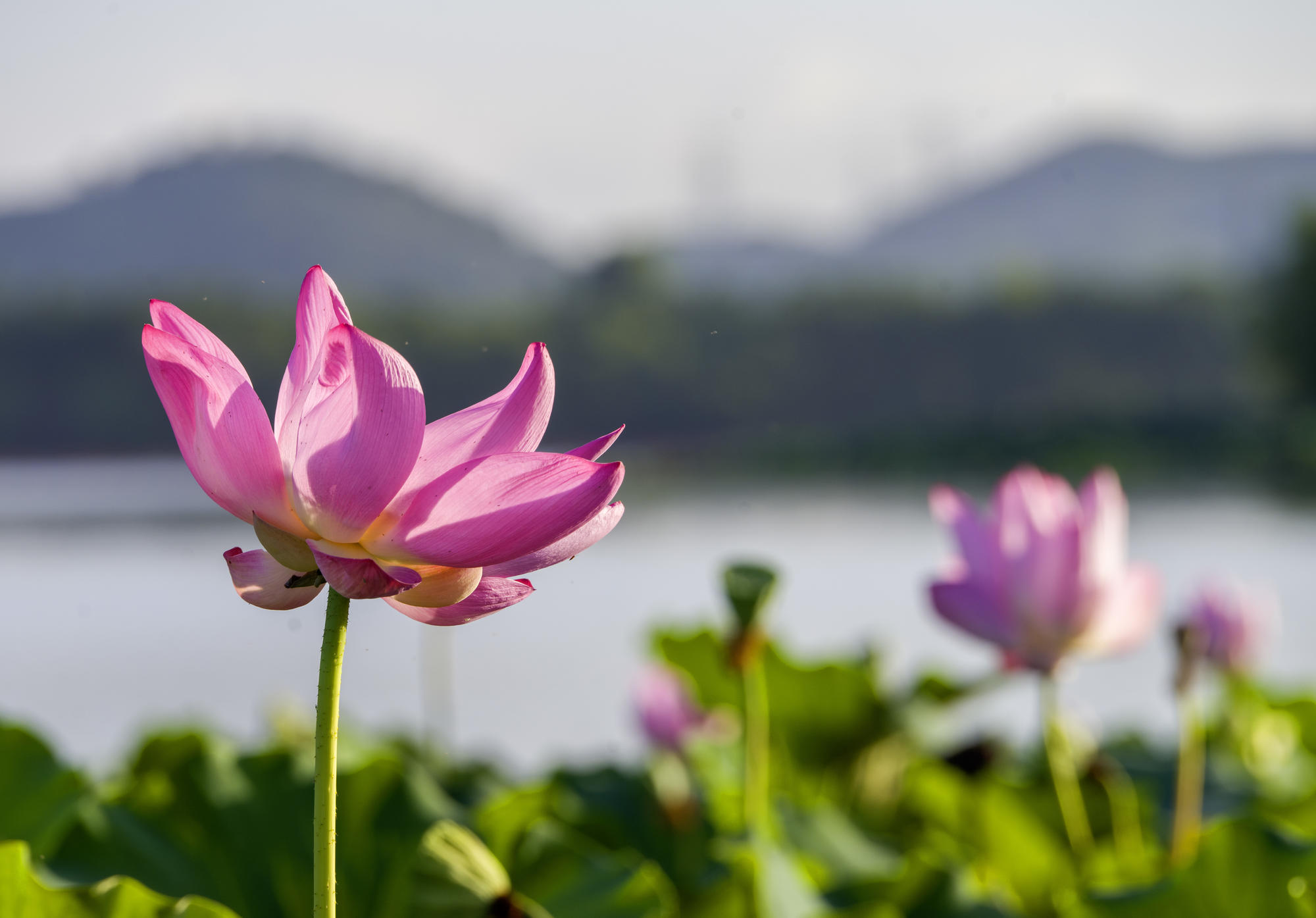 每当湘湖荷花盛开的时节,若能泛舟荷塘,乘一叶摇橹船穿行于碧叶莲香之间,或拾级而上登临湖畔亭台远眺,便能真正体味杨万里的诗句,沉浸于“接天莲叶无穷碧,映日荷花别样红”的绝美意境之中。倘若恰逢朝霞初升或暮霭轻笼,湖面荷叶与天光云影交相辉映,共舞一池风韵,那便更是一场视觉与心灵的双重盛宴。幸运的是,今日我竟将这一切尽收眼底,满载而归。