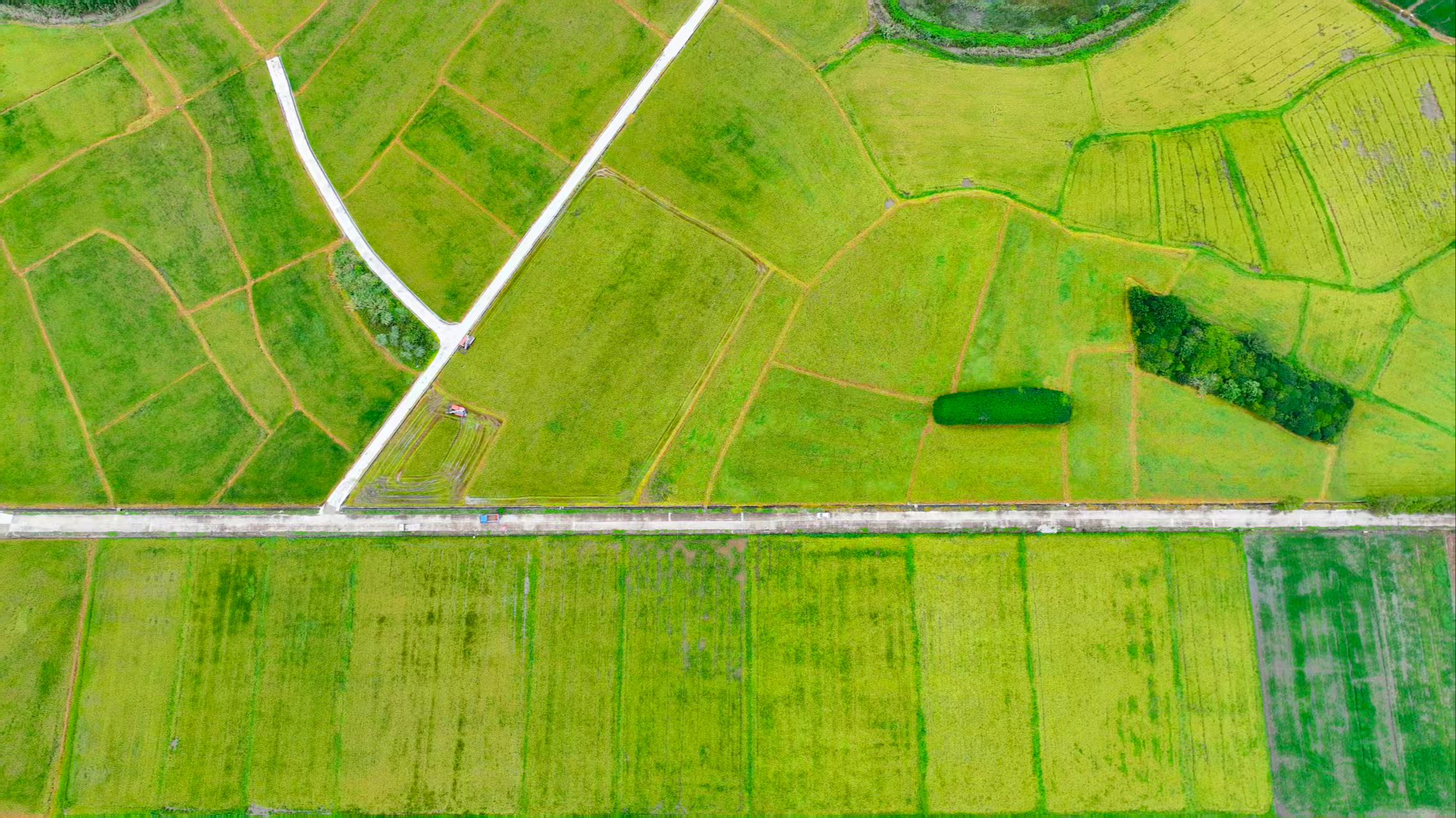 绿野阡陌间 广袤田野间,阡陌纵横如大地脉络,编织出悠然的乡村图景。(杜俊魁/摄)