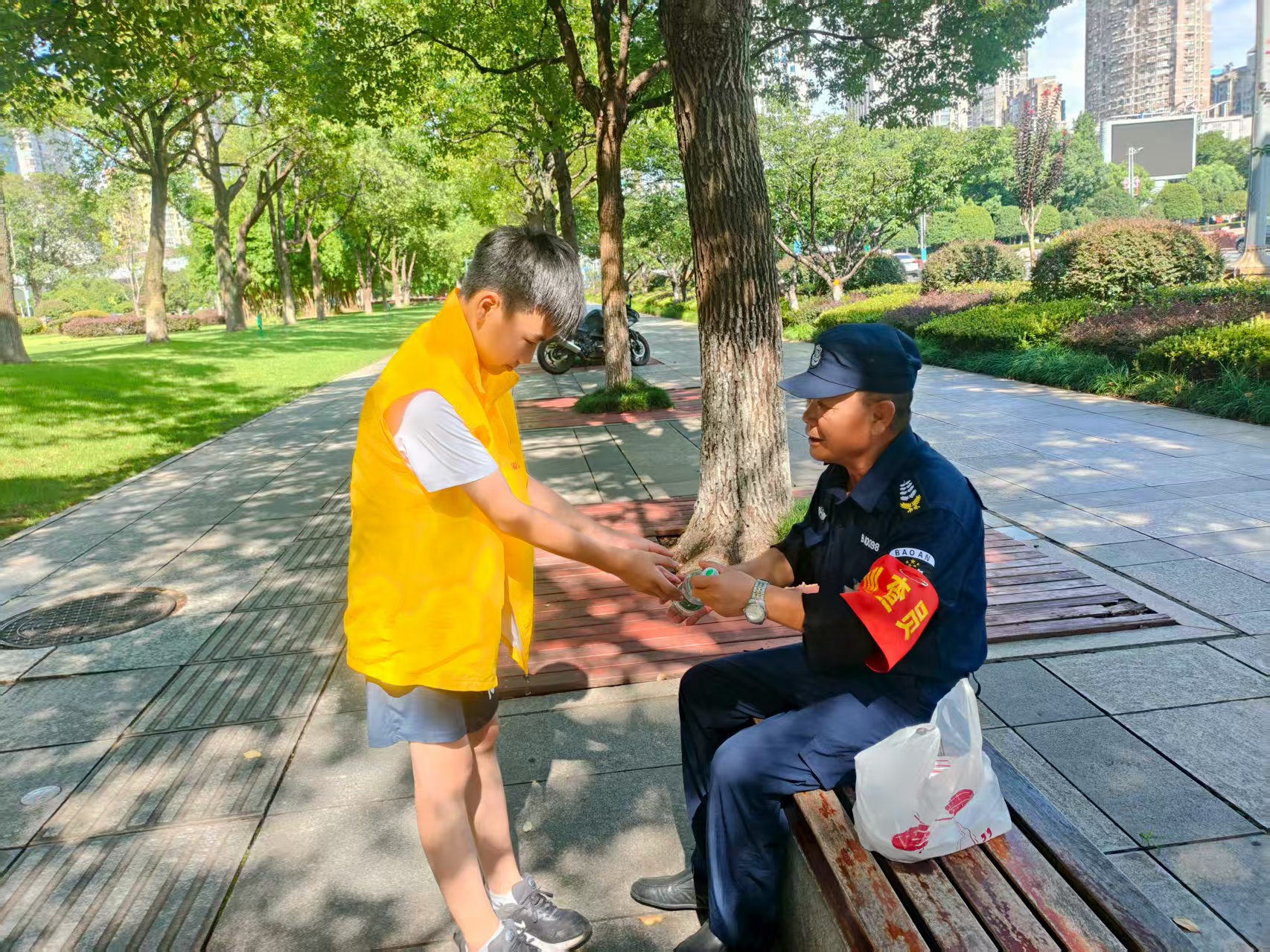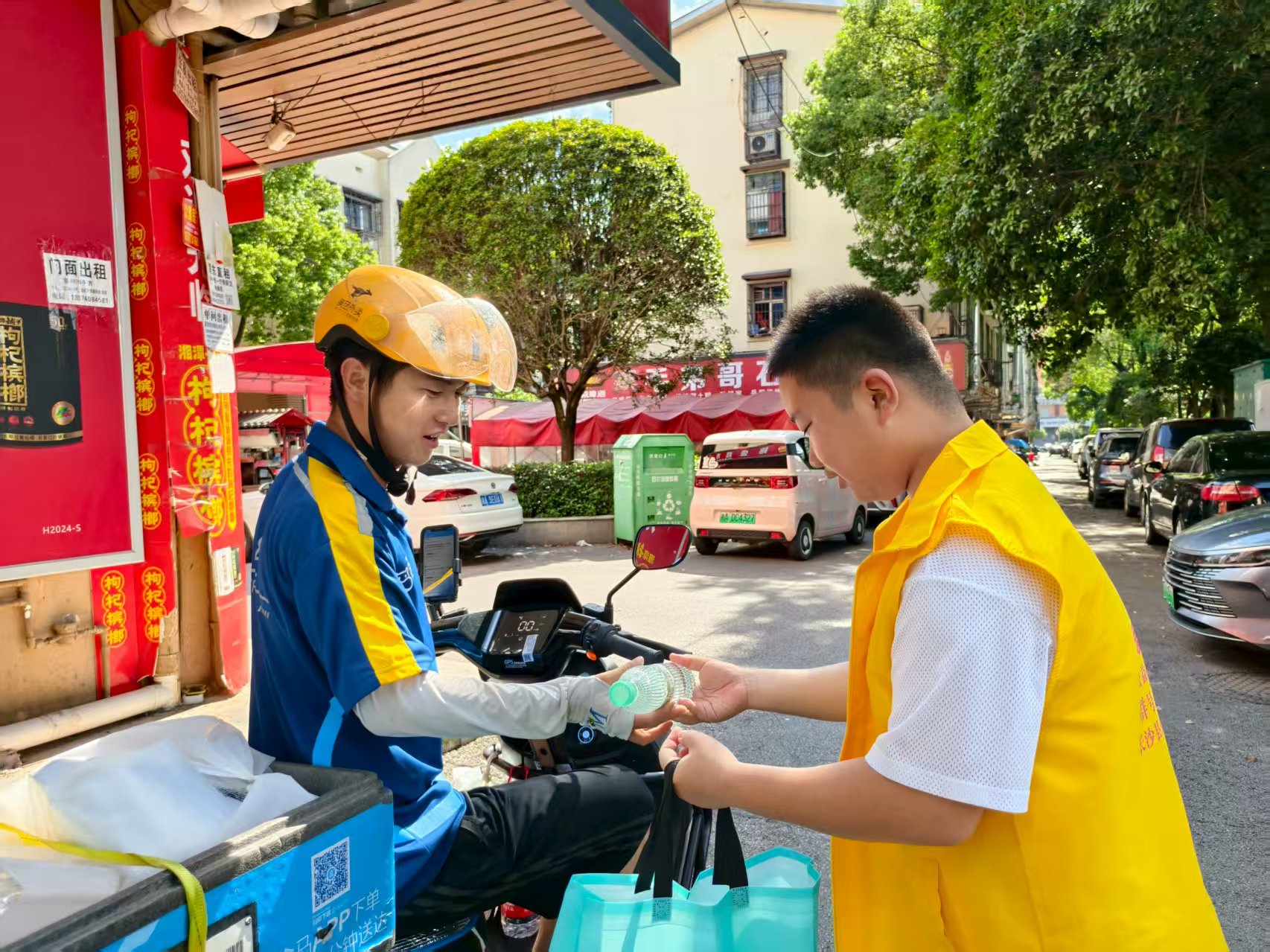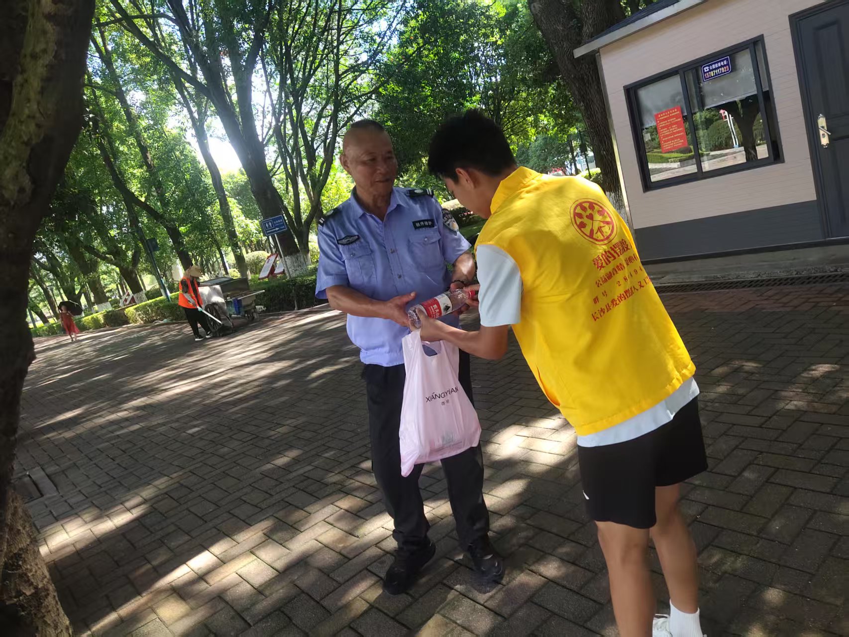 【文明实践我行动“厚德星沙 益路同行”7.25长沙县小义工送清凉】(通讯员刘露 唐玲)文明实践我行动“厚德星沙 益路同行”2025年度长沙县全城送清凉大型志愿活动7月5日在通程商业广场星沙店正式启动。今年该活动由长沙县精神文明建设办公室指导,长沙县爱的摆渡人义工发展中心联合中共长沙通程实业集团有限公司第四党支部委员会主办;长沙顺新电梯有限公司与通程电器星沙旗舰店步步高小天才专柜协办;同时还得到了湖南省应急救援协会等多家爱心单位支持。 7月25日,小义工们走上街头,他们热情地将一瓶瓶饮用水送到正在高温下辛勤工作的环卫师傅、外卖小哥、园林工人和快递员手中,同时真诚道一声:“您辛苦了!”户外热浪扑面,小义工们汗水浸湿衣背,他们用行动传递关怀,在劳动中深刻体会到酷暑中室外工作的艰辛与奉献的可贵,为城市守护者送上了一份青春却滚烫的敬意。 长沙县爱的摆渡人义工发展中心相关负责人介绍:“今年是我们第五年开展全城送清凉志愿活动,活动将贯穿整个暑假持续到八月底。感谢所有参与单位与个人大爱付出!欢迎社会各界爱心力量益路同行,都来捐水送水,一起传递“星沙温度”。” 特别感谢长沙市盼盼中心小学和长沙市星沙中学大爱支持!感谢易梓樾、莫雅琴、黄泽儒、莫梓晗、彭升远、饶雅萱、刘君豪、张博豪、吴振豪,吴振帆、谭琪忆等小义工及家长辛劳付出!