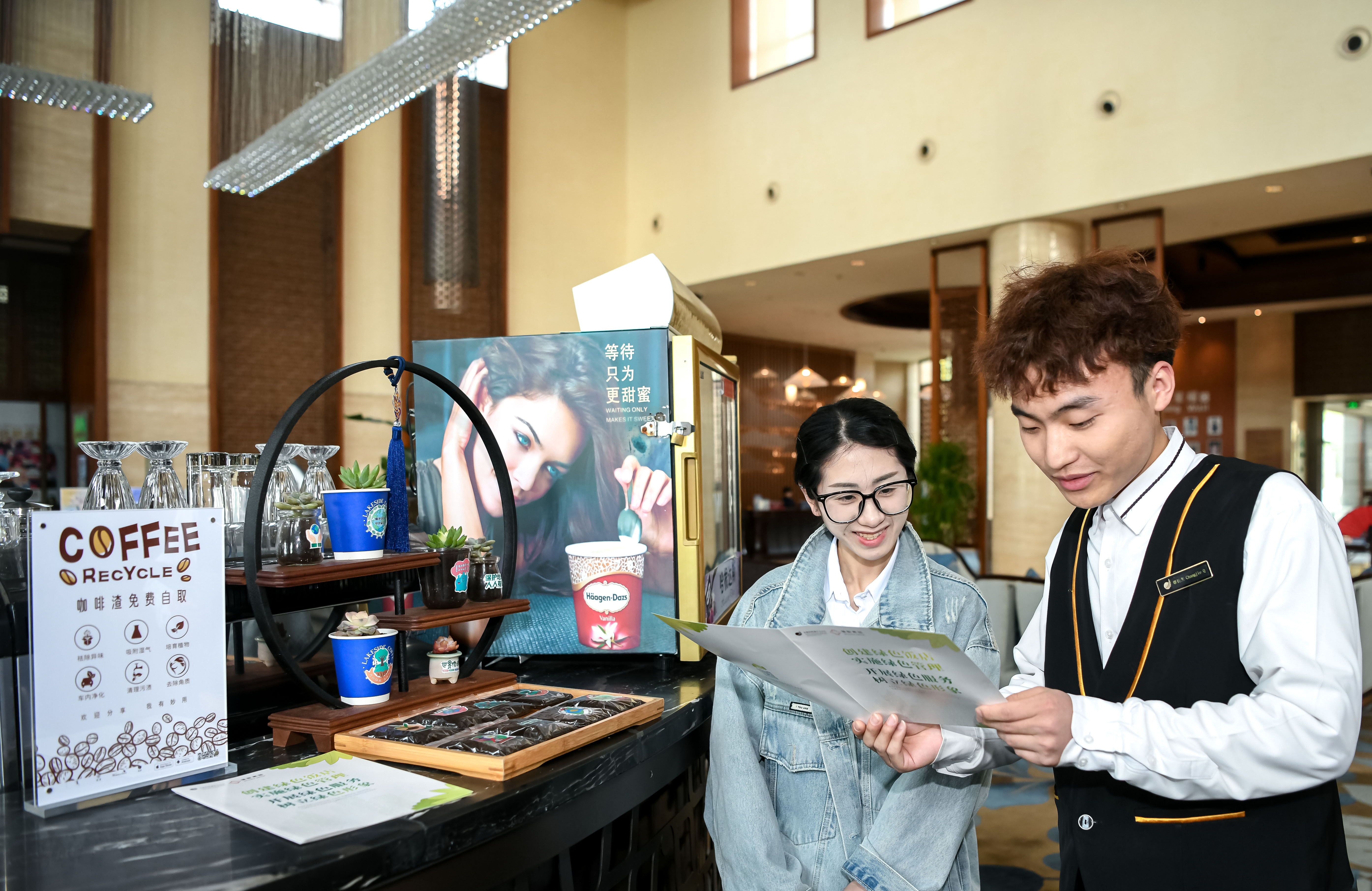 (通讯员万锡东)“环境太优美了,不仅满眼绿色,而且还倡导绿色消费!”7月26日,一批长三角游客入住余姚四明湖开元山庄后,不停地对酒店基础设施和管理服务点赞。 山庄依托自然生态资源。从2025年3月起,在总经理为组长的创绿小组带领下,开始创建绿色饭店工作,倡导将“节能、环保、安全、健康”的绿色理念融入酒店日常运营中,节能降耗,共倡环保,创将绿色饭店的理念进一步落实到实处,助力国家绿色转型高质量发展,为碳达峰,碳中和,保护环境、回报社会贡献力量。 山庄关注客人的环保需求以及客房健康管理,提供绿色饮食,以便客人在酒店享受精致服务。酒店专门设置绿色楼层,不主动提供一次性用品,积极倡导宾客减少一次性用品的消耗;客房内放置环保提示卡,鼓励减少布草洗涤次数;客房卫生按照标准进行消毒,配备可循环使用的大瓶洗护用品。