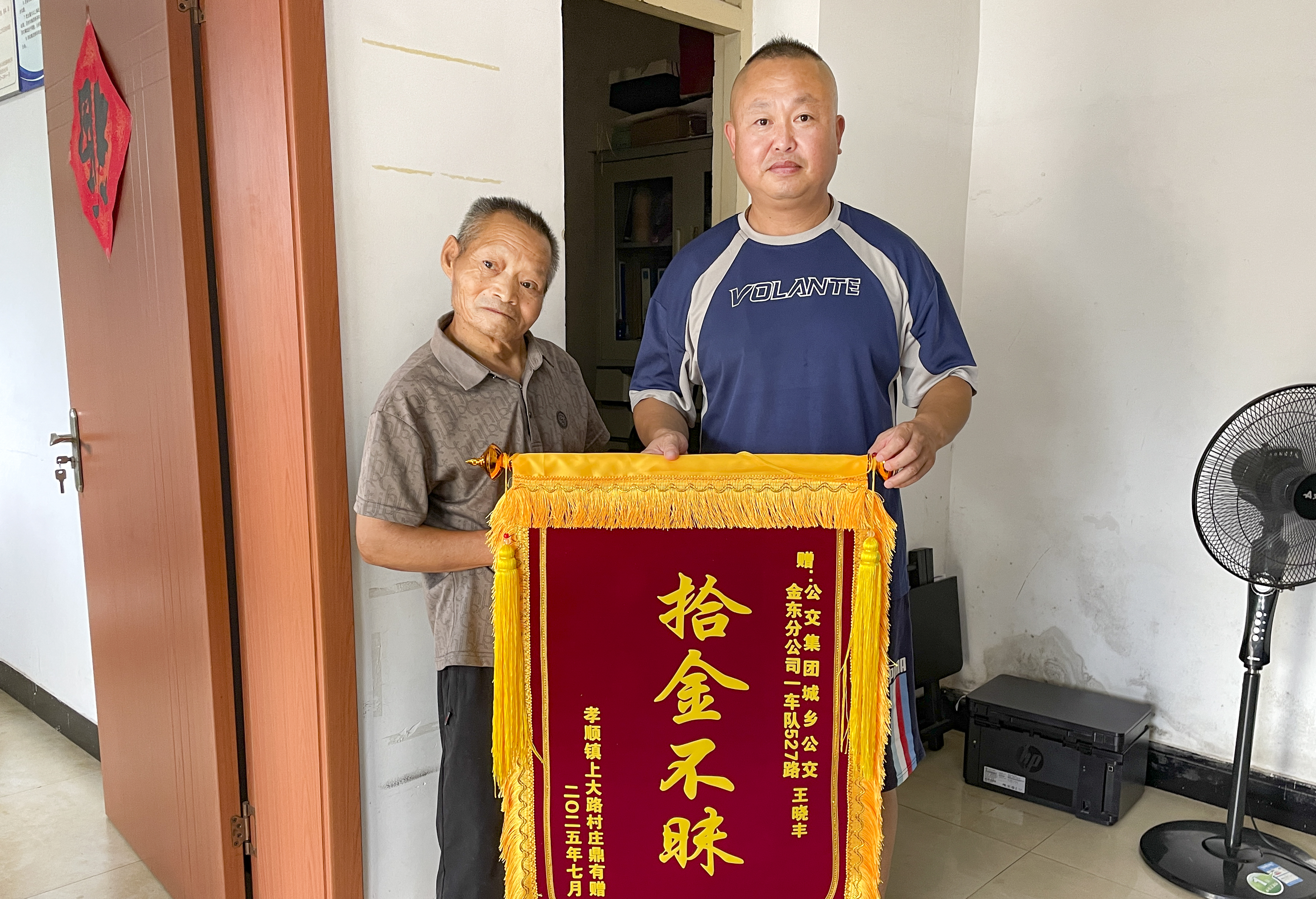 金华:暖心!这位司机拾金不昧,获乘客锦旗致谢 7月26日,来自金东区孝顺镇王里源村的村民庄鼎有专程来到金华市交通投资公交集团客运金东公司一车队,将一面写有“拾金不昧”的锦旗送到车队,对527路驾驶员王晓丰拾金不昧的行为表示感谢。 庄鼎有乘坐由塘雅镇开往铁路金华站的527路公交车,在中心医院公交站下车时,不慎将随身携带的钱包遗落在车上。钱包内有现金、重要证件及多张银行卡,一旦丢失将带来诸多不便。 当班驾驶员王晓丰在车辆到达终点站进行例行检查时,发现了被遗落的钱包。车队工作人员根据包内信息迅速联系上了失主庄鼎有。 据了解,近段时间,公交车厢里接连上演了10多起拾金不昧的暖心故事,其中有一次性捡到10万元现金,公交驾驶员用细致入微的服务诠释了公交人的责任担当,而失主以送锦旗、写感谢信等方式,感谢他们的暖心善举。目前,公交集团将持续发挥先进典型的示范引领作用,号召全体员工以优秀事例为榜样,不断提升服务水平,努力为市民提供更加优质、贴心的公交出行服务。