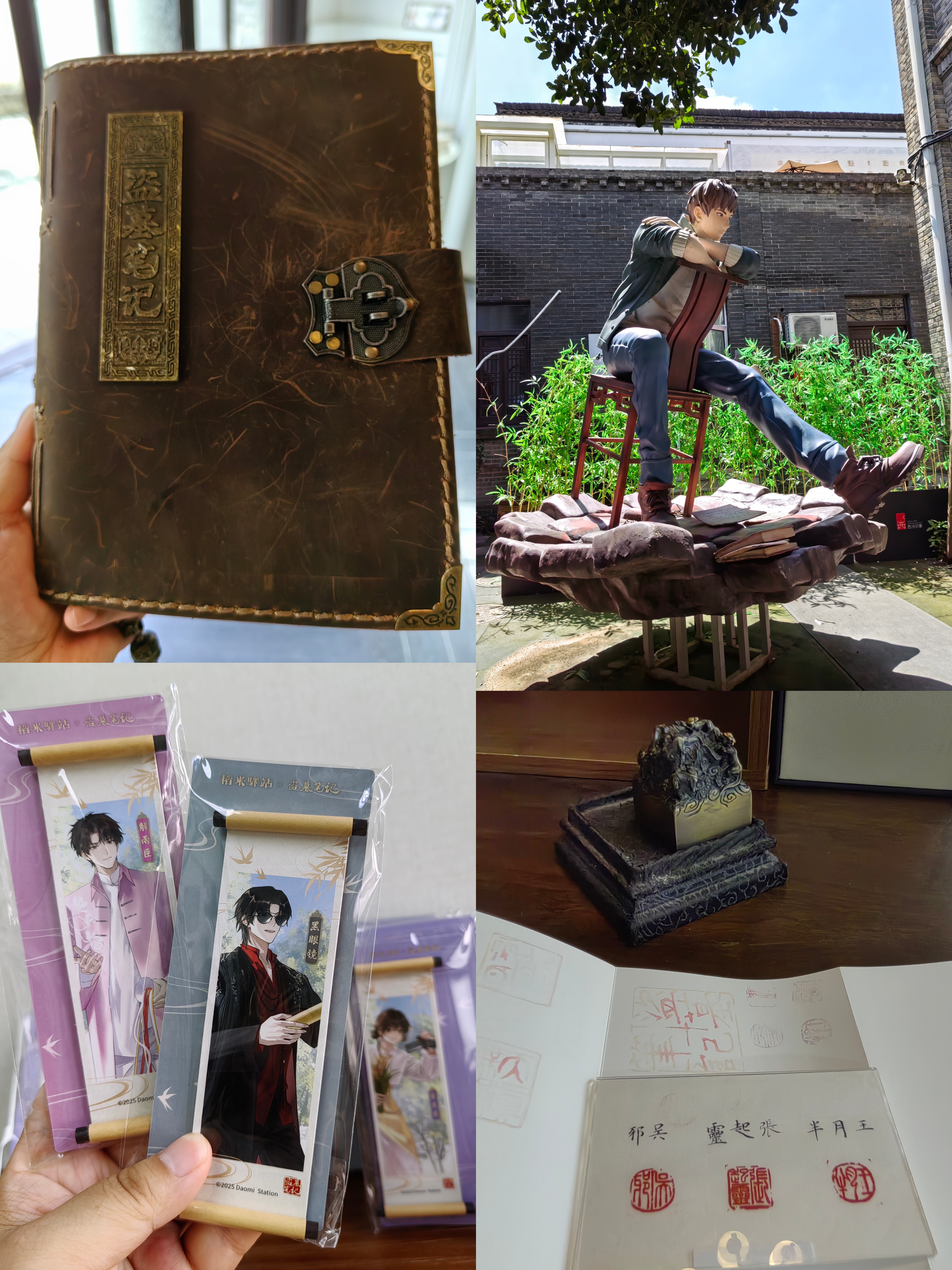 八月的杭州,可谓巨大的《盗墓笔记》痛城,coser浓度严重超标!而稻米心中的“圣地”吴山居,就是梦开始的地方。 吴山居有三家,一家在新天地的武林美术馆,七楼有复刻的云顶天宫,光影效果超震撼!还有西泠印社的节气书签和透扇,超美,支持代领! 一家在孤山的稻米驿站,西泠印社旧址和楼外楼中间,门前有古董店的金杯车,店内有绝美谷子和返场纪念章!时间富余可以去看看摩崖题刻! 一家在河坊街的东太平巷3号,毗邻西泠印社河坊街店和于谦故居,建议和鼓楼、方回春堂宋韵今辉馆和kinbor一起打卡。冲着盖纪念章的话,十五奎巷就不必去了。 院子里有吴邪雕塑和痛报的拍照亭。部分章要么坏掉,要么墨很淡,建议尽早打卡,自带印泥! 今年八一七,集齐三家吴山居,就能领取限定的稻米节光影胶片喔!不必太特种兵,顺路去桥西的南派三书书店荡荡,去三叔曾住过的麒麟街,去浙大云泉校区集邮盖章也很有趣呢!