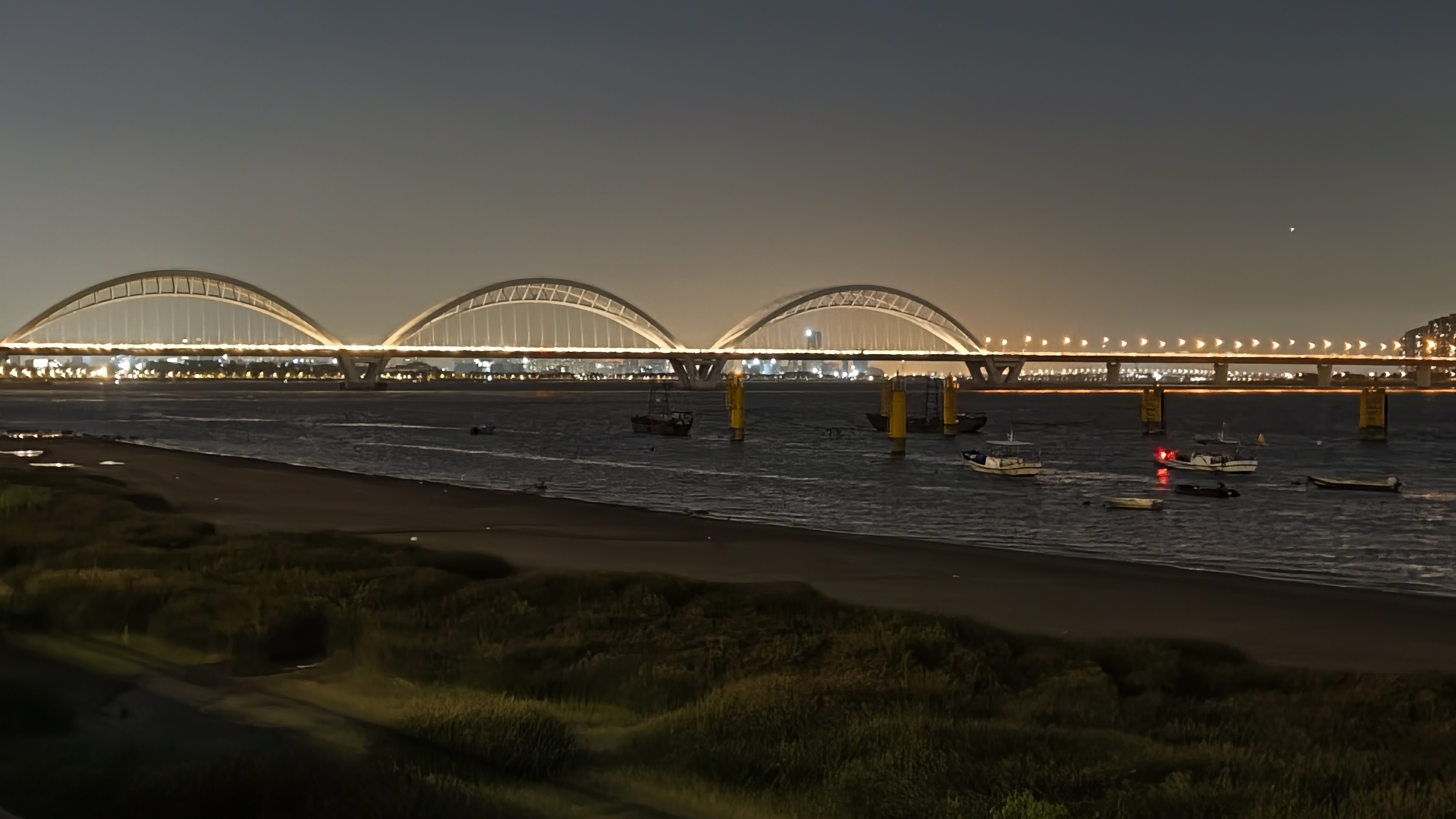在这光影交错的瞬间,我仿佛捕捉到了时间的呢喃。虽无法直接展示那片静谧的风景。 晚风下的九堡大桥,是杭州城的一颗璀璨明星。