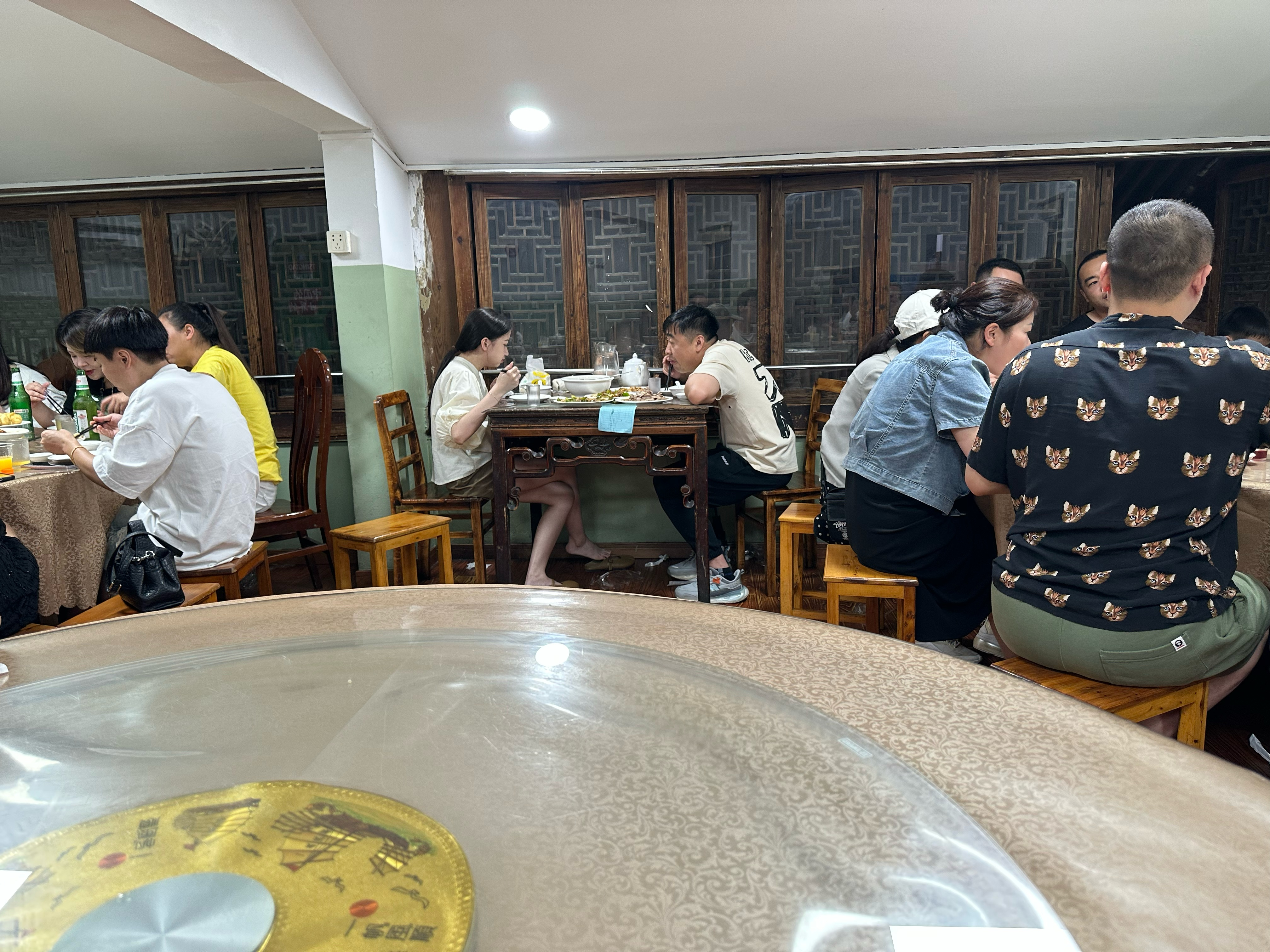 和陌生人拼了碗大米饭 文/蓝色咖喱粉 一个人出差,当地同事推荐我去小城的老街逛逛,七月流火,虽已是傍晚,仍暑热难当。突然起了风,刚想着难得有些许凉意,就见那风卷着黑压压的乌云,迅速朝头顶滚了过来,夏日的暴雨,说下就下,很快,豆大的雨滴就劈头盖脸地砸了下来,原本熙熙攘攘的老街瞬间空了大半。 我站在一家店铺的屋檐下躲雨,抬头一看,对面正好是间饭馆,就冒雨冲了进去。这是间极具年代感的老店,木楼木桌木地板,都能看见时间的包浆。前台大姐自豪地说:“我们店啊,离百年老店只差了31年!”我一听乐了,这大姐不但说话实诚,算术也灵。 这儿没有纸质菜单,更没有如今流行的扫码点单,墙上挂着一块斑驳的小黑板,用白粉笔写着菜名,这就是今日份菜单,哪个菜卖光了,就随手擦掉。在大姐的推荐下,我点了个爆炒猪肝、腐皮青菜、蛋清羊尾三个菜,其实我还想再点个茭白炒肉片,别看这菜名朴实得比家常菜还朴实,却是这间老店的当家菜,据说几乎是每桌必点,但大姐问过后得知我就一个人吃饭,坚决不给点了,说我们店的菜量很大,就这三个菜你已经绝对吃不光了! 点好菜问坐哪儿?前台大姐豪爽地一挥手臂,没有小桌子了,你就一个人,看哪儿空就坐哪儿,不行就跟人家拼个桌吧。 我环视了一圈,看到只有一张十人的大圆桌空着,就坐了下来,没一会儿,来了位年轻的男生,一看就像游客,也是一个人,跟我一样,看了一圈,见没了空桌子,就我一个人孤零零地坐在大圆桌旁,问了一声确定没其他客人,就在另一侧坐了下来。 过了会儿,我的爆炒猪肝先上了,看着这满满一大盘浓油重赤的爆炒猪肝,下饭神菜啊!我犹豫了好一会儿,还是打破了晚上不吃主食的习惯,要了一碗米饭。很快米饭上来了,用得不是普通餐馆常用的小巧饭碗,而是用一个介于碗与盆之间的大碗装得满满登登的,我吓了一跳,还以为上错了,向服务员求证这是我要的小碗米饭吗?服务员点点头,肯定地说这是小碗,如果大碗的话那就是一大盆了! 这时男生那边也开始上菜了,上的刚好是那盘我刚才纠结了很久想点没点上的茭白炒肉片,一看显然也是个下饭菜,男生叫住服务员,说要一碗米饭。我看看自己那一大碗米饭,犹豫了下还是对男生说:“你别点米饭了,我这儿分一些吧,我没想到这儿一碗米饭是这么大一碗,完全吃不完,实在太浪费了,我还没动过,分你一半行吗?……” 说着说着我声音低了下去,自己也觉得有些不好意思起来,越来越没有底气说下去。和陌生人分食一碗米饭,在边界感强烈的现代人中,这做法,实在有些太过唐突甚至冒犯了,我已经做好被拒绝的准备。男生听到我的提议,果然呆了呆,但很快反应过来,大概怕我窘迫,笑着点头说:“好啊!” 我顿时轻松愉快起来,赶紧拿了双没用过的筷子,给他拨了大半碗米饭。分完米饭,两人相视一笑,各自开动。 很快,我点的蛋清羊尾也上了,这是当地的一道有名的特色点心。虽然名称种有“羊尾”两字,其实跟羊尾巴没半毛钱的关系,将打发的蛋清裹上豆沙馅油炸而成,大概是成品蓬松洁白,形似羊尾而得名吧。上来后,我又吓了一跳,这一大盘圆滚滚的蛋清羊尾,颤颤巍巍地堆了个满盘,吃不完啊完全吃不完! 这时男生也好奇地看着这盘蛋清羊尾,显然也没吃过,我赶紧邀请他尝一尝。有了前面分食一碗米饭的饭搭子基础做铺垫,男生没客气,很爽快地夹了个蛋清羊尾,一尝,赞不绝口。我也吃了一个,果然是名不虚传,蛋清柔嫩,入口即化,豆沙里加了猪油和糖桂花,甜而不腻,香而不俗。 作为回报,他请我分享他点的菜,于是,我吃到了刚就想点的那道朴实得不能再朴实的茭白炒肉片。不愧是老店的当家菜,肉片外皮焦香内里鲜嫩,肉汁饱满,茭白清甜脆爽,没想到如此朴素的食材粗犷的做法,竟能带来如此惊艳的口感。 忍不住庆幸,因为那半碗米饭,他没错过那道特色名点——蛋清羊尾;我呢,没错过这道当家菜——茭白炒肉片。