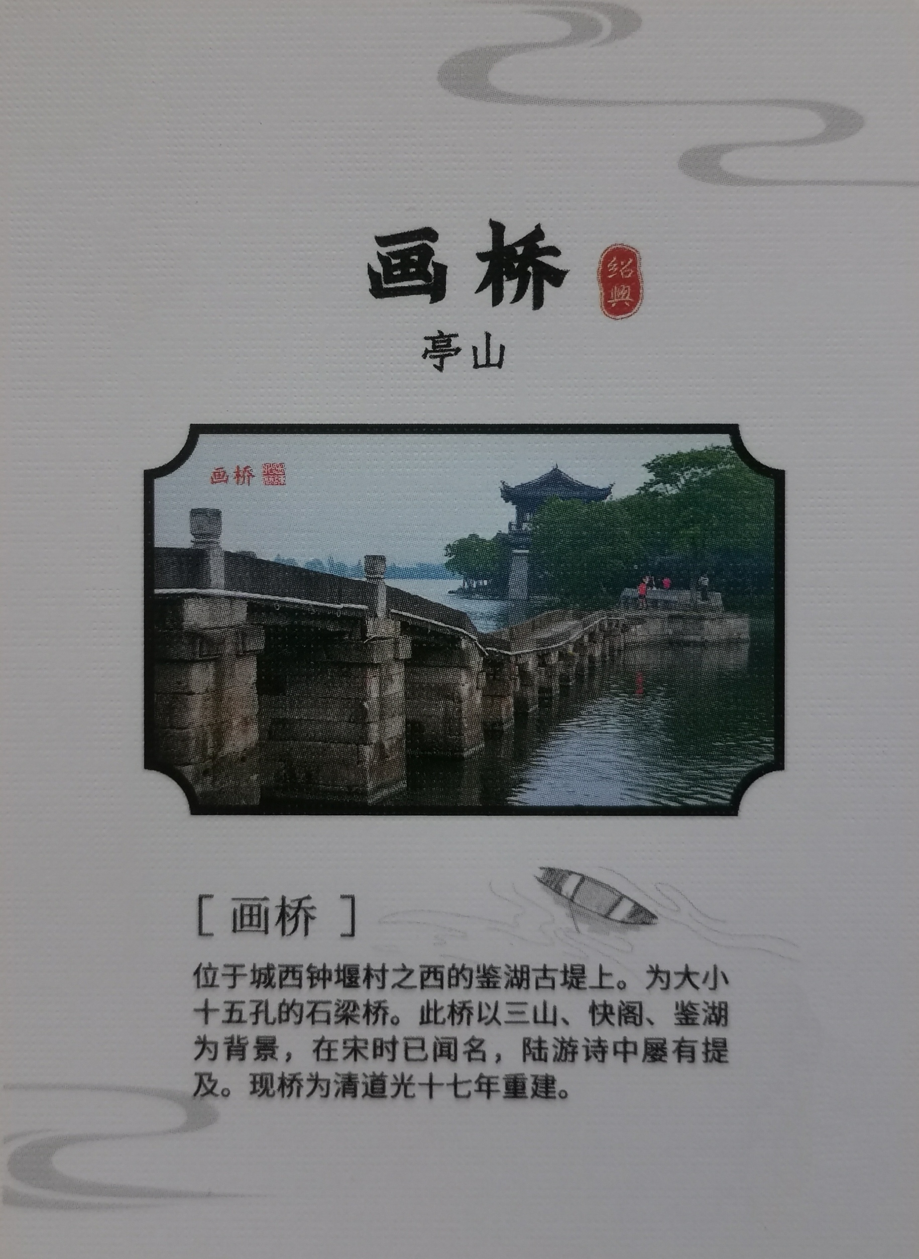 画桥,位于绍兴亭山城西钟堰村之西的鉴湖古堤上!
