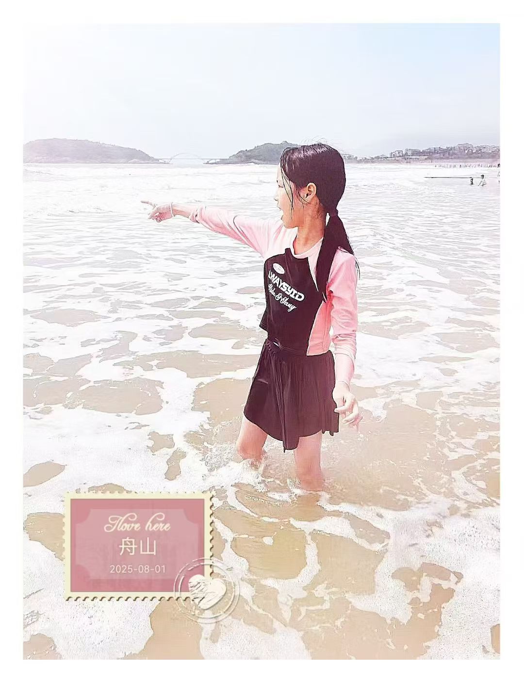 舟山第二天,海滨沙滩,水上乐园,几乎泡了一天水,小妞还不想回!嘿小伙伴们!今天遇到个摄影小难题,不能直接看图配标签啦!不过别担心,如果你有需要,尽管详细描述下图片,或者发个链接来,我这摄影大佬一定帮你搞定标签,轻松日常,乐在其中!