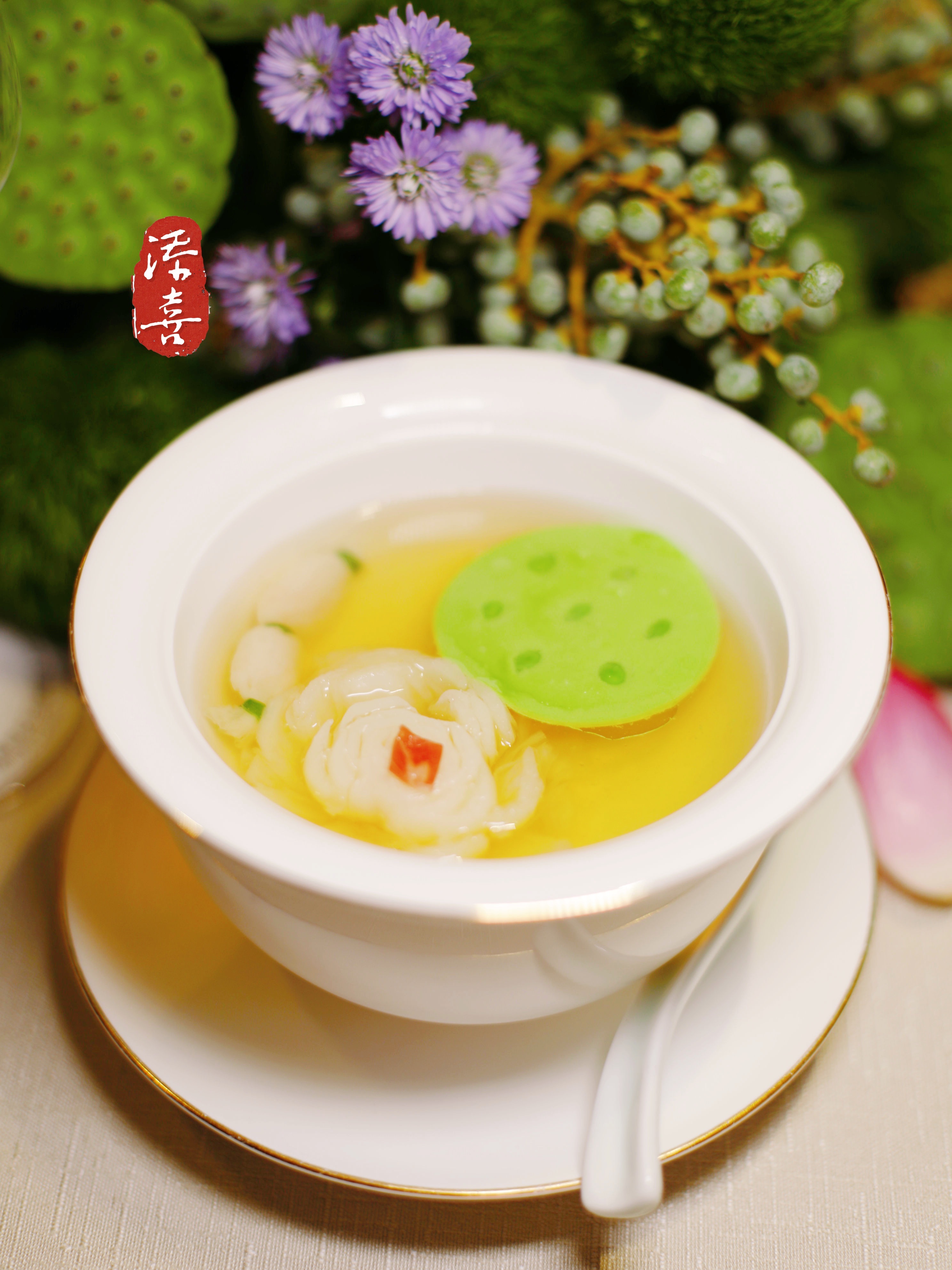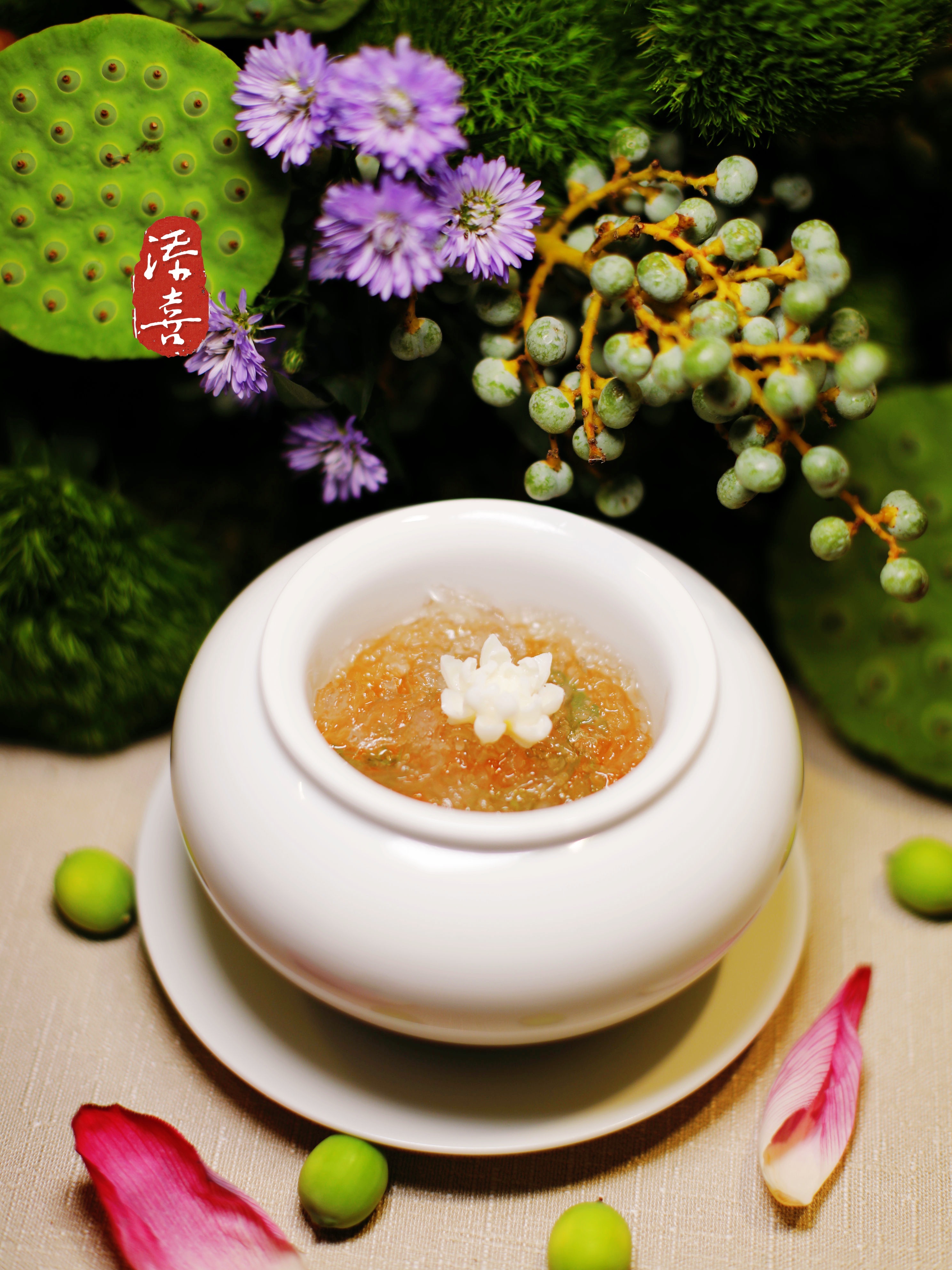 🪷西子荷花宴 | 在杭州曲院风荷里的湛碧楼,赴一场舌尖西湖的醉浪漫 💦暮色四合时,踏入曲院风荷。白日的暑气渐渐消散,湖面浮起一层薄雾,荷风掠过衣角,带着清甜的香气。湛碧楼就隐在这一片碧波莲影间,飞檐翘角,灯火微明,像一幅未干的水墨画。 💫宴起时窗外荷塘已染上墨色。厅内光影流转,大屏上放映着湛碧楼的故事——从1993年的茶楼,到如今的湖上雅宴,岁月在此处打了个旋儿,留下满室荷香。 —— 🐋鱼子酱甜虾藕夹 湘湖的脆藕,薄如蝉翼,夹着甜虾的鲜糯,鱼子酱在舌尖轻爆,咸鲜里漾出一丝清甜。主厨说,这是杭州夏天的另一种写法——藕不再是厚重的裹肉油炸,而是以轻盈之姿,托起海洋的馈赠。 🥪非遗豆腐炸响铃 泗乡腐皮酥脆,内裹的豆腐嫩如凝脂。蘸一点水辣酱,童年的记忆忽然涌上心头——旧时巷口的油香,阿婆的笑脸,还有那些回不去的夏日悠长。 🪷曲院风荷(汤) "毕竟西湖六月中,风光不与四时同。接天莲叶无穷碧,映日荷花别样红"杨万里的诗,终被熬成了一碗汤。慢炖6小时的清汤,搭配九年兰州百合,浮着的一朵“莲蓬”——山药泥捏成蓬房,甜豆作莲子,竹荪裹虾藕为节。舀一勺,鲜得像是喝下了整片西湖的月光。 🦀杭味酒香糟卤汁松叶蟹 松叶蟹肉雪白,浸在酒糟汁里,鲜莲子与菱角肉点缀其间。一筷下去,十足的江南味道。 🐟六月黄油浸钱塘江米鱼 选取了钱塘江七彩黄金鲤鱼的鱼背肉,米鱼的背肉细嫩如绸,蟹粉金黄浓醇,再淋上15年陈的卡萨诺瓦醋——酸香勾出鲜甜,竟吃出了几分南宋古宴的奢靡。 🍶花雕酒蒸千岛湖溪坑鳗 选用千岛湖的溪坑鳗鱼,鳗鱼肥美,花雕酒香渗入每一丝肌理。无需多余调味,鲜与香在唇齿间缠绵,如醉卧江南舟上。 🥣神仙汤·象拔蚌藕带丝 萧山土鸡慢炖的澄澈高汤,冲淋鲜嫩象拔蚌,藕带丝轻舞,鲜甜在舌尖绽放。 🥗鱼米之乡 钱塘江黄金米鱼腩,与鲜莲子、百合共炒,一口尝尽江南水润清甜。 🥩咸件儿·猪油青菜炒饭(主食) 杭州老底子的咸香,遇上猪油炒饭的脂香,36道名菜的厚重,化作舌尖一抹温润的江南烟火。 🍨西湖夏天(甜品) 茉莉花茶与莼菜芽制成的鱼胶冻,上层覆着官燕。一勺清凉滑入喉,仿佛吞下了整座西湖的夏天——荷香、月光、晚风,都成了身体里的一部分。 👫席间,任总夫妇频频举杯致意,恩爱如并蒂莲开。♥️餐毕, 是美到化心的幸福时光!所有的嘉宾都沾了寿星小米的喜气,铺满厚厚一公斤鱼子酱的生日蛋糕🎂作为最后的餐后彩蛋,在烛光中缓缓入场,全场响起热烈的掌声和生日祝福歌……鱼子酱蛋糕的甜与咸在口中化开,像极了这个夜晚:一半风雅,一半人间烟火。 离席时,荷塘已静。回头望,湛碧楼的灯火倒映水中,与星月同辉。忽然懂得那“接天莲叶无穷碧”的诗话,不止是风景,更是舌尖上的一场江南旧梦。 📝添喜的Tips 荷花宴需提前预约,夏季限定。 包厢名皆取自西湖十景,记得提前预定。 午宴可以分别在餐前餐后,晚宴可以在餐前提前到达景区,户外近距离赏荷。 📍杨公堤38号 这一夜,荷是看饱了,人也吃醉了。