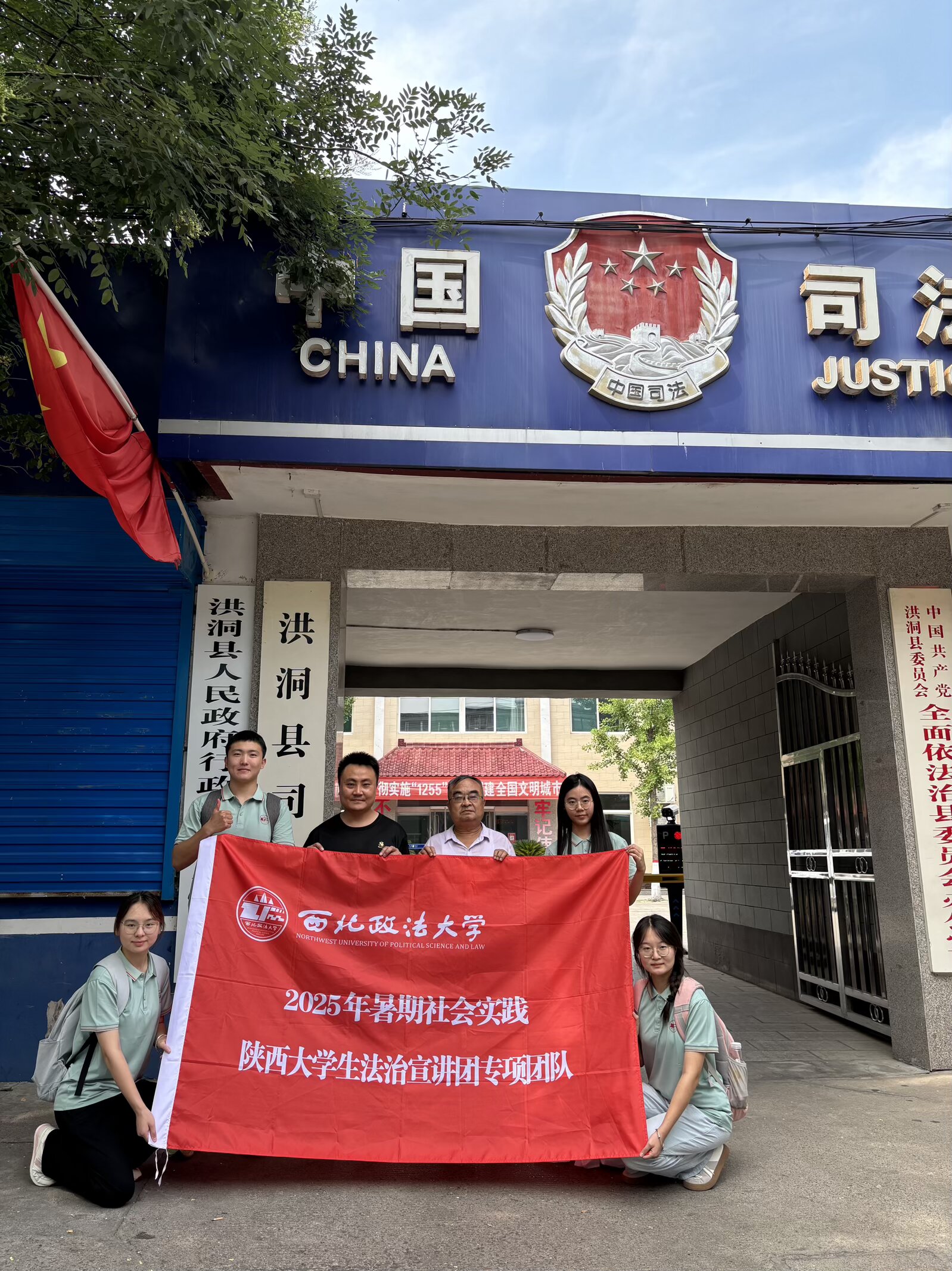 七月的风,裹挟着热忱与使命;鲜红的队旗,映照着年轻的担当。2025年7月9日,西北政法大学法律服务中心赴山西省临汾市洪洞县暑期社会实践团队参加了西北政法大学2025年暑期“三下乡”社会实践活动出征仪式。仪式上,团队成员认真聆听了校领导及指导老师的殷切嘱托。授旗仪式环节,团队代表郑重接过沉甸甸的旗帜,高高举起。这面旗上,印着“陕西大学生法治宣讲团专项团队”的字样,更承载着法服“以我所学,服务社会”的使命。 2025年7月11日,西北政法大学暑期社会实践团队自西安启程。团队成员分批搭乘高铁,历经2个多小时的行程,顺利抵达山西省临汾市洪洞县,正式开启为期十天的"三下乡"社会实践活动。 下午两点半,团队成员前往洪洞县司法局,同司法局相关人员了解洪洞县具体情况,进行了活动流程的对接,洪洞县司法局对团队活动开展提供了支持,以便我们的活动顺利开展。红旗猎猎,征途已启。接过承载着殷切期待的队旗,我们深知:反诈宣讲绝非空洞的口号,而是要让"防骗弦"时刻紧绷在每位乡亲心头。这个夏天,我们将带着精心准备的反诈情景剧与趣味反诈普法小游戏,走进洪洞的街巷阡陌,用生动的演绎拆解诈骗路,以鲜活的案例筑牢防骗堤坝。以法为灯,照亮防骗之路;以行践责,守护百姓平安。法治宣讲的脚步永不停歇,我们定不负重托——这个盛夏,以法为盾护民安,用脚步丈量责任与担当。法治宣讲,我们始终在路上!