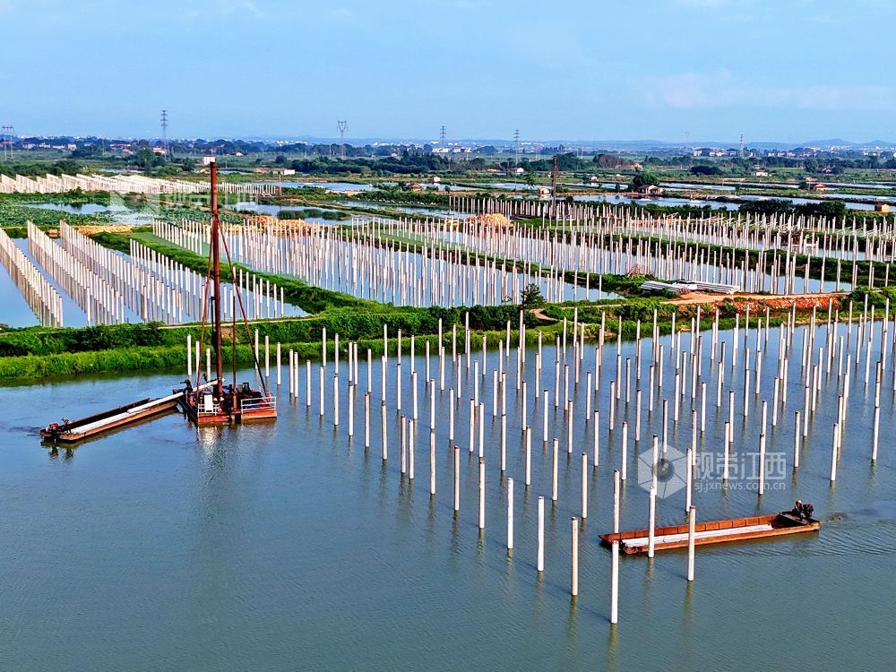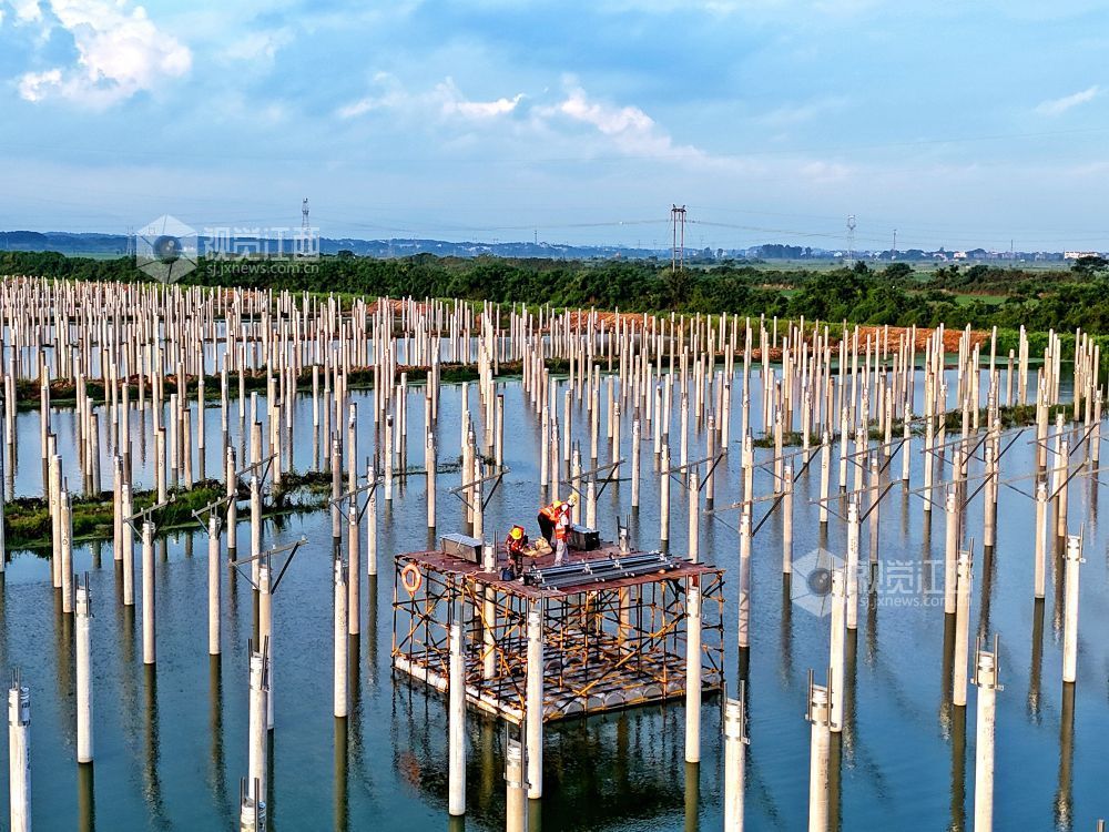 近日清晨,江西省赣江新区新祺周管理处江夏分场60MW渔光互补光伏发电项目施工现场机器轰鸣。为避开高温时段,工人们正错峰开展打桩作业,整个施工过程紧张有序,工程进度稳步推进。